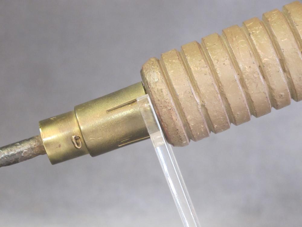 Both originally fitted with small brass screw plug to top of grenade head for loading the explosive, the No.24 Mk1 Screw plug is present, the No.24 Mk1 Screw Plug, although identical, is missing. Easily replicated.