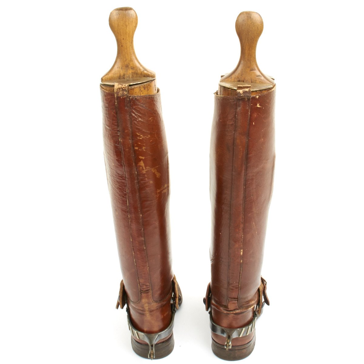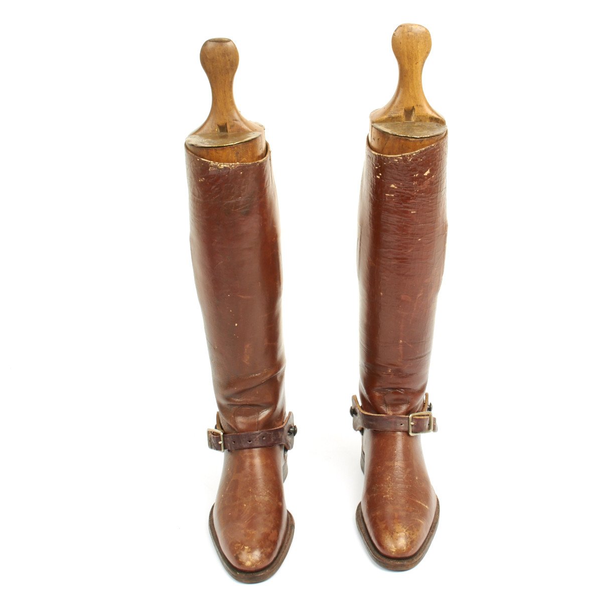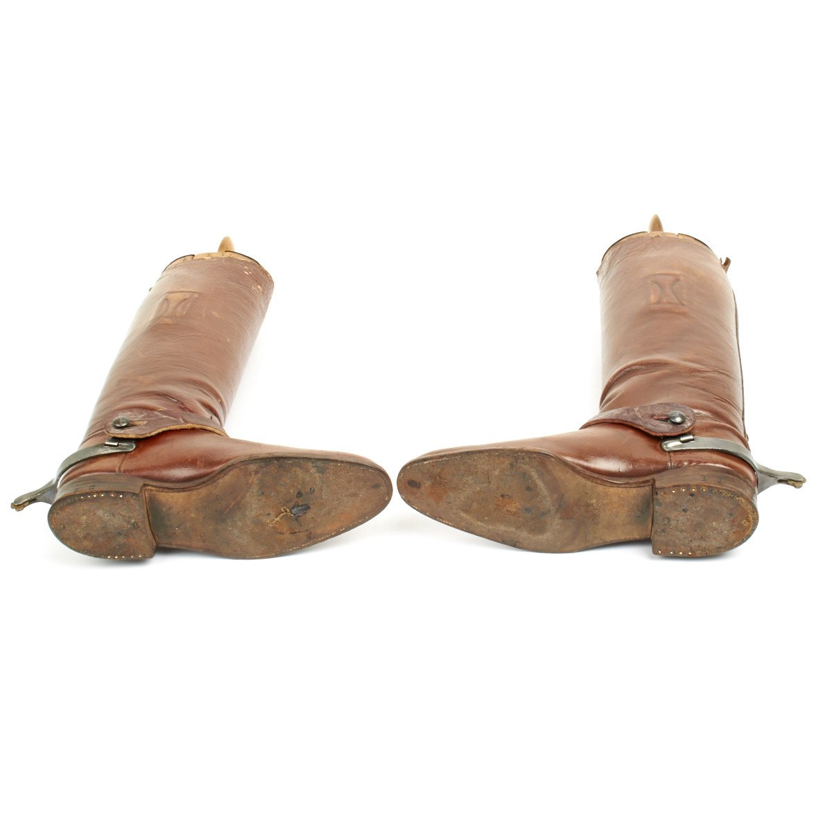 Exceptional WWI leather officer tall riding boots complete with small stirrups.