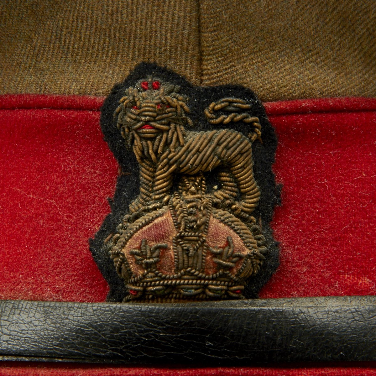 Original Item: One Only. This is a lovely example of the British "STAFF OFFICER'S HAT", intended for the upper ranks, with a full red band around the head and a Lion over Crown Cap Badge.