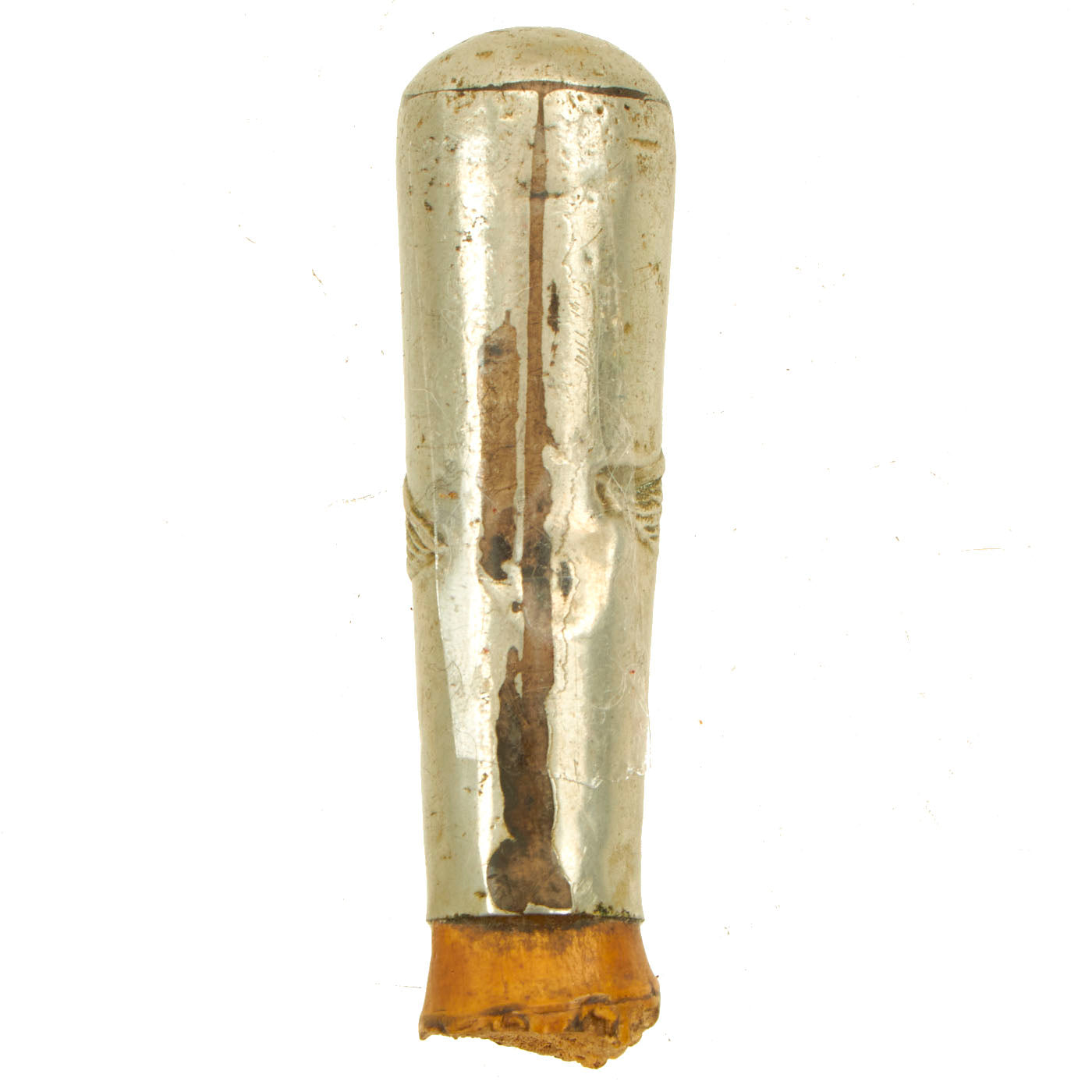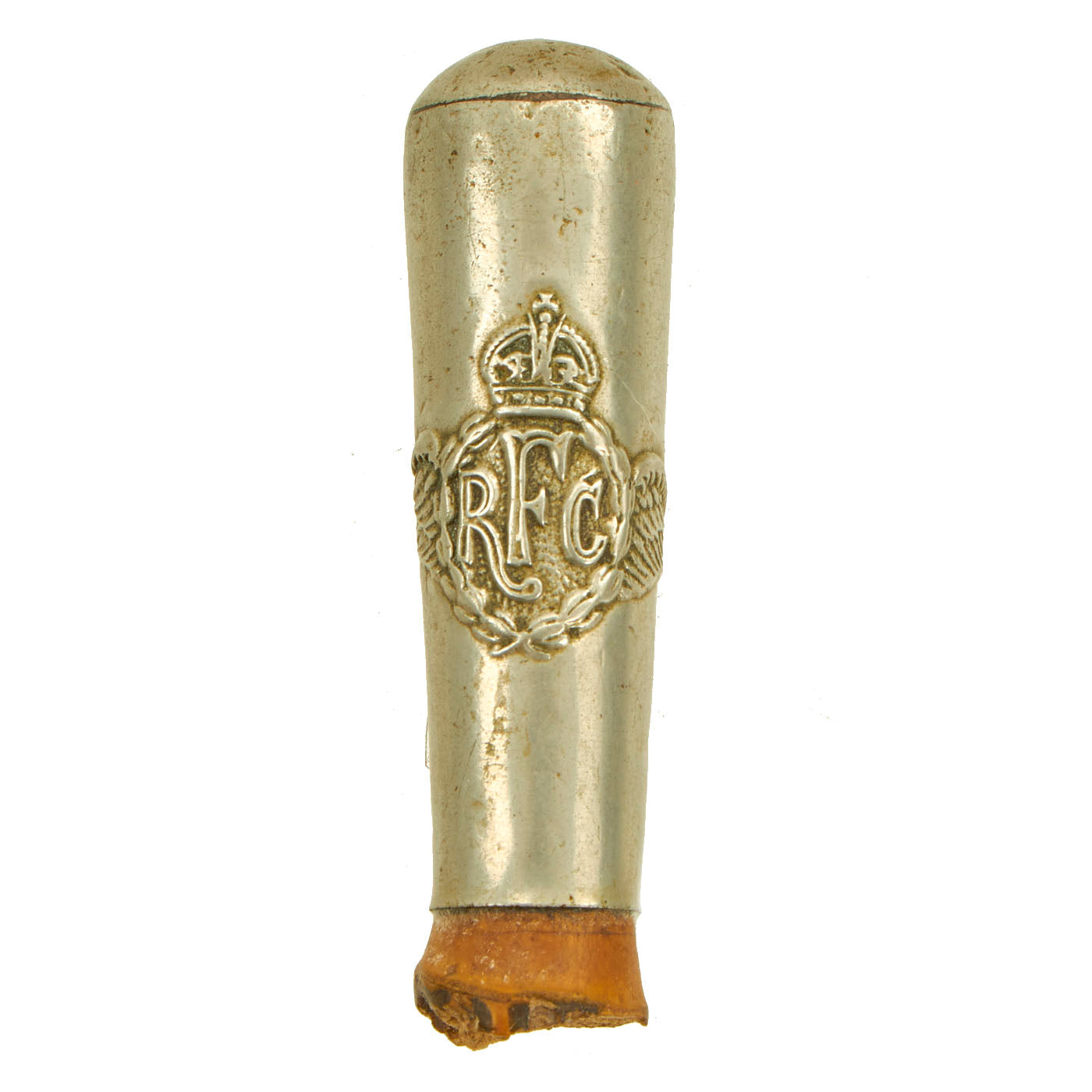 - Swagger Stick Top: This is the top of a bamboo swagger stick that was cut off. The silver tubular top bears the RFC crest.