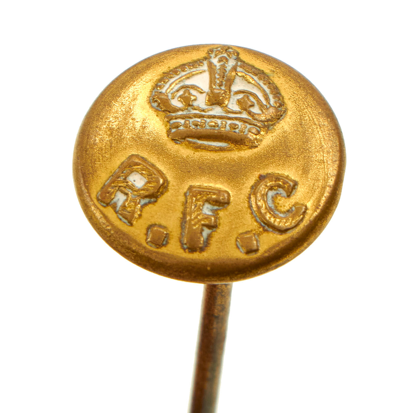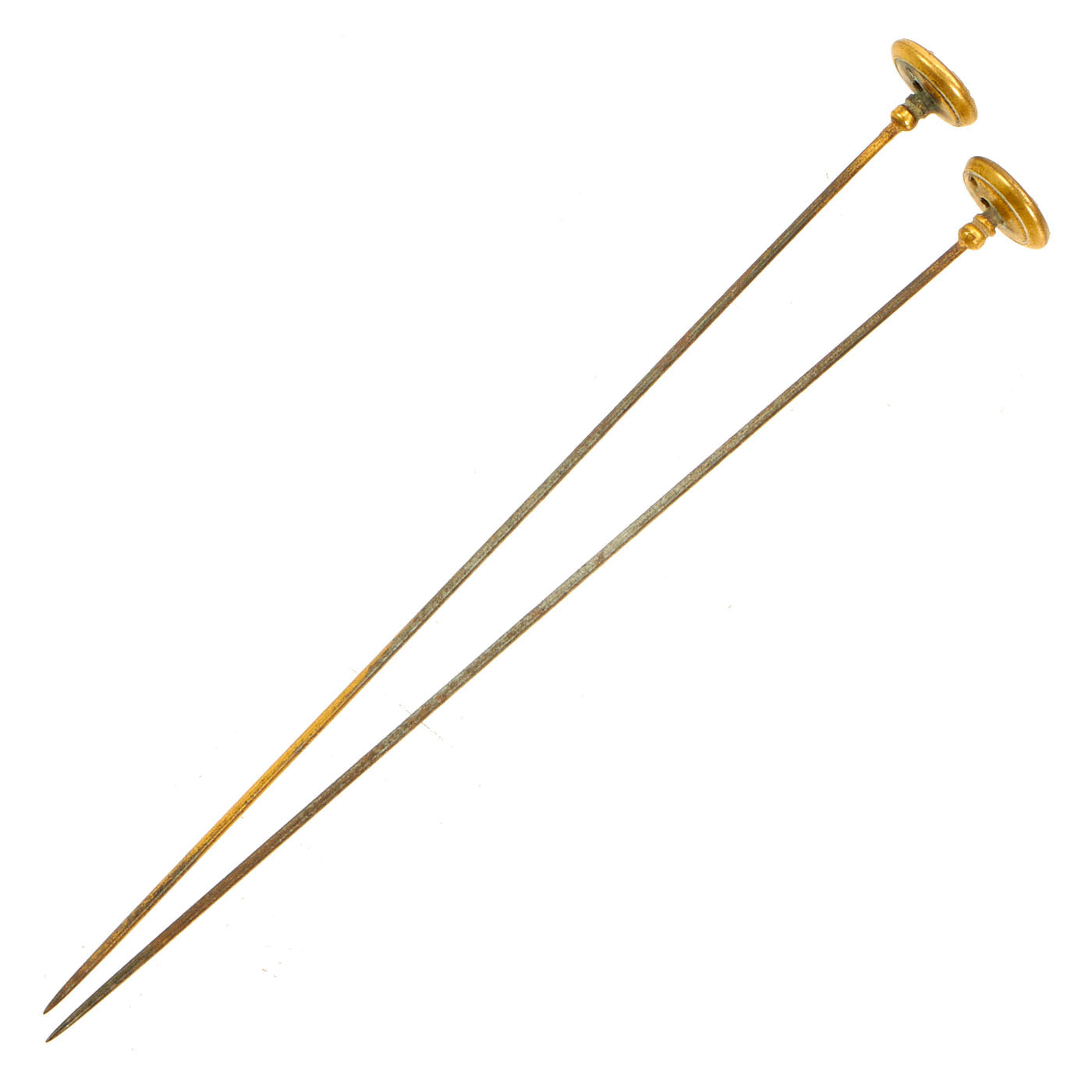 - (2) RFC Button Stick Pins: These appear to be “homemade” as we have not been able to find information on them. They are 6 ⅜” in length and have an RFC cuff/cap button soldered on the top.