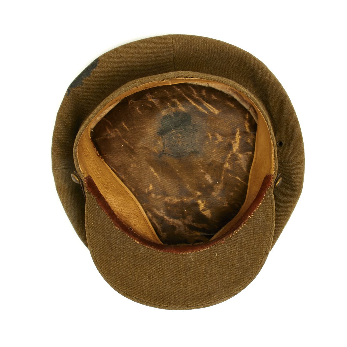 Lincoln Bennett was a premier make of fine hats that specialized in formal wear such as silk top hats from the Victorian era to the Great War. However, they were not prolific in the production of officer headwear meaning this is a very rare and high quality produced cap in the early style of the war. Under the sweatband written on the lignin are what appear to be the initials EE.
