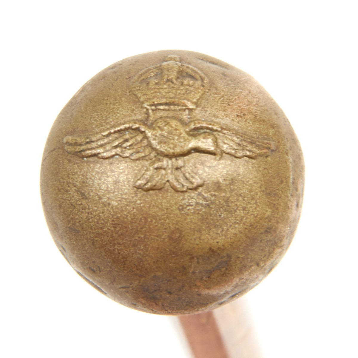 Original Item: Only One Available. Dating from the earliest days of Aviation warfare this is a short officer's swagger stick in the form of a riding crop with silvered ball to top, tarnished, displaying the RFC eagle under a King's Crown of the Royal Flying Corp and later the Royal Air Force (RAF).