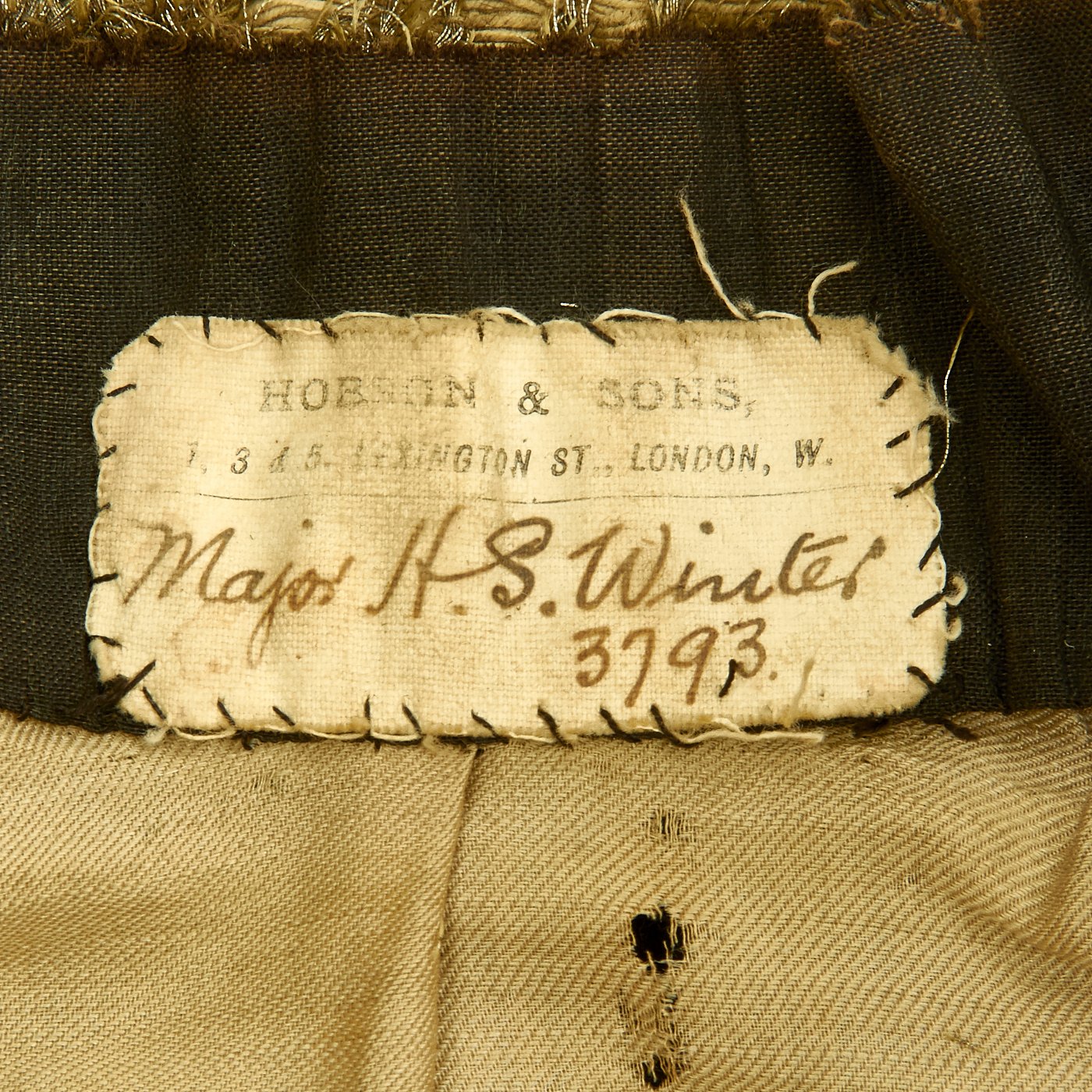 Original Item: One-of-a-kind. This is a very nice British World War One Artillery Major uress uniform jacket named to Major Harrie Sewallis Winter. The jacket features major's rank insignia on the epaulets, Artillery buttons, bullion embroidered flaming bomb collar insignia, and a tailor's label from Hobson & Sons of London. The label is named in hand written ink Major H.S. Winter 3793.