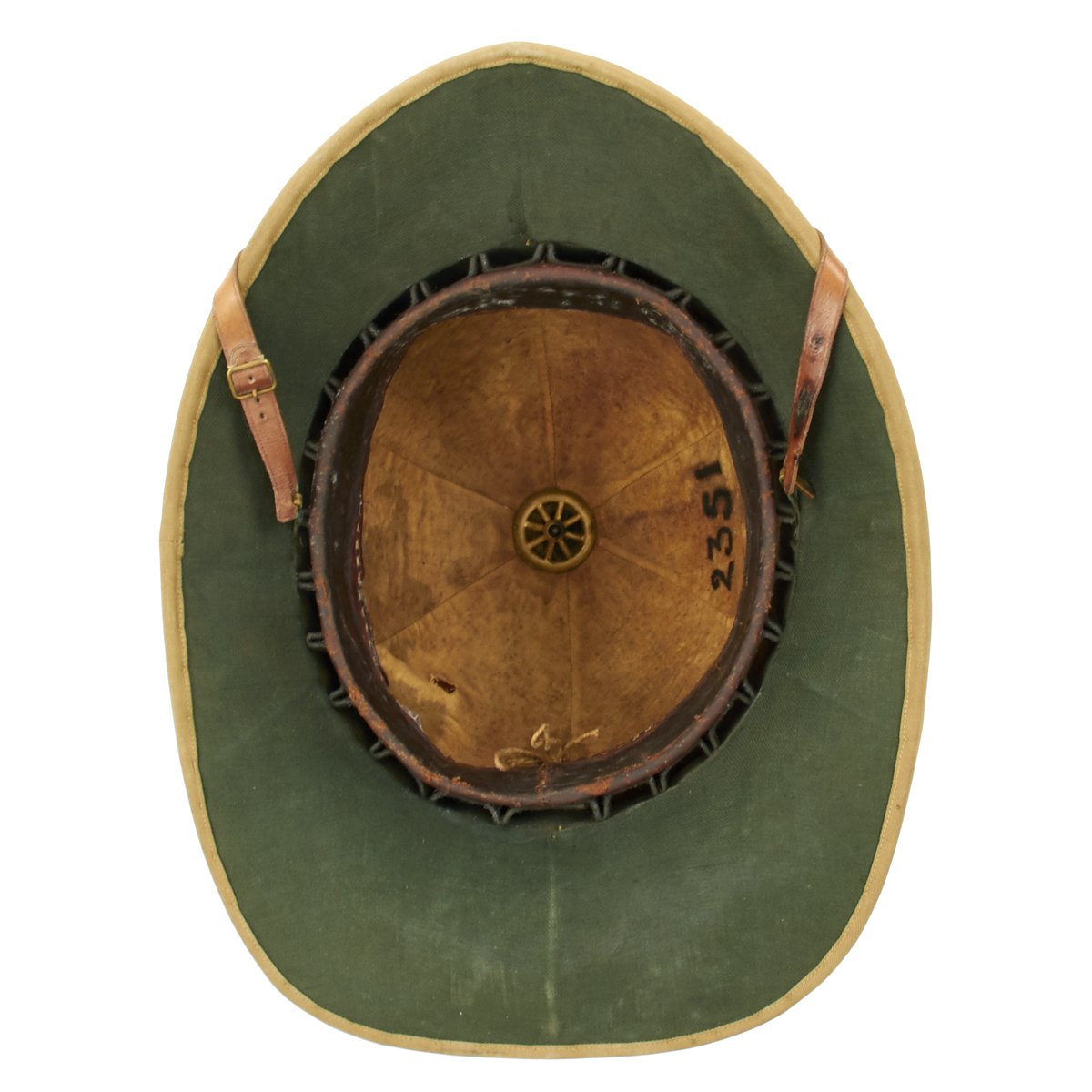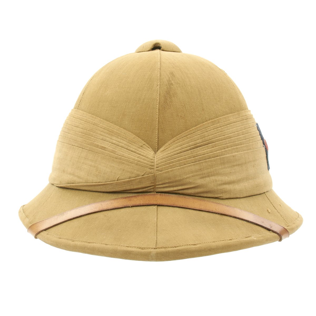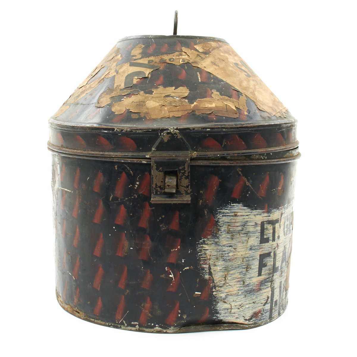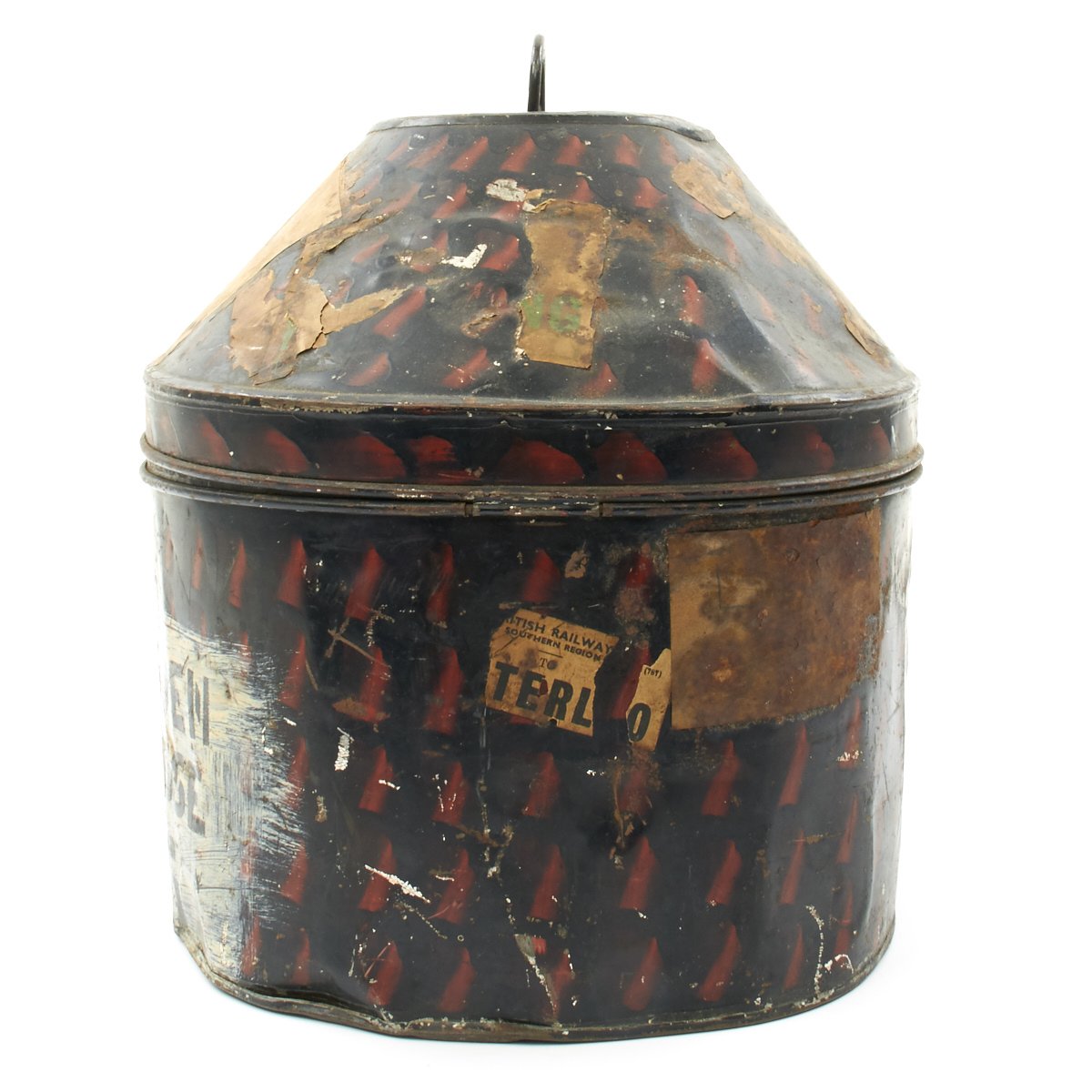 Included in the set are a fantastic high quality Sun Pith helmet. The helmet features and embroidered patch to the left side that reads 6. E. SURREY in red thread mounted on a dark blue wool background. The helmet is offered in excellent condition. The tin transit chest which is named SUGDEN with long address on the top, along with an Orient Express label. The side is named to Lt. General Sugden with an address in Hong Kong. Also included is an Operation Orders Book detailing troop movements and orders of the 14th K.G.O Sikhs.