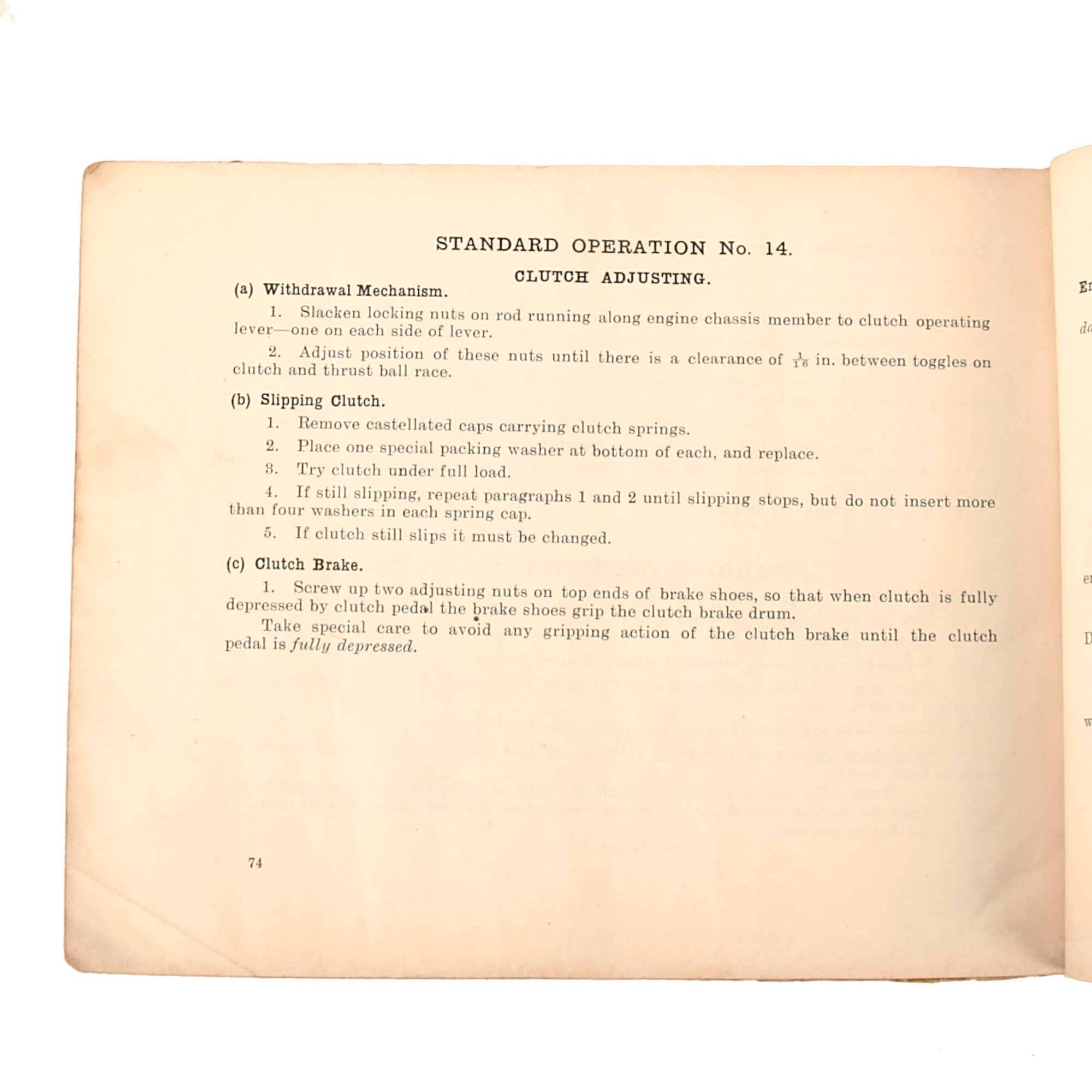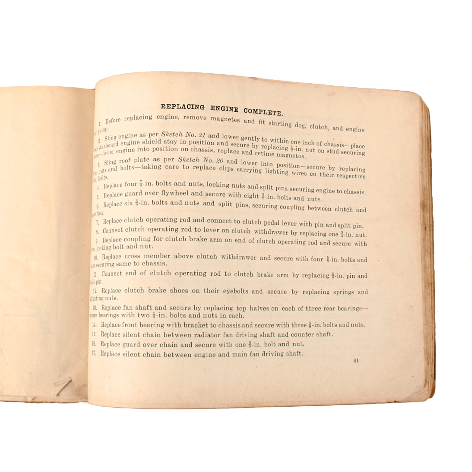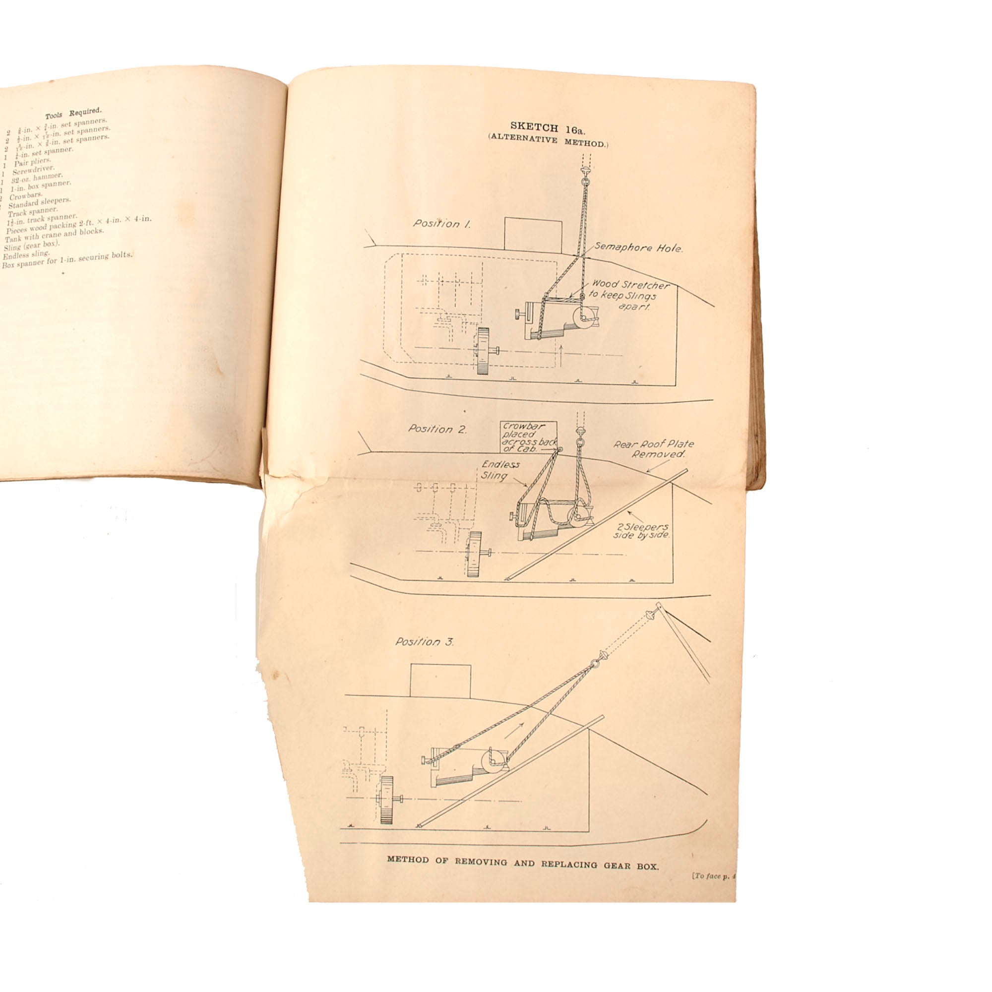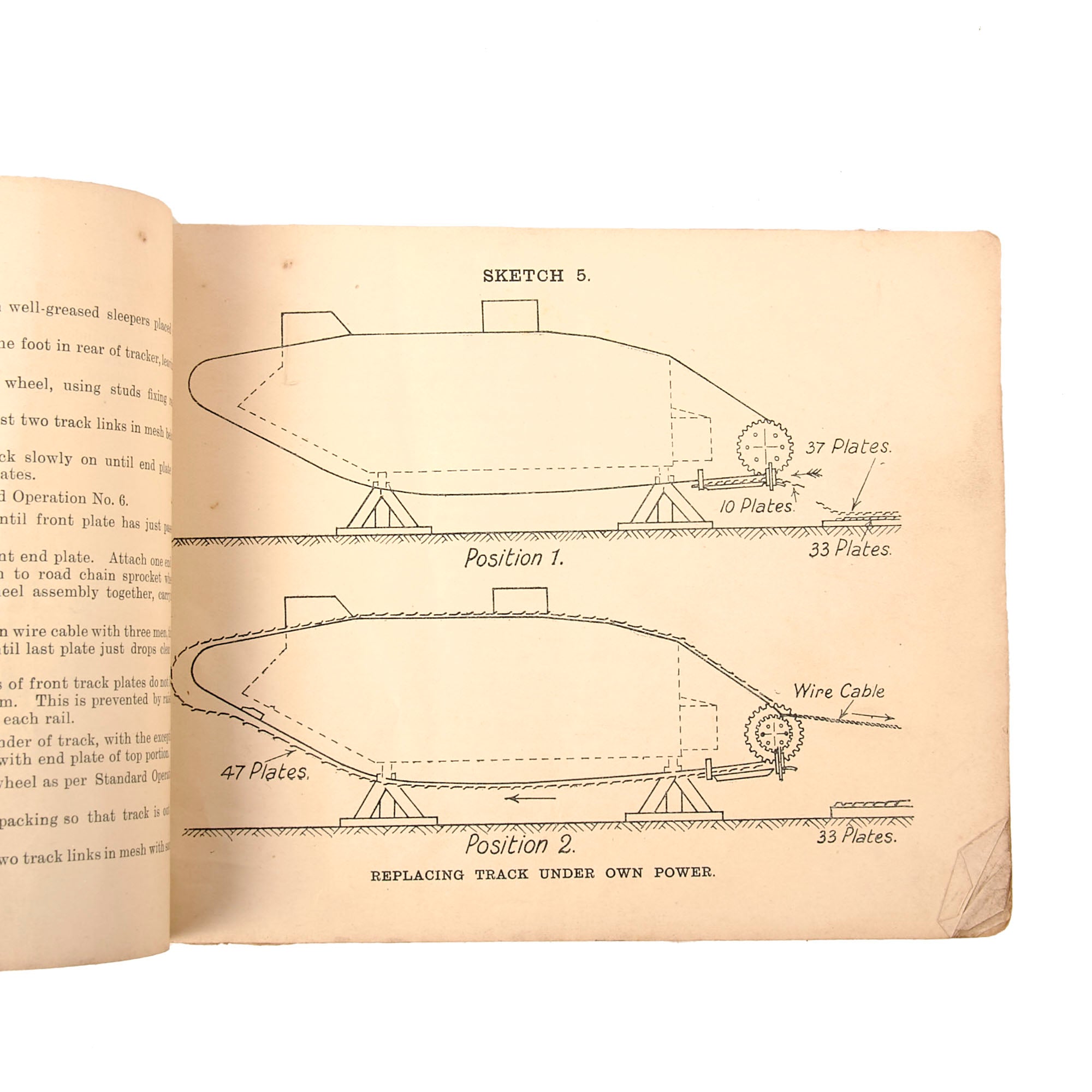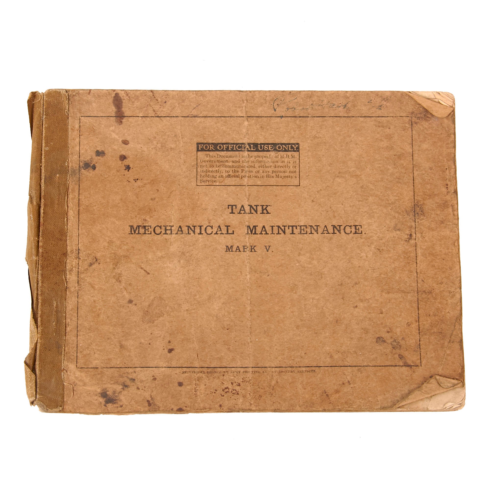 Original Item. One-of-a-Kind. This is one of the scarcest manuals we have ever offered, with some amazing content and diagrams. This is the Mechanical Maintenance manual for the British Mark V Tank, which was first deployed in July 1918 on the Western Front at the Battle of Hamel; then at the Battle of Amiens, and on the Hindenburg Line during the closing months of World War I. The Mark V is notable as the tank the majority of American Tankers drove in the final months of the war, and this example is actually named to Robert Hart of the 301st Tank Center, which managed much of the repair and deployment of these tanks.