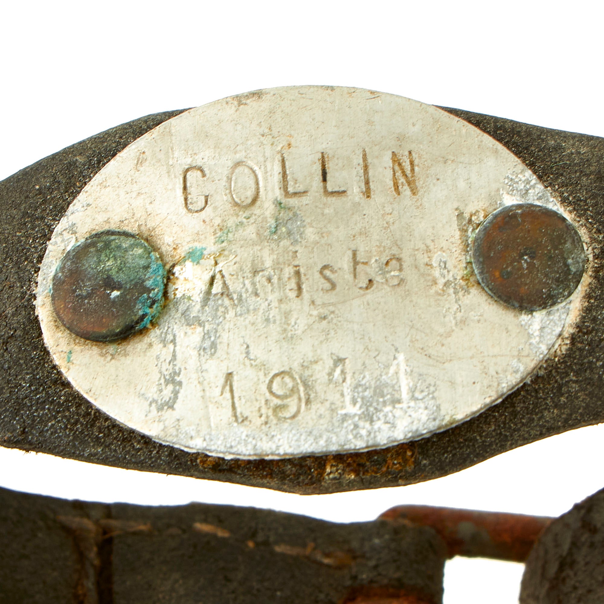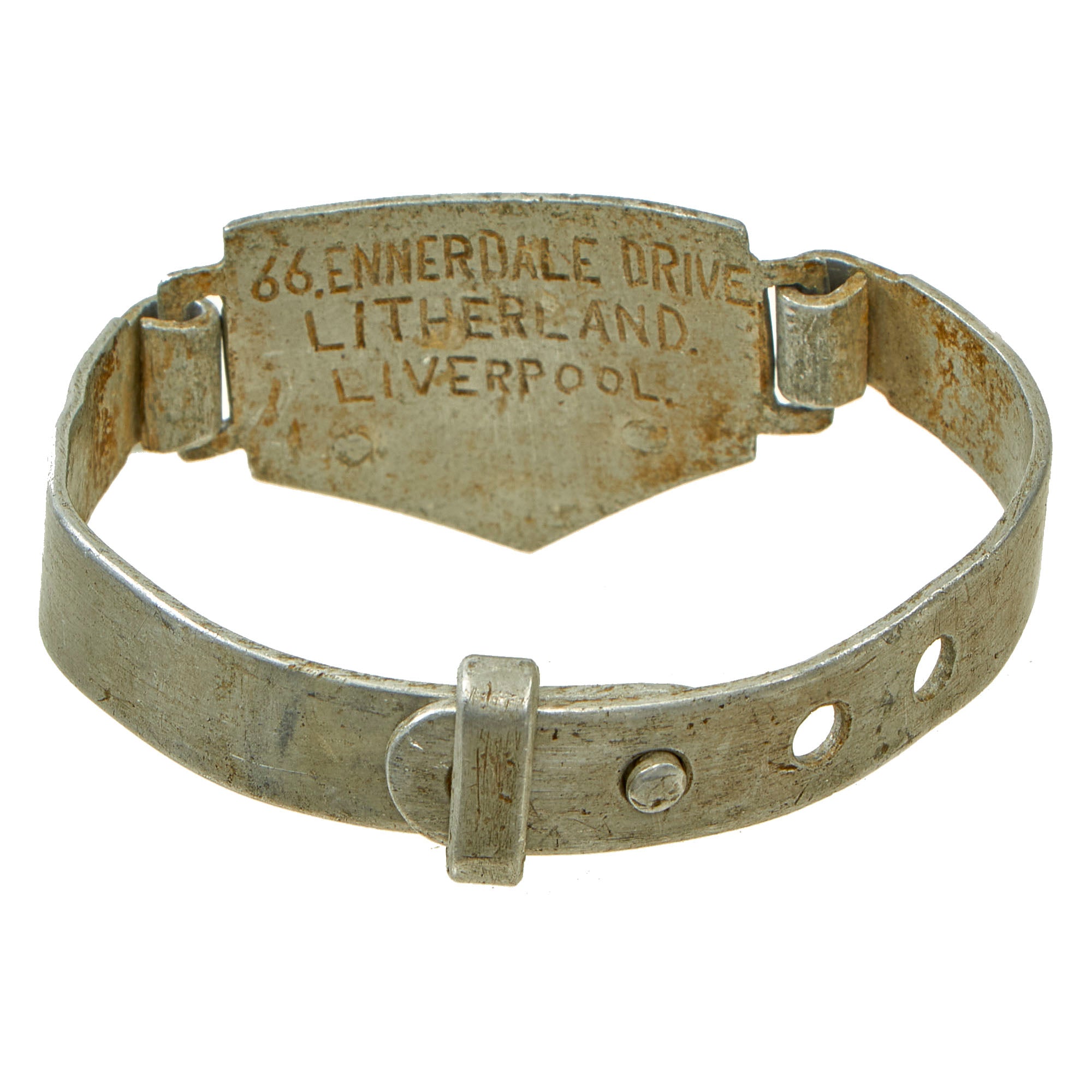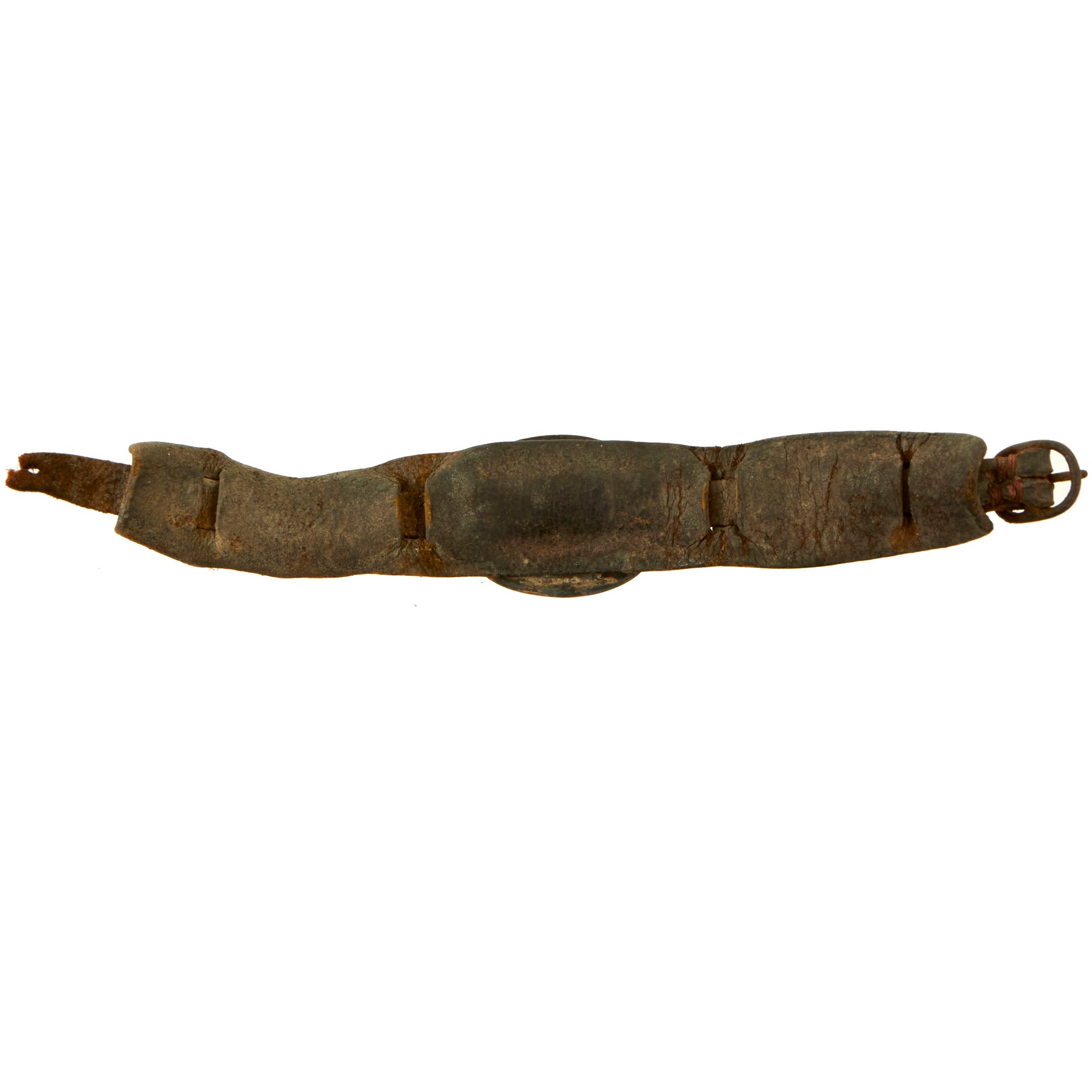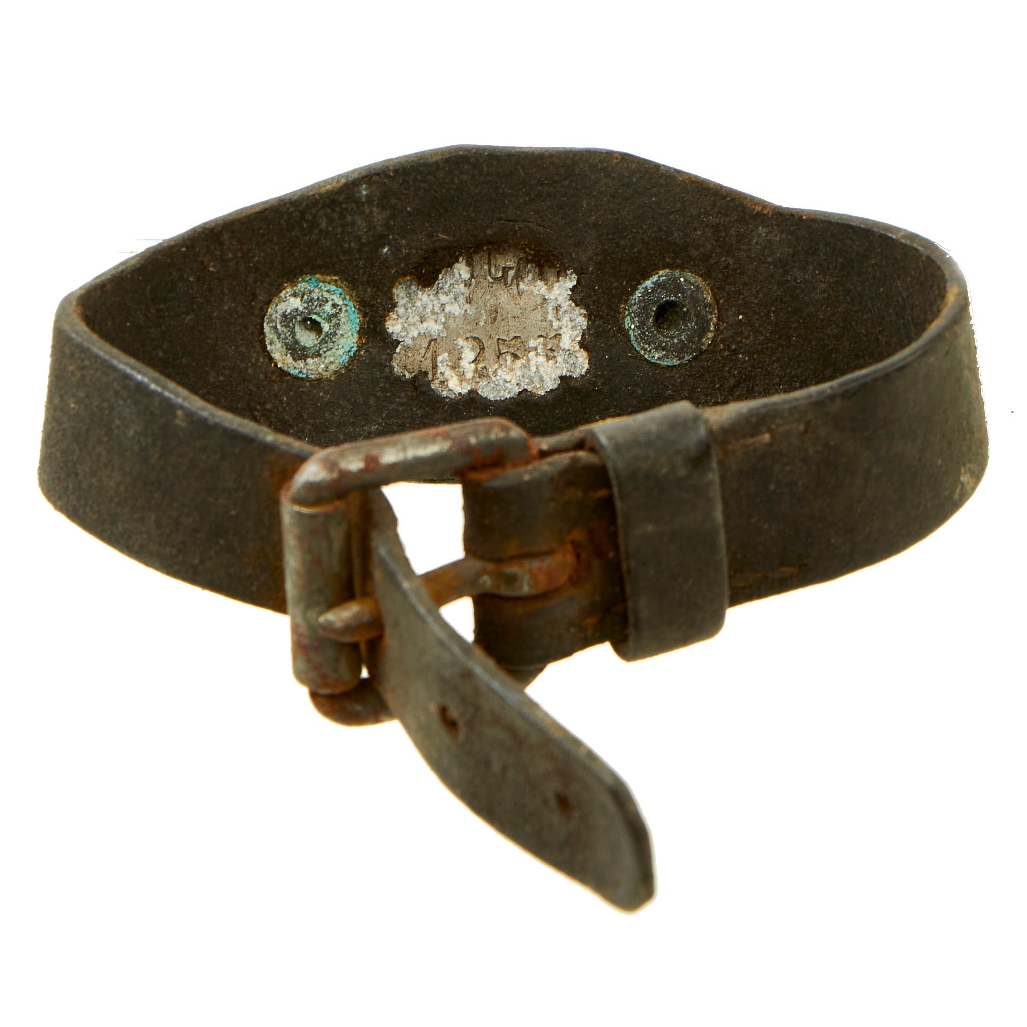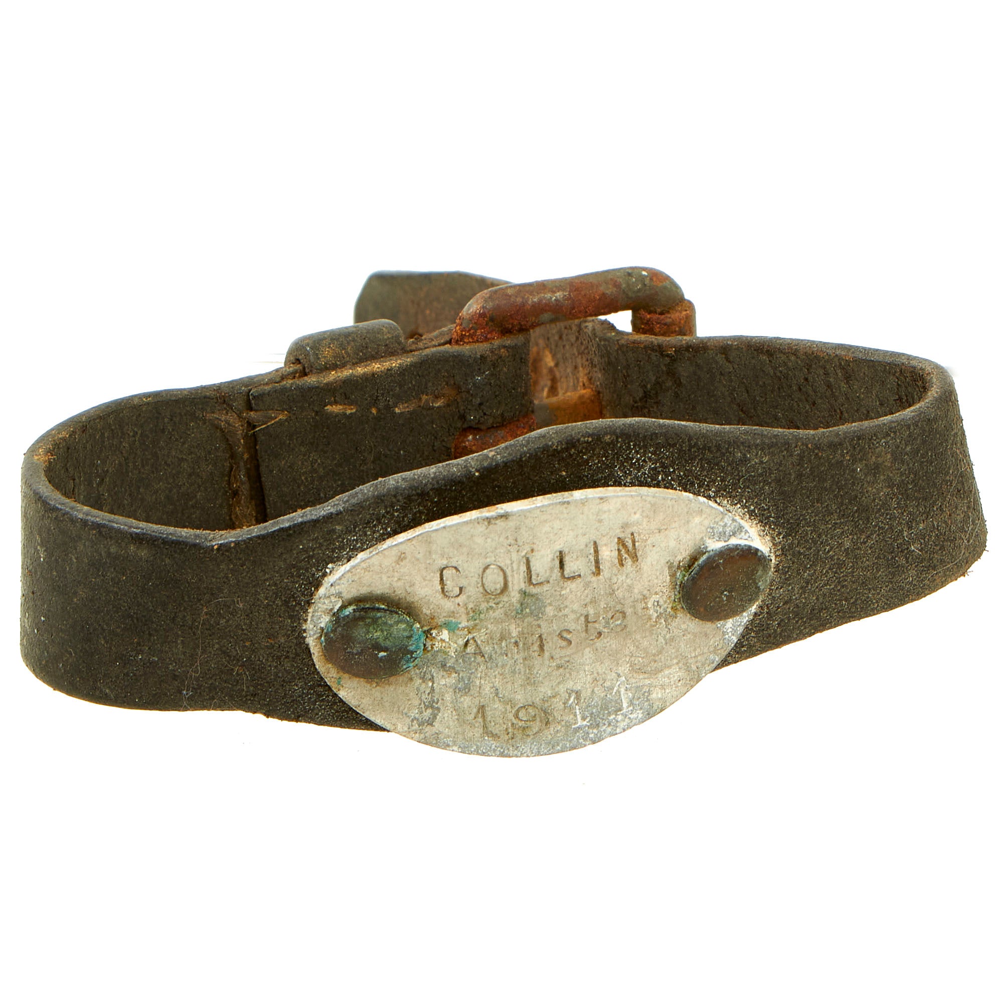 The overall condition is quite nice but the leather however is dried out and near fragile to the touch. The other two bracelets are in similar condition and both also serve as a wrist worn identification disc.