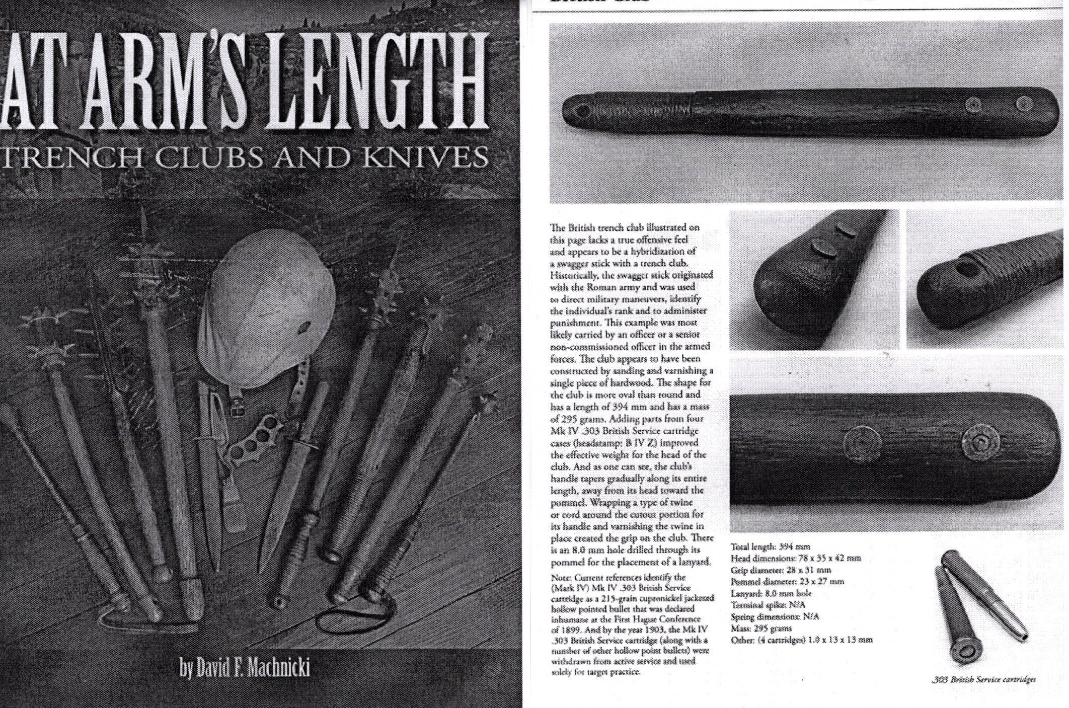 Original Item: Only One Available. Just purchased from a private collector, this is a trench club that was used as an example in At Arm's Length: Trench Clubs and Knives by David F. Machnicki. This very club was photographed and described, and is featured on page 29! Please note that the attached page image and copy from the book is copyrighted material and the use of the page is done solely by permission of the author.
