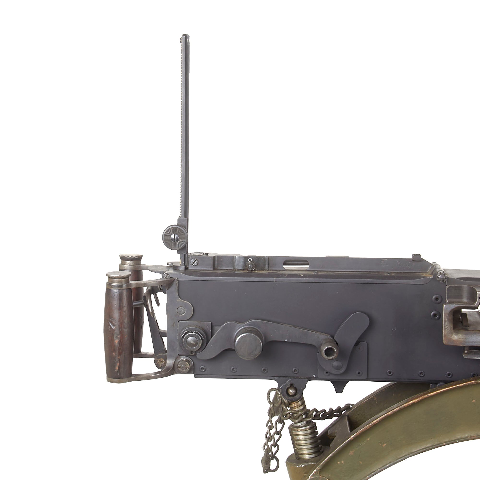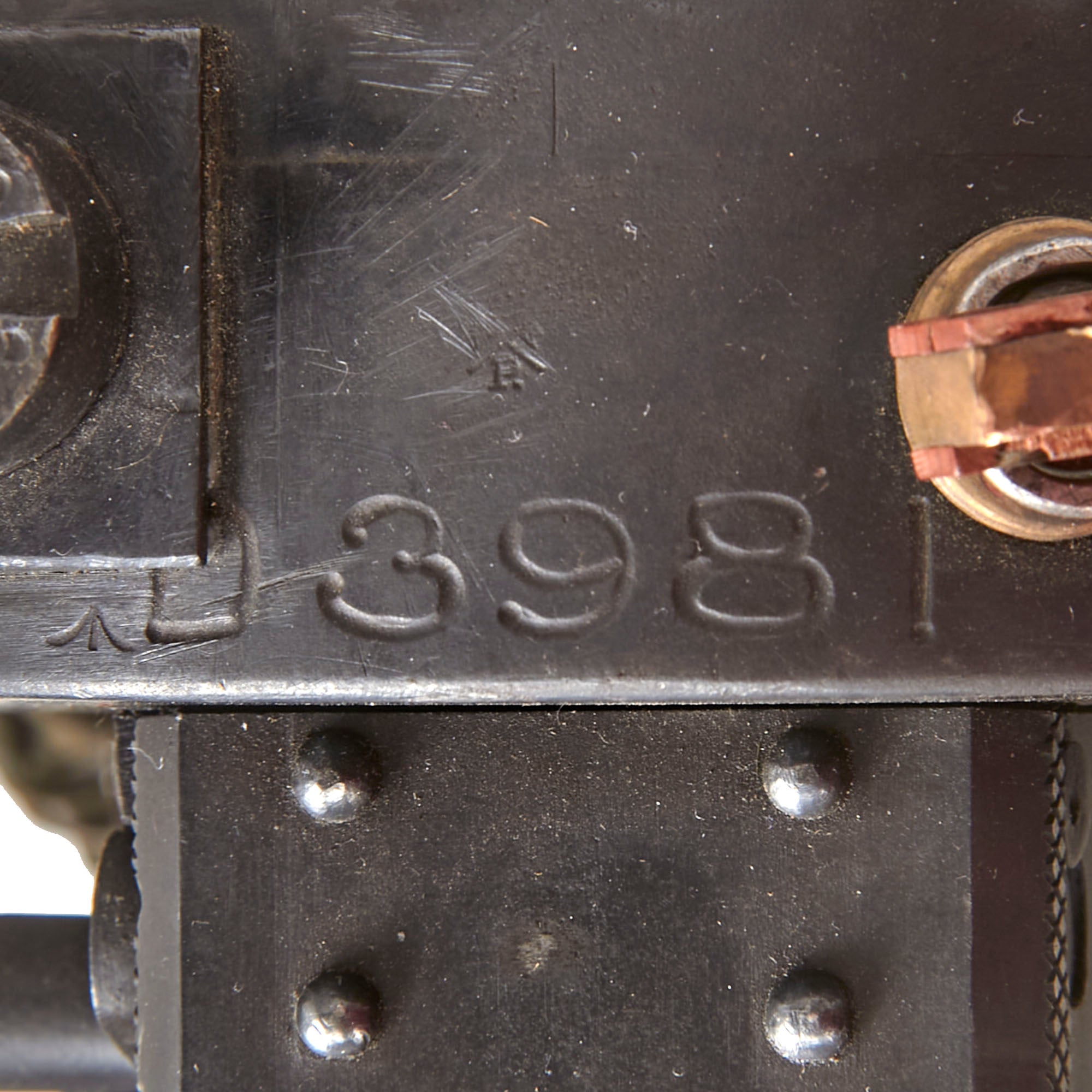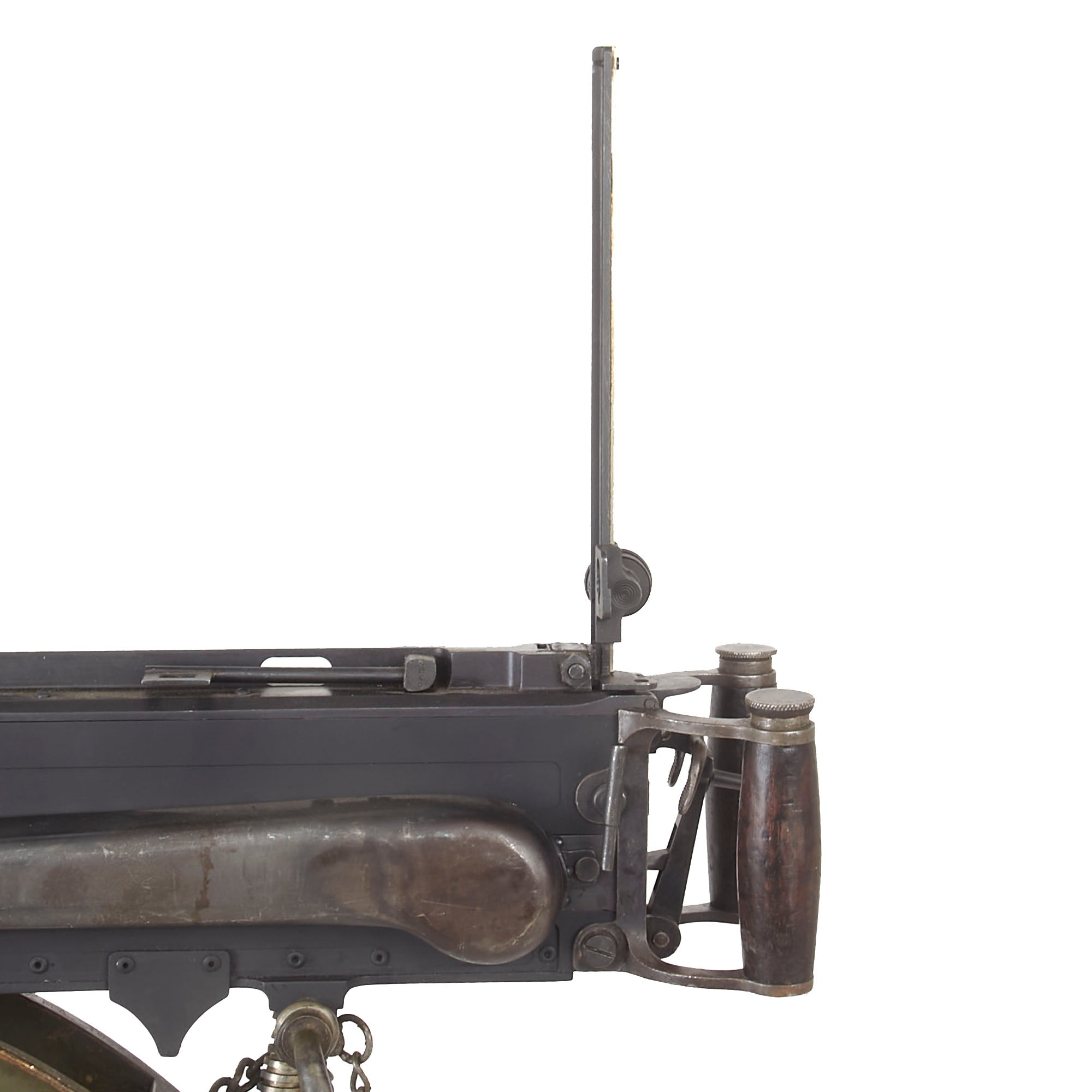The water jacket on this example bears serial number D-3981, which indicates manufacture by Vickers, Sons & Maxim Ltd., the name the company went by during the WWI Era. The company had several factories making Vickers guns, with "D" indicating manufacture at their Crayford Plant in Kent during 1918, so it was most likely completed during WWI.