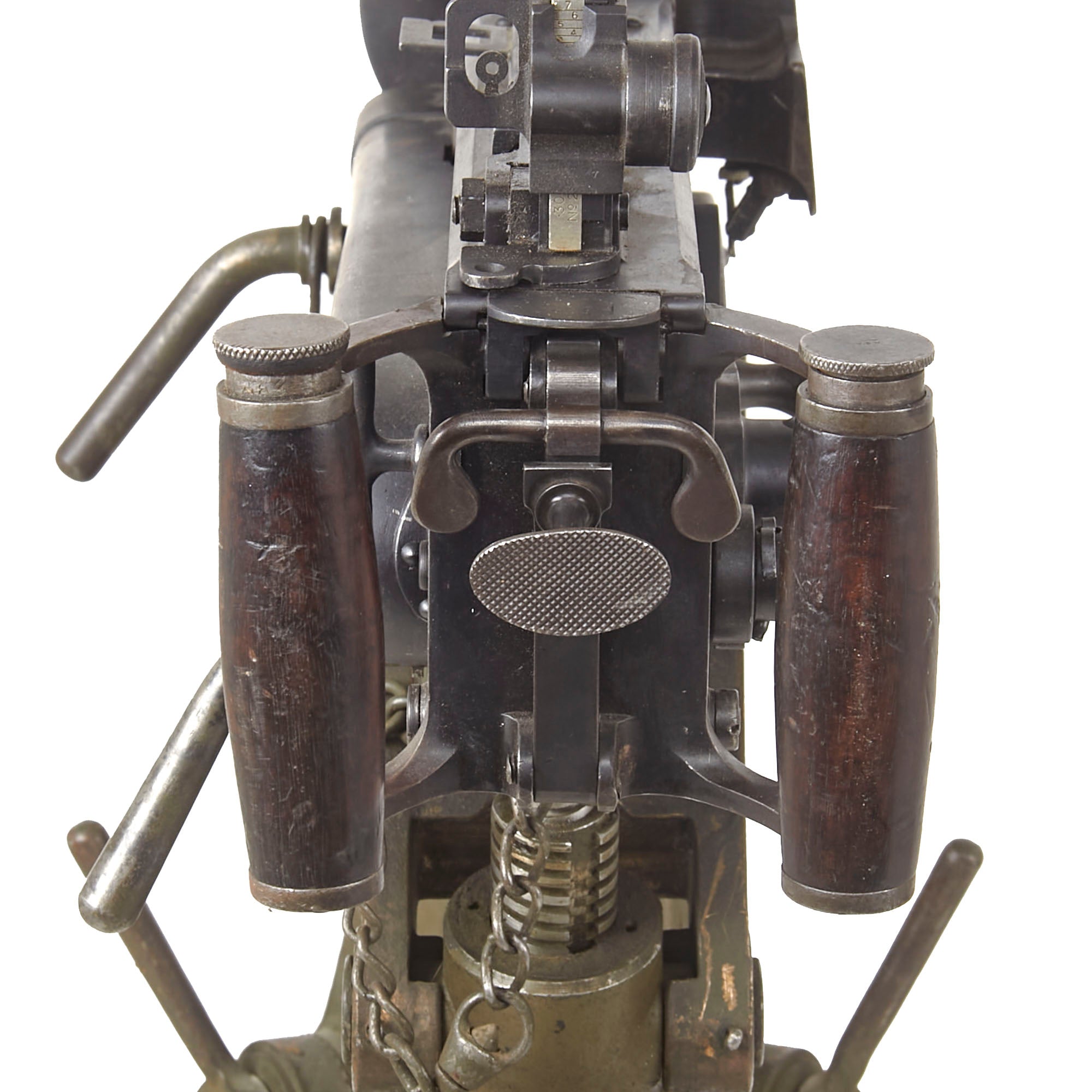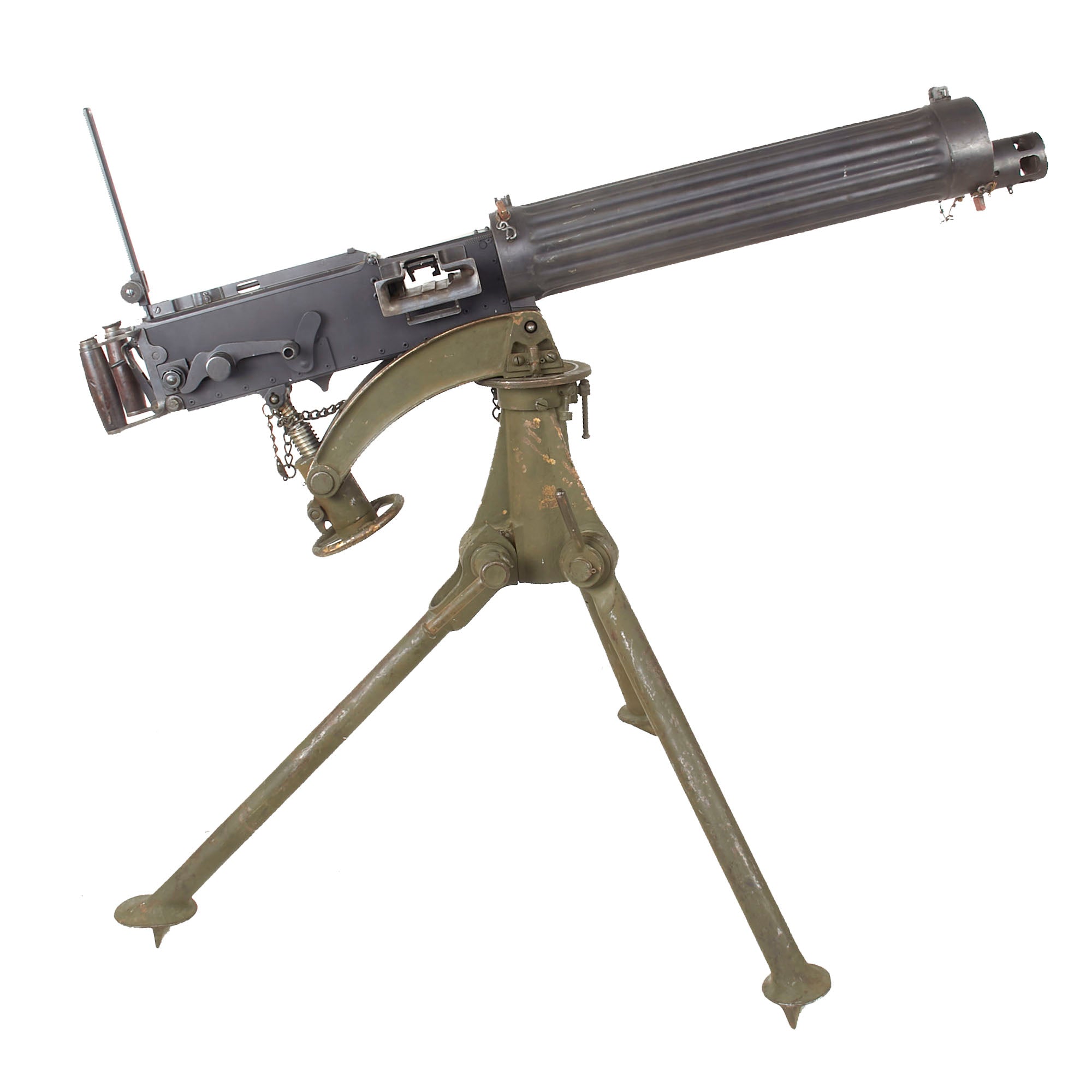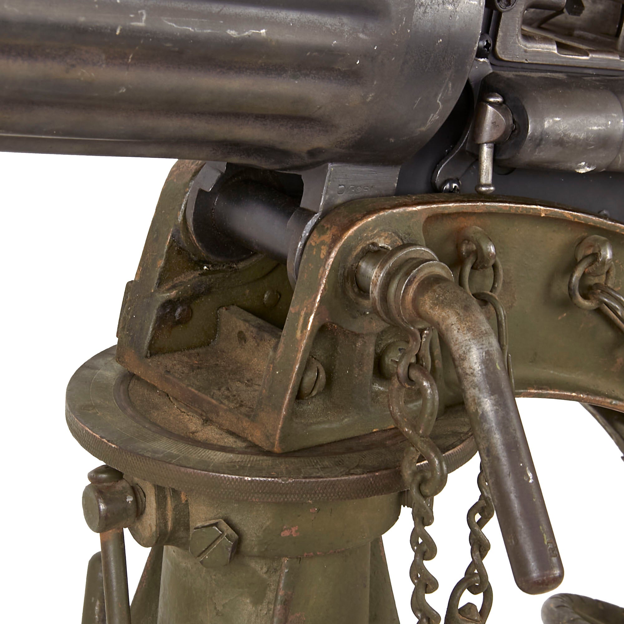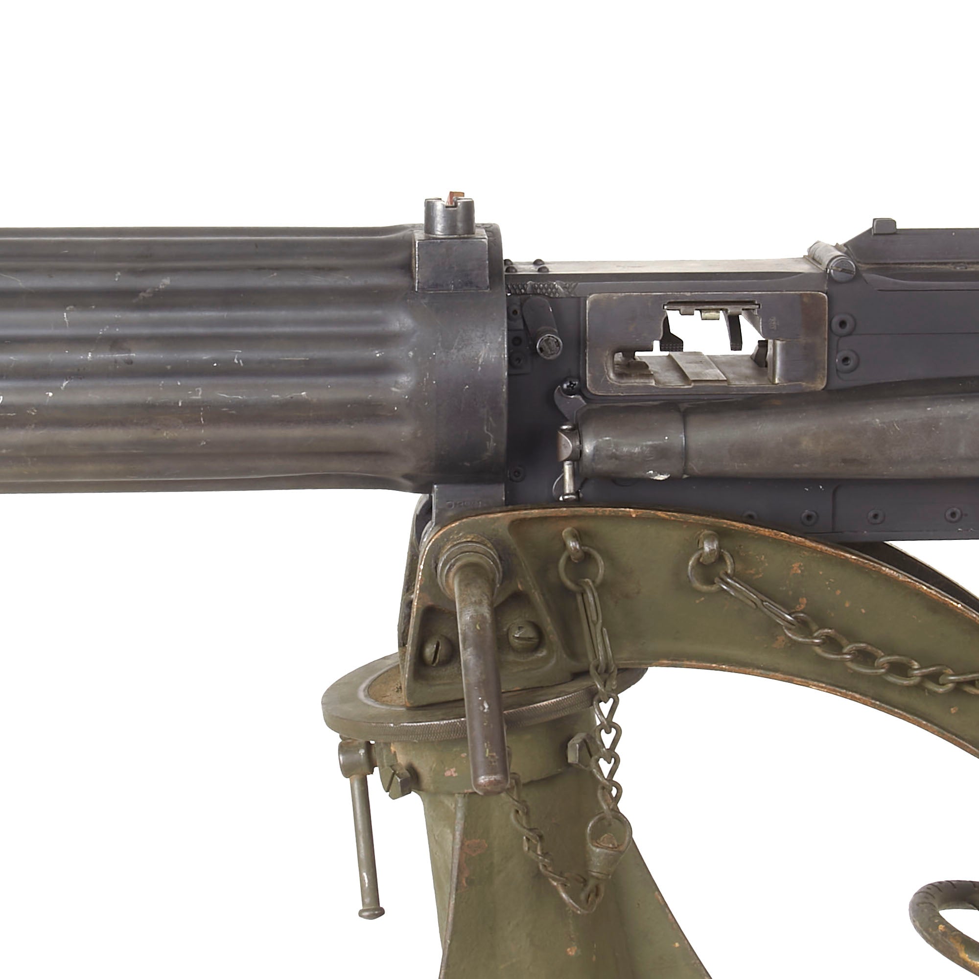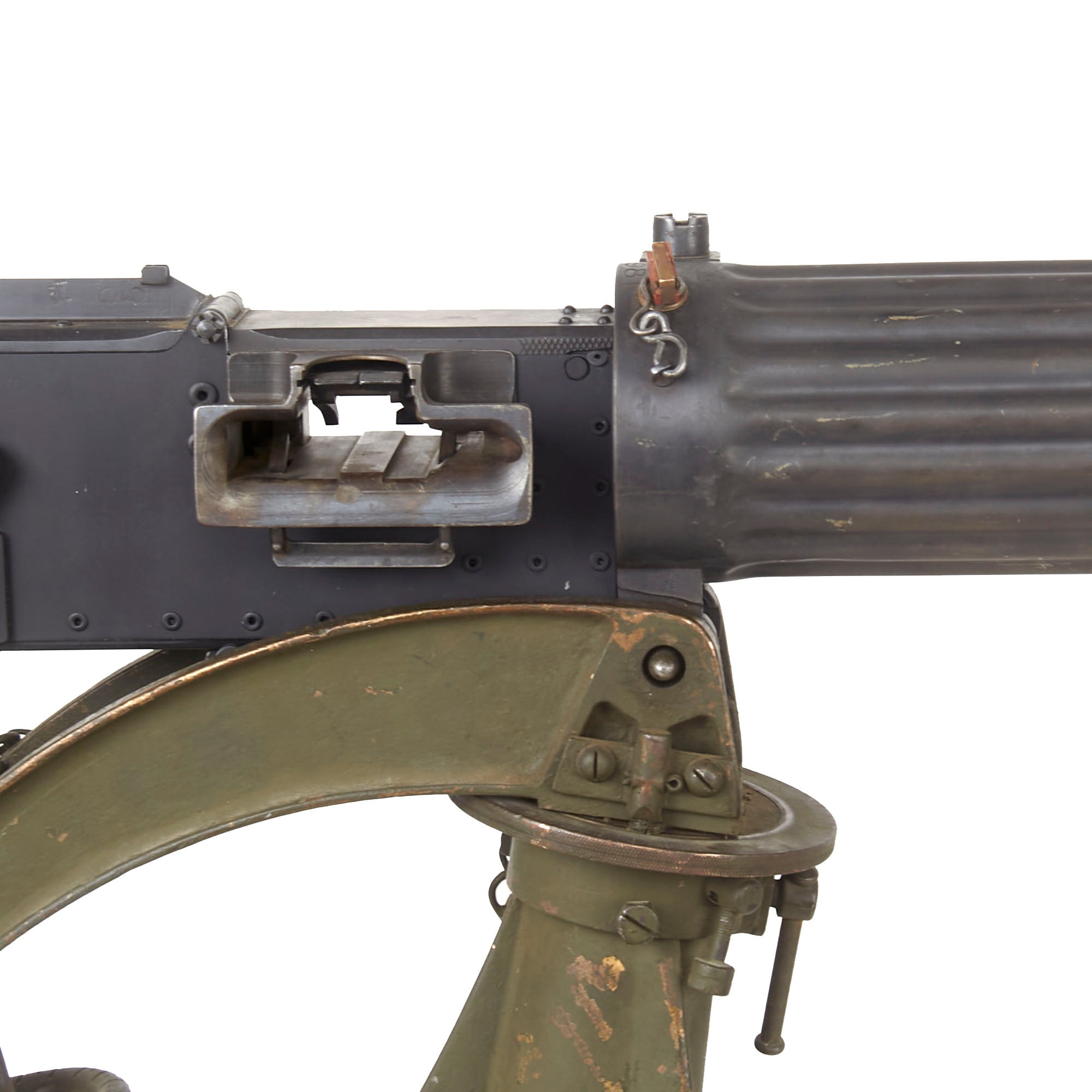 Original Item: Only One Available. One of the first we have had in some time! This is a fantastic British WWI Production Vickers Inert Fluted display non-firing Medium Machine Gun, complete with multiple accessories and an original tripod. The display gun was built to BATF specifications using an all original Vickers parts sets assembled on a BATF compliant inert non-firing dummy receiver. Both the left and right side plate are BATF compliant and completely inert, newly made from aluminum and without any of the functional cams. As they are inert pieces made from low strength aluminum this display "non-gun" is totally legal to own without any federal restrictions or license as it is no longer legally considered a firearm.
