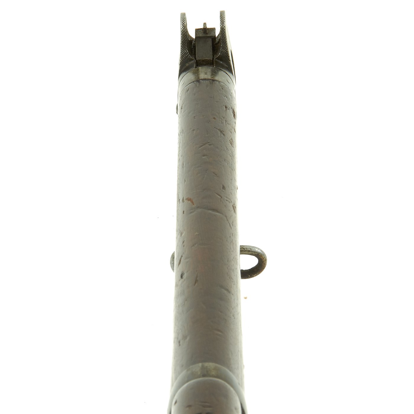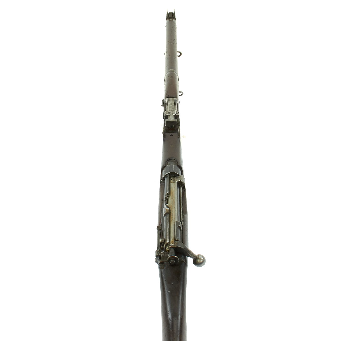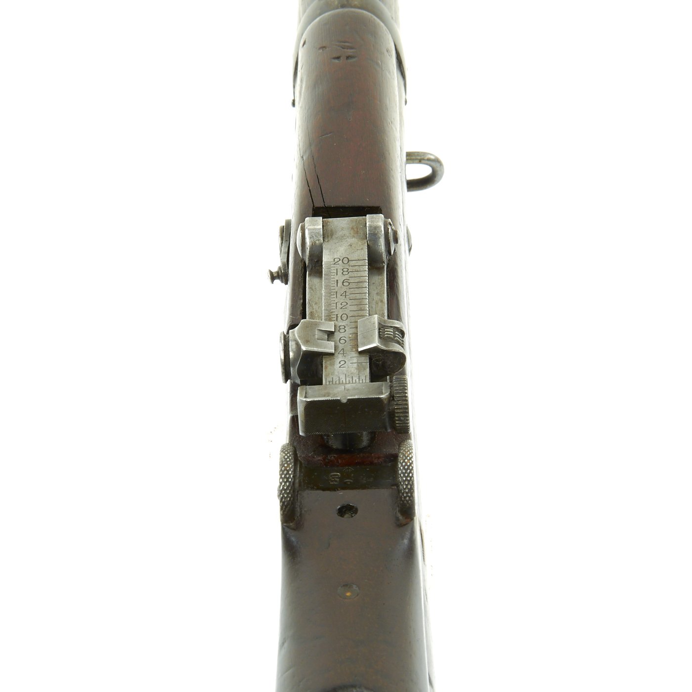 It is still fitted with the LONG RANGE REAR FLIP SIGHT and the the correct DIAL SIGHT half way down the left side of the barrel. It also has the EARLIEST "pinched" fore sight protector and the EARLIEST version of the lower hand guard, incorporating steel wings screwed directly into the wood. Really a great piece of history here!