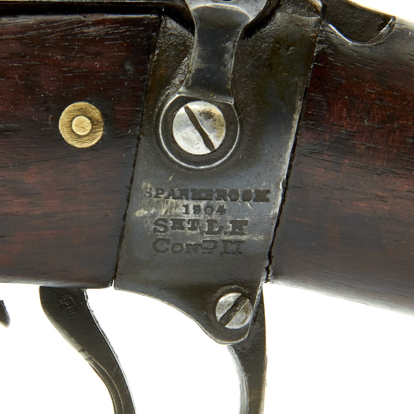 Original Item: Only One Available. This is definitely an interesting rifle, with a long service history. It started life as a .303 caliber Long Lee Enfield, but was refitted in 1904 and designated a Short Lee Enfield Rifle. At a later time it was then converted again to a .22 rimfire training rifle. It has all the characteristics