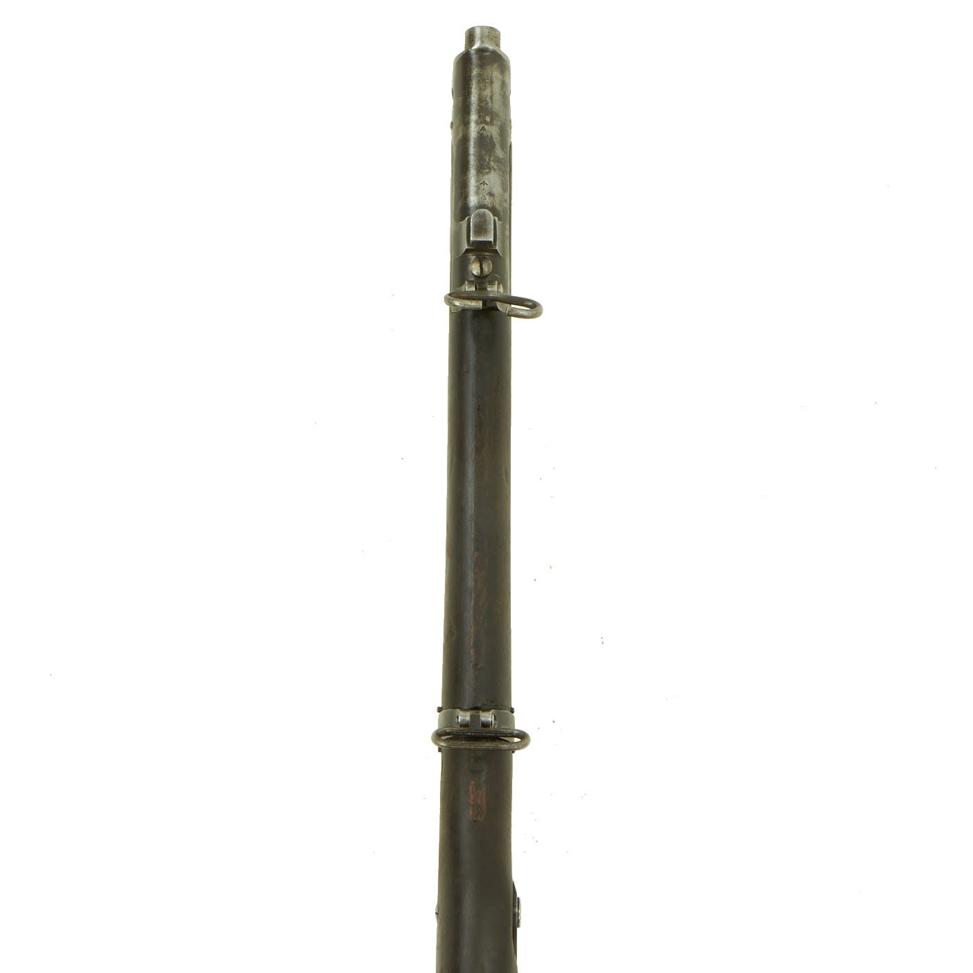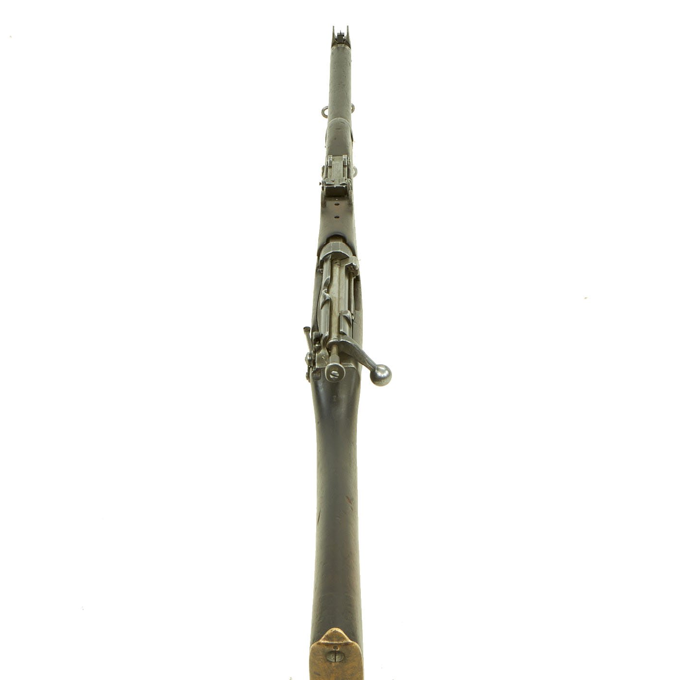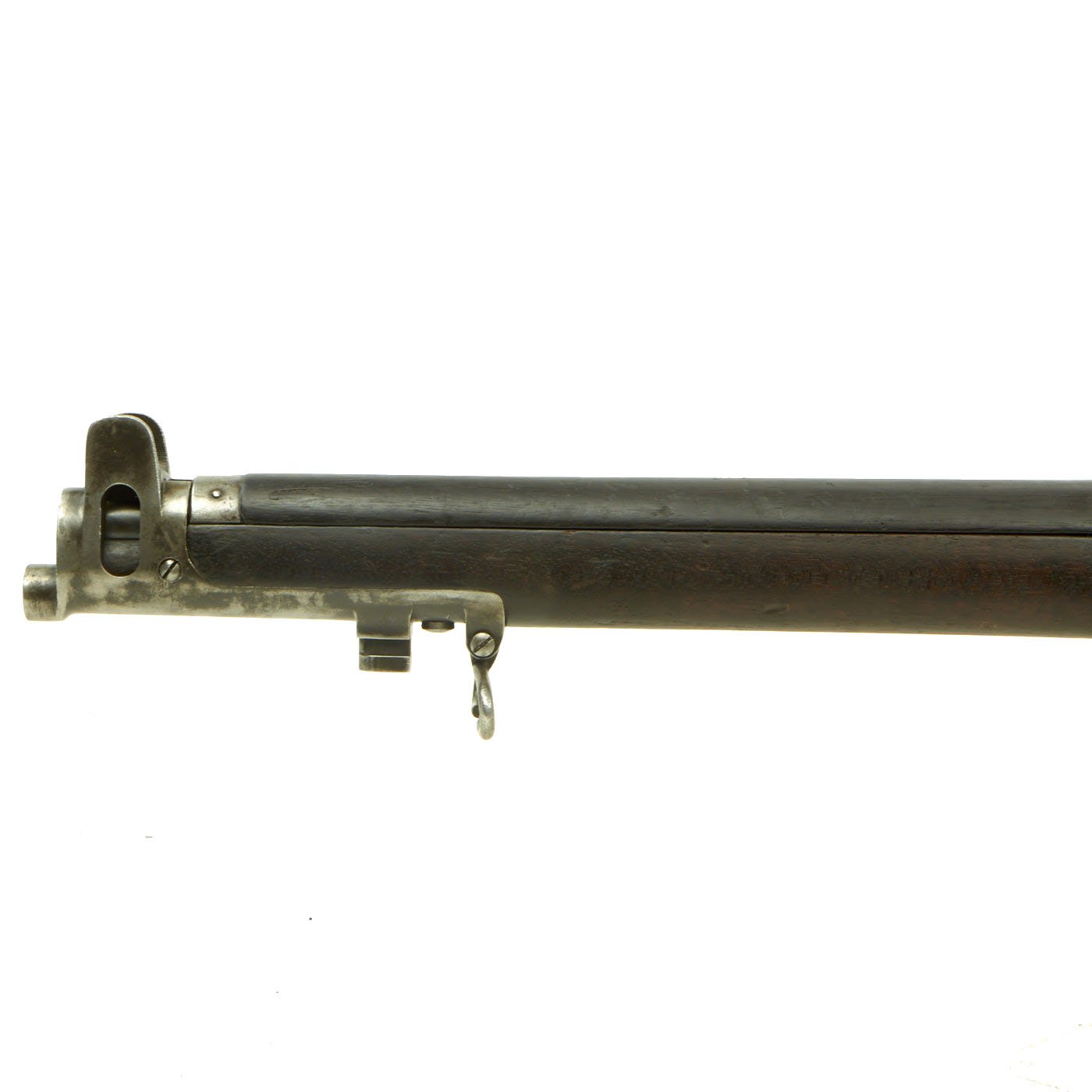 It was originally fitted with long range volley sights, and unlike most examples we have seen, this still has them intact! It also has the EARLIEST version of the lower hand guard, incorporating steel wings screwed directly into the wood. Really a great piece of history here! We have had several of these in the past, but unfortunately those days are gone, and this is possibly the last one we will ever have!