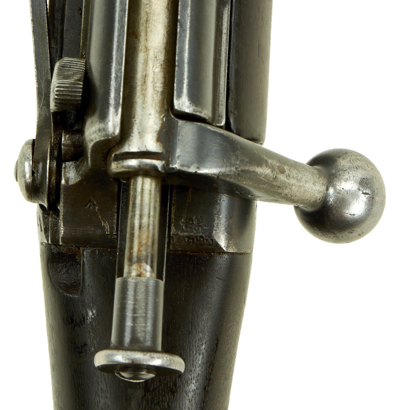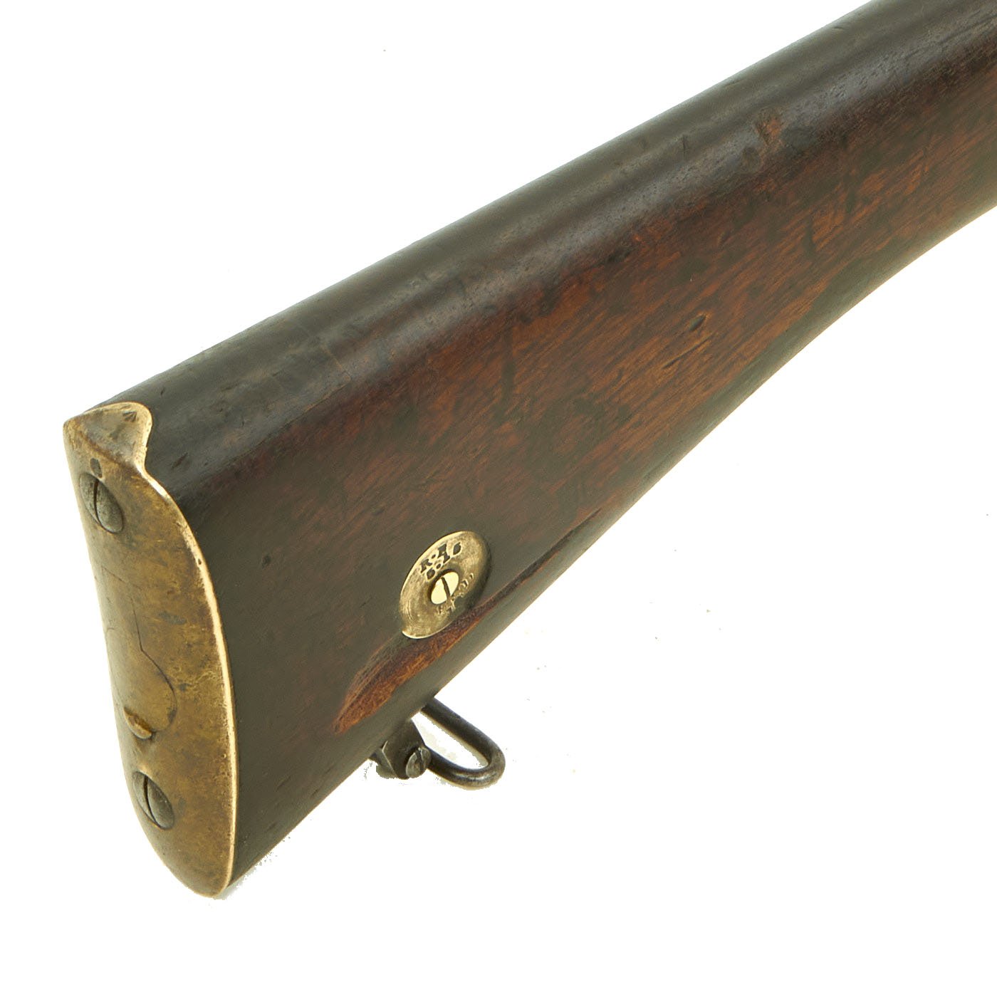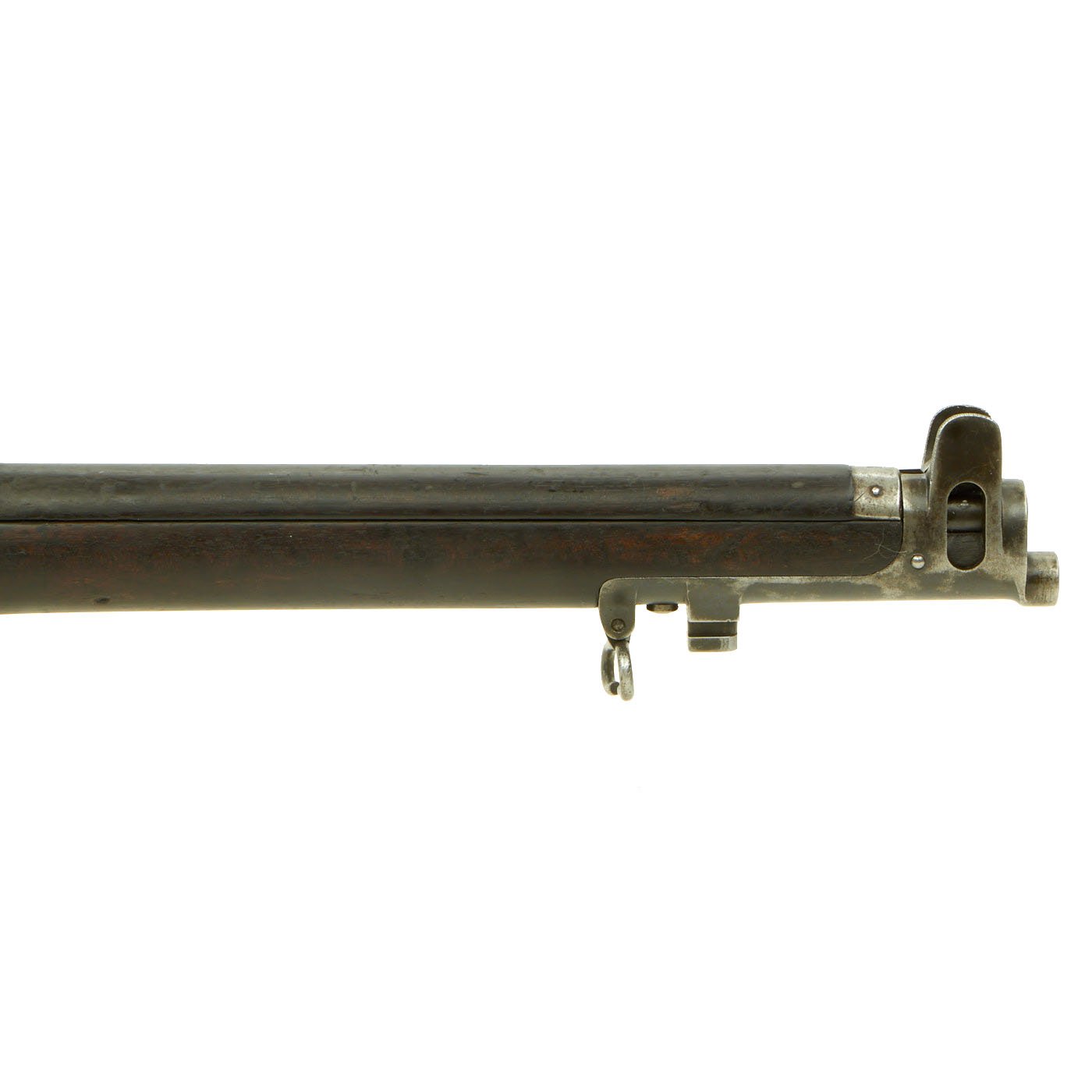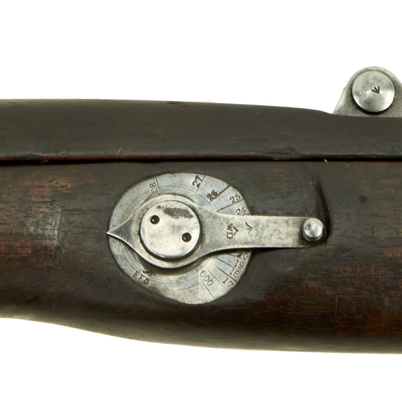 It was originally fitted with long range volley sights, and unlike most examples we have seen, this still has them intact! It also has the EARLIEST version of the lower hand guard, incorporating steel wings screwed directly into the wood. Really a great piece of history here! We have had several of these in the past, but unfortunately those days are gone, and this is possibly the last one we will ever have!
