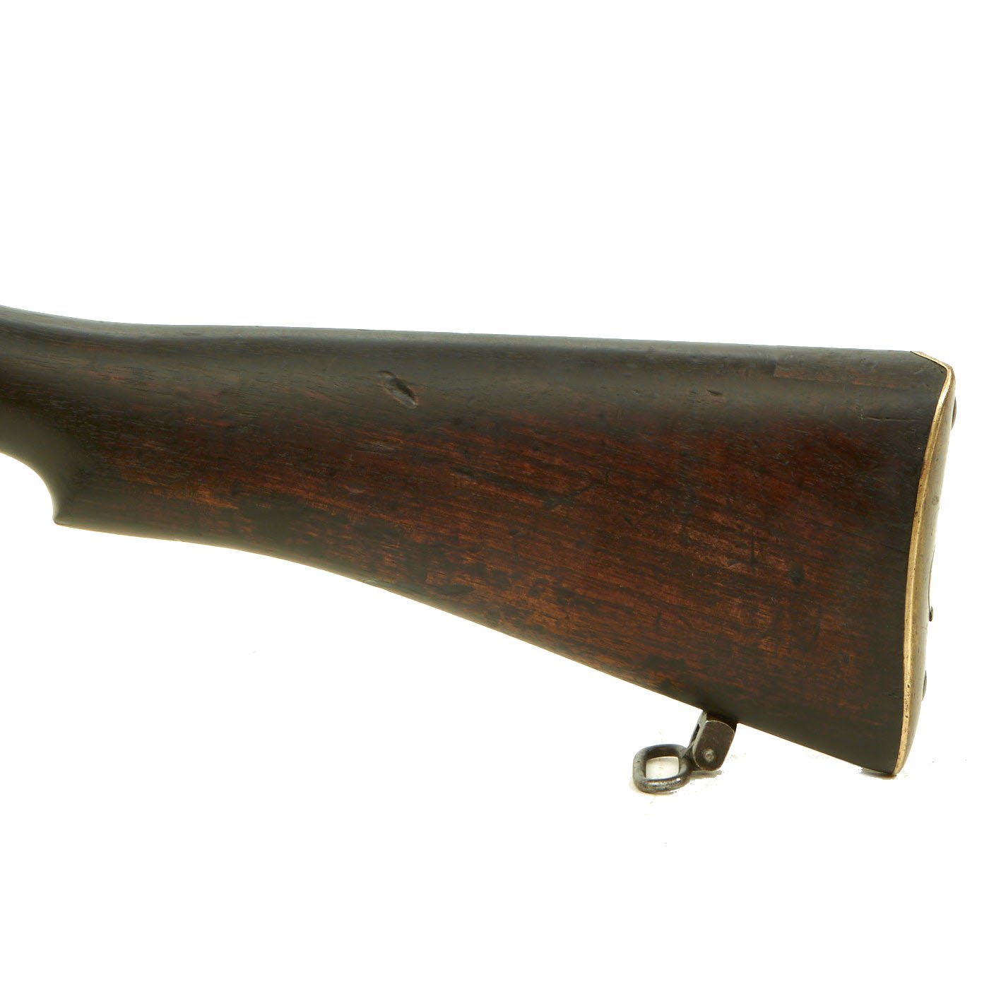 Original Item: Only One Available. This is definitely an interesting rifle, with a long service history. It started life as a .303 caliber Long Lee Enfield, but was refitted in 1905 and designated a Short Lee Enfield Rifle. At a later time it was then converted again to a .22 rimfire training rifle. It has all the characteristics the VERY EARLIEST P-1903 Short Magazine Lee-Enfield rifles, but in .22 caliber for training purposes.