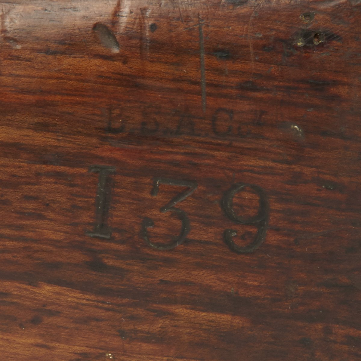 The markings on this rifle help trace the history of the refits it has gone through. On the top right of the stock cup it is marked with the original production information: