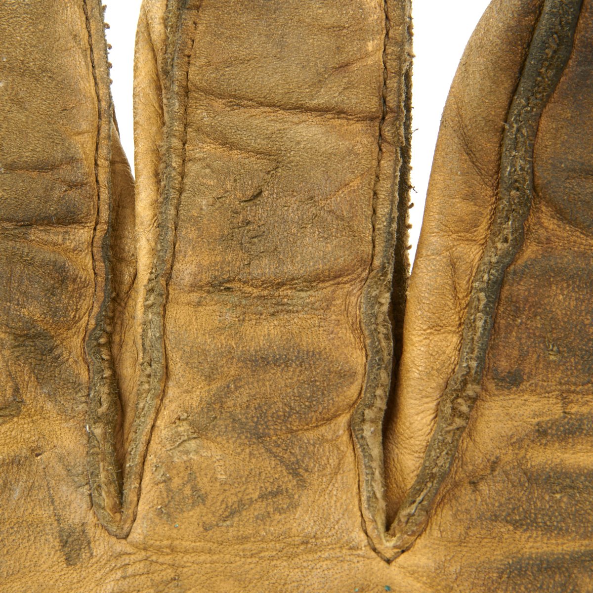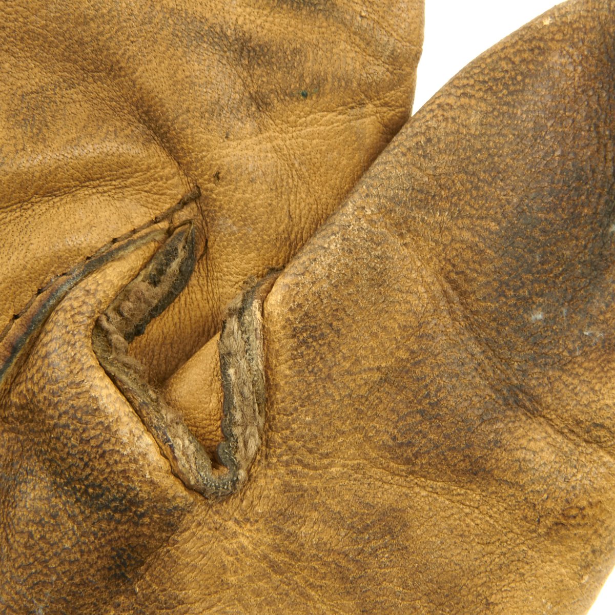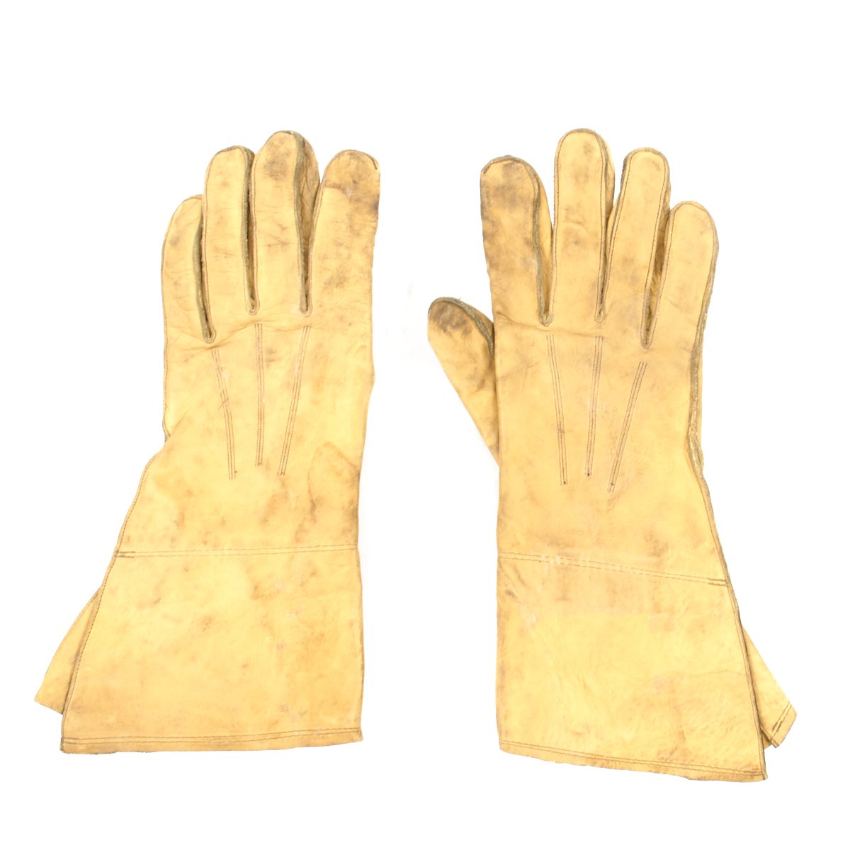 Original Item: Only One Pair Available. These are fantastic summer weight leather flight gloves dated 1941 made by Thomas Ensor & Sons of Milborne Port in Somerset, England. The bear War Department markings and broad arrow stamps. Overall condition is very good, the gauntlets are still supple and complete. These gloves we so popular among fliers that American aviators were known to steal them from British Royal Air Force stores! Aviator gloves are essential for any RAF collection.