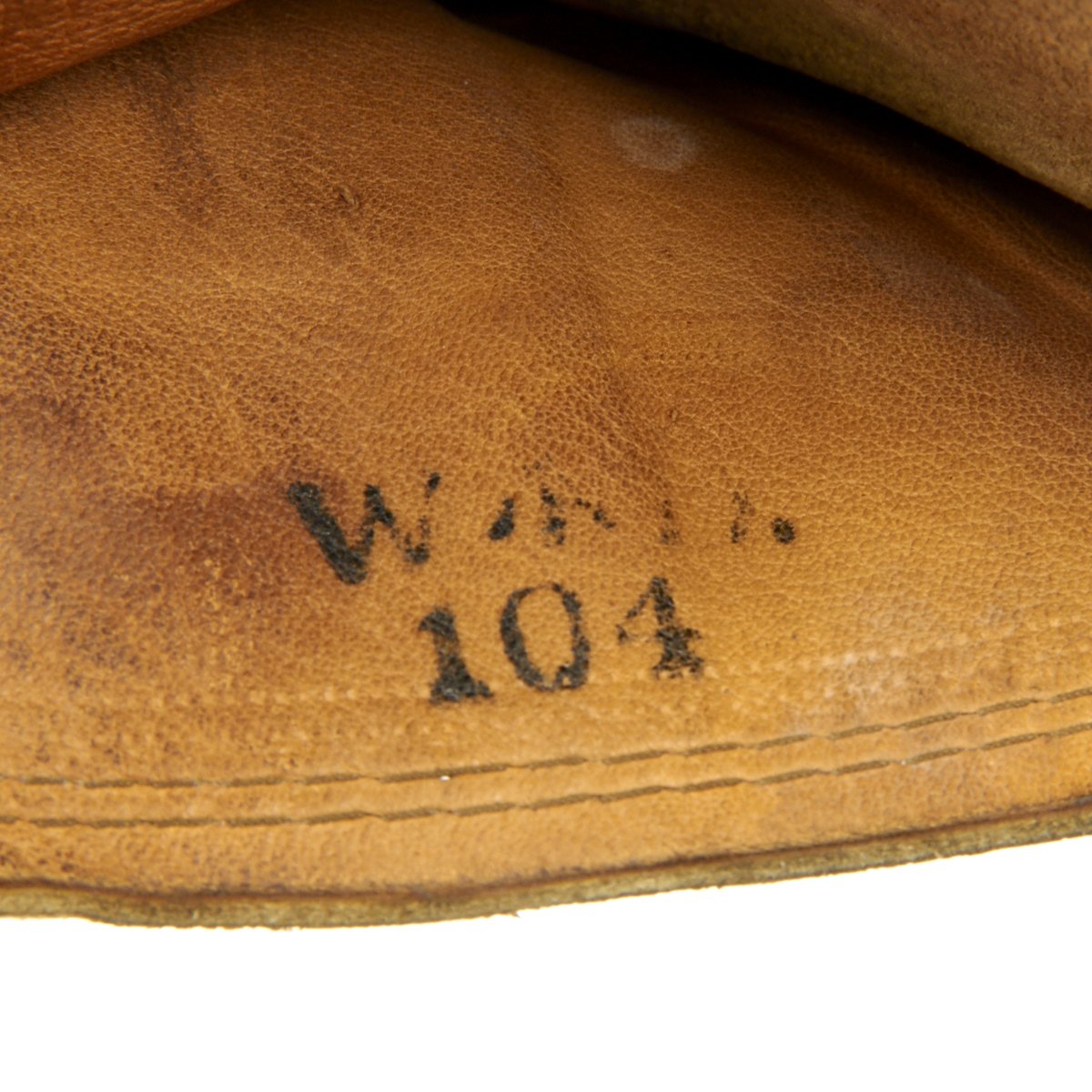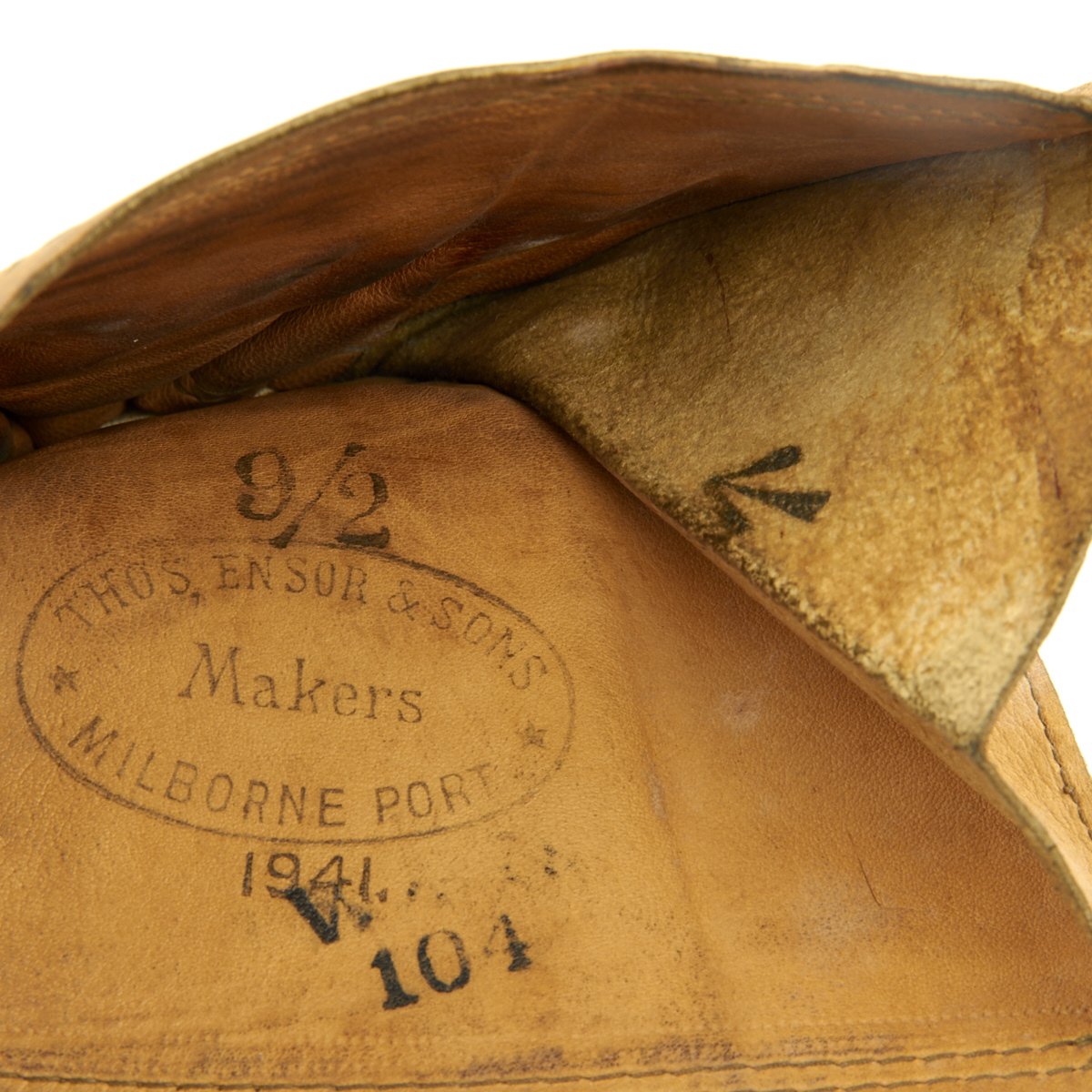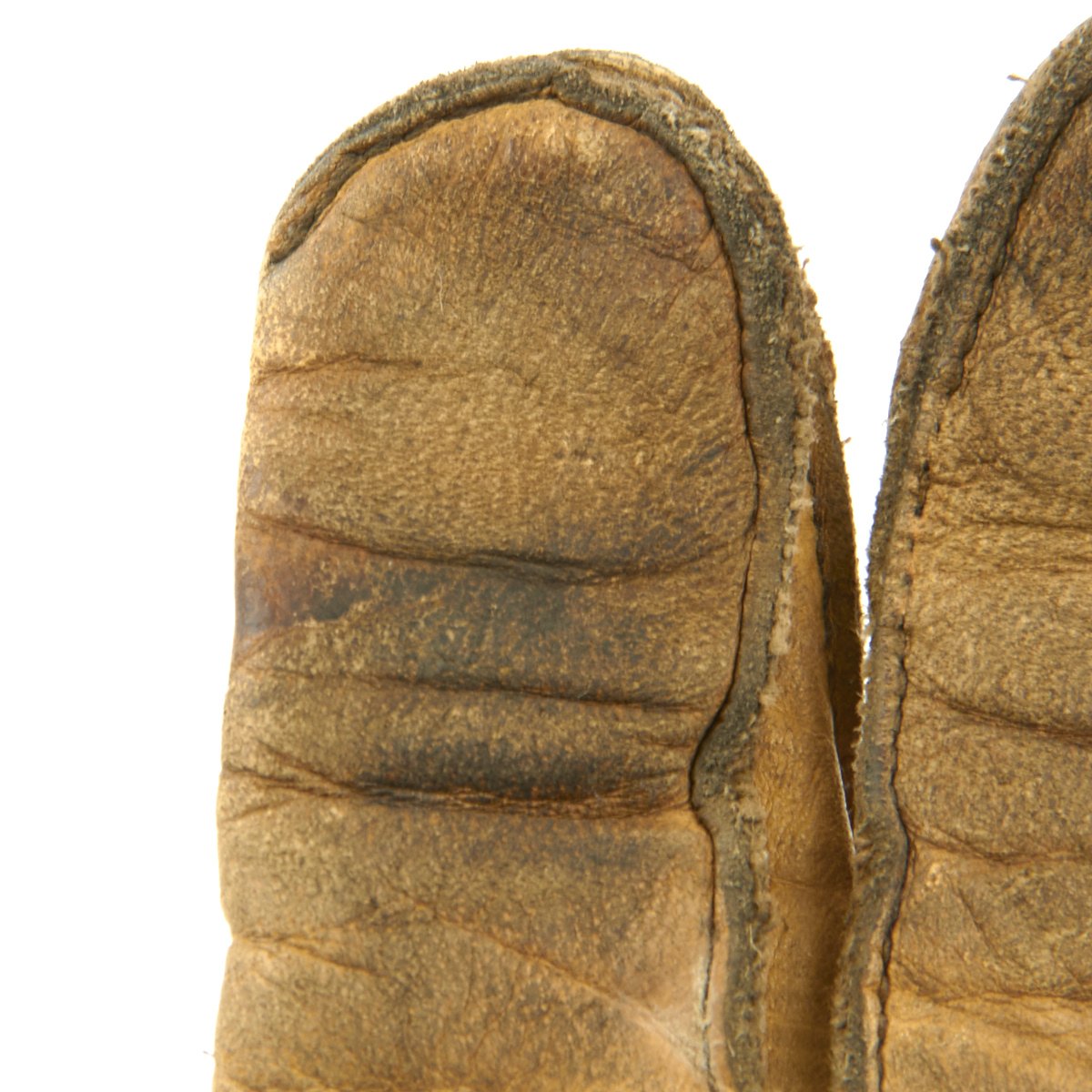 Original Item: Only One Pair Available. These are fantastic summer weight leather flight gloves dated 1941 made by Thomas Ensor & Sons of Milborne Port in Somerset, England. The bear War Department markings and broad arrow stamps. Overall condition is very good, the gauntlets are still supple and complete. These gloves we so popular among fliers that American aviators were known to steal them from British Royal Air Force stores! Aviator gloves are essential for any RAF collection.