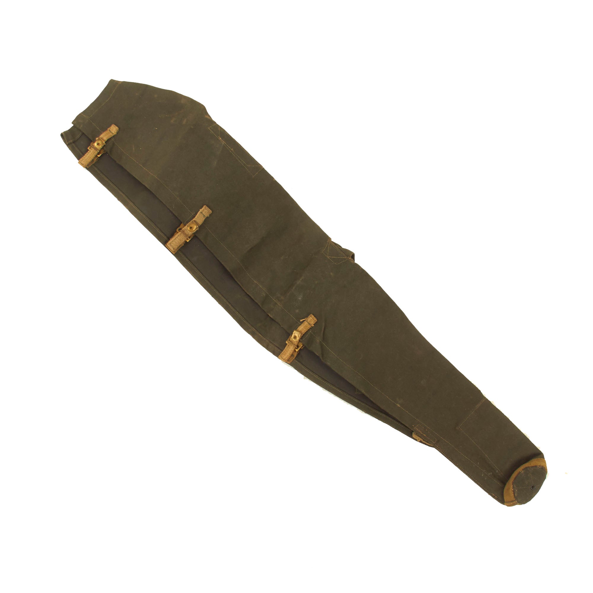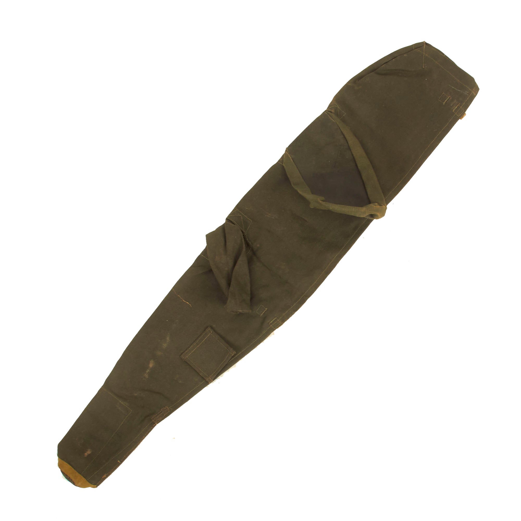 The display gun comes complete with an original magazine, and unlike many we have had, this example has a fully intact LIVE MkII barrel, which can be removed from the display gun relatively easily. It also has an original "waxed" post war issued jungle gun cover, which is dated 1955.