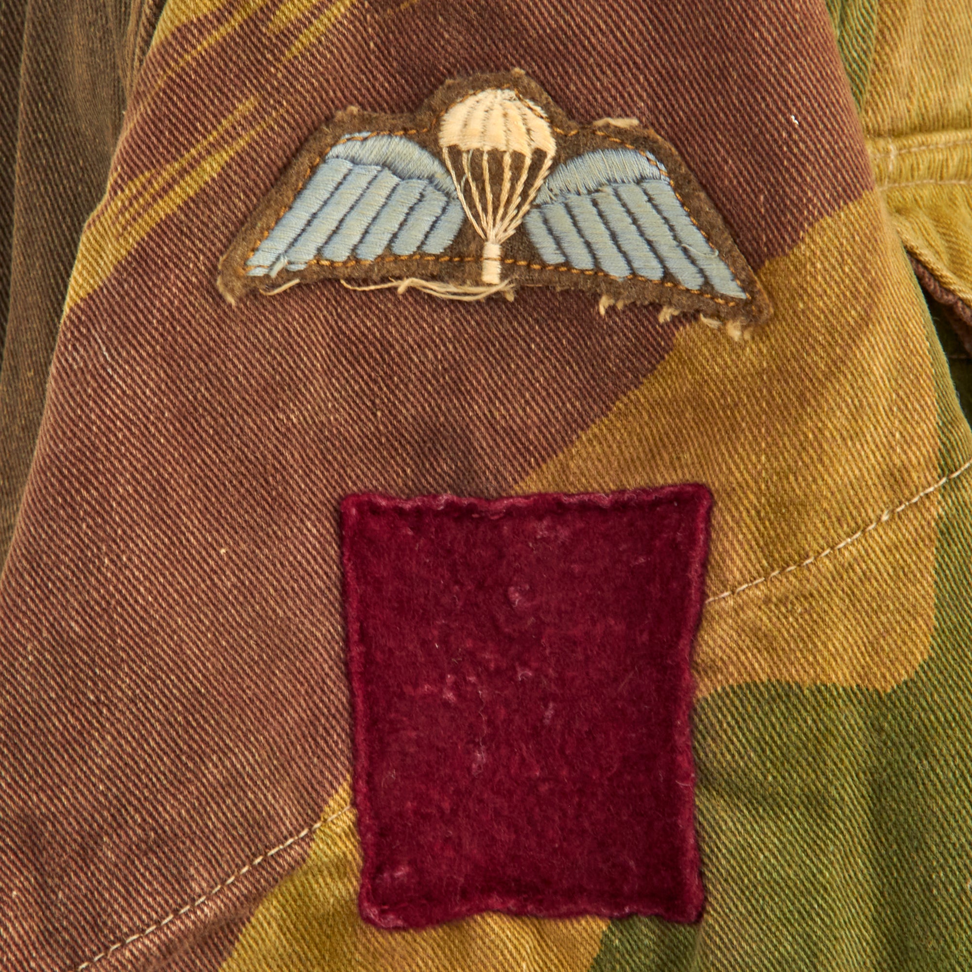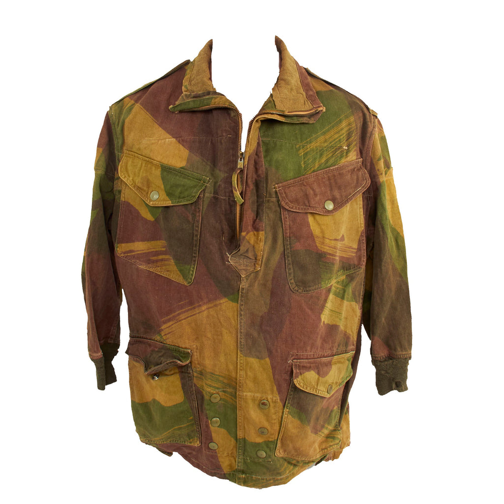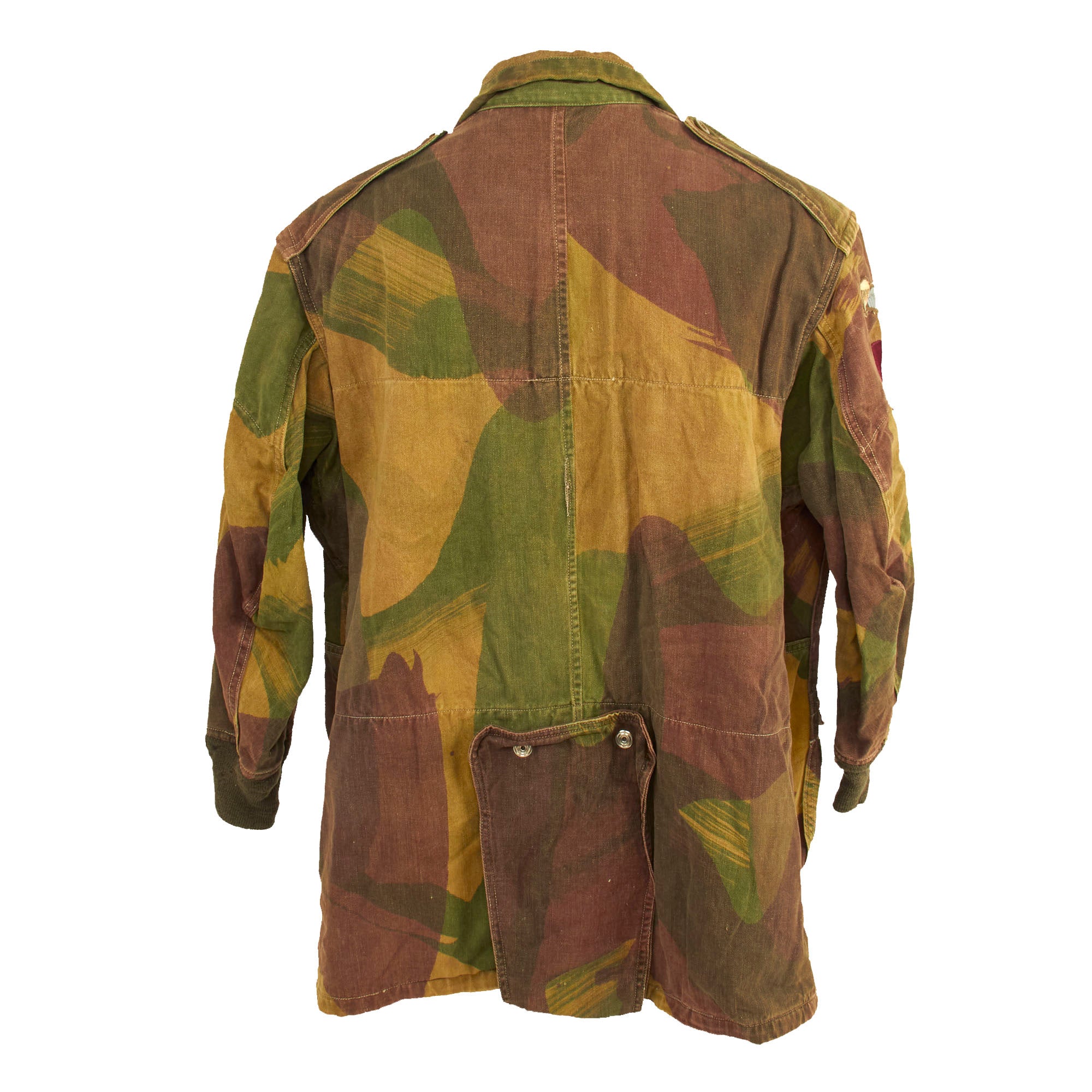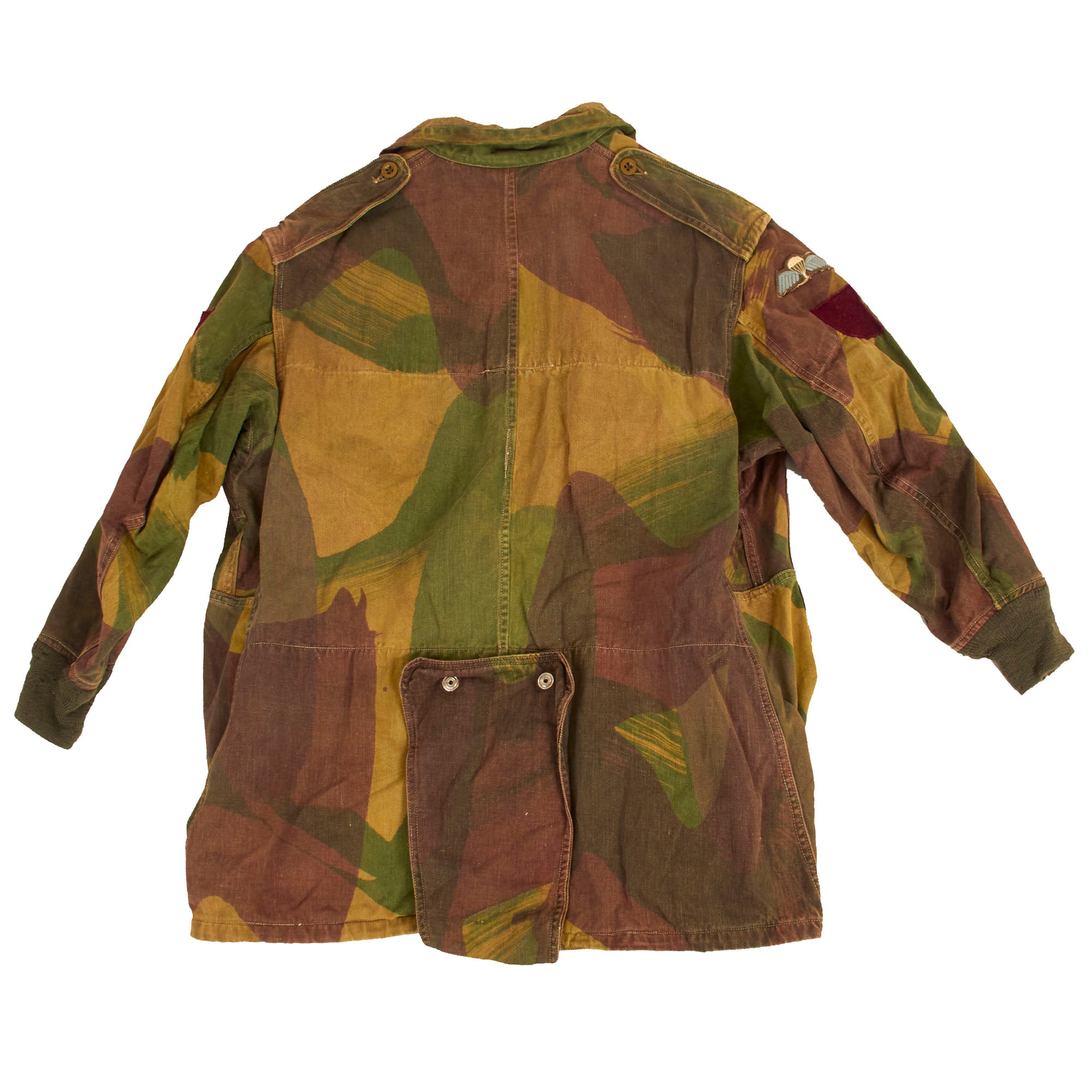 The smock was most commonly associated with British and Commonwealth airborne units, and the Special Air Service Regiment, after D-Day, but its initial use was by members of the Special Operations Executive (SOE), parachuted or landed into enemy territory between 1941 and 1944. In the early smocks the colours were meant to be impermanent and wash out, leaving the garment looking like a typical French artisan or labourer’s chemise, and thus, hopefully, aiding the wearer's Escape and Evasion chances. As the newly formed Airborne Forces expanded, so the need for smocks grew, meaning that they were by now screen printed for easier production.