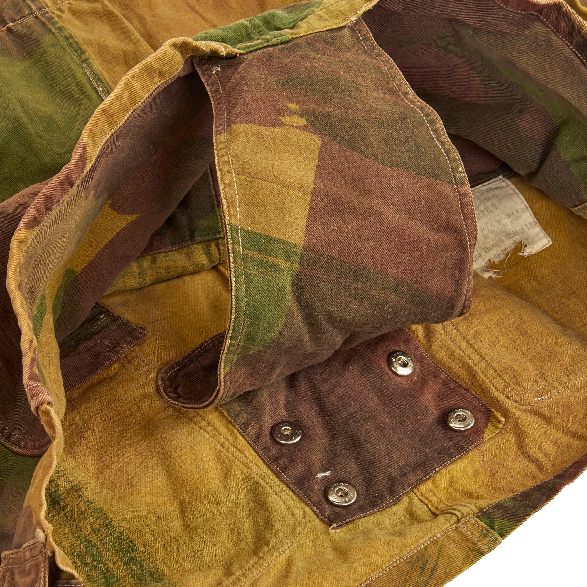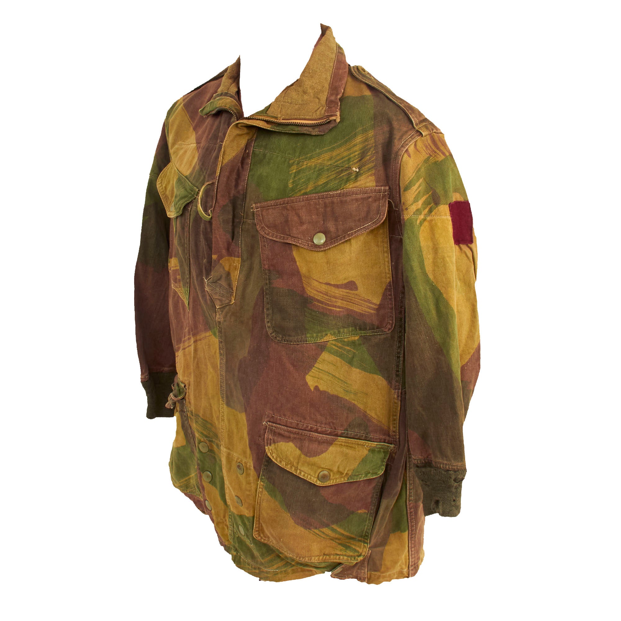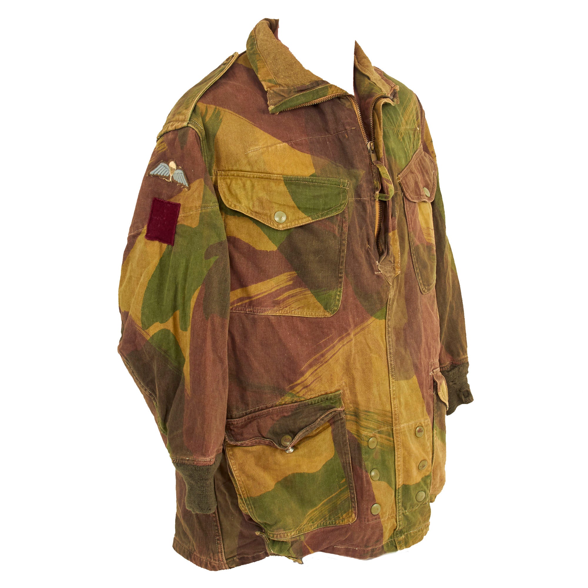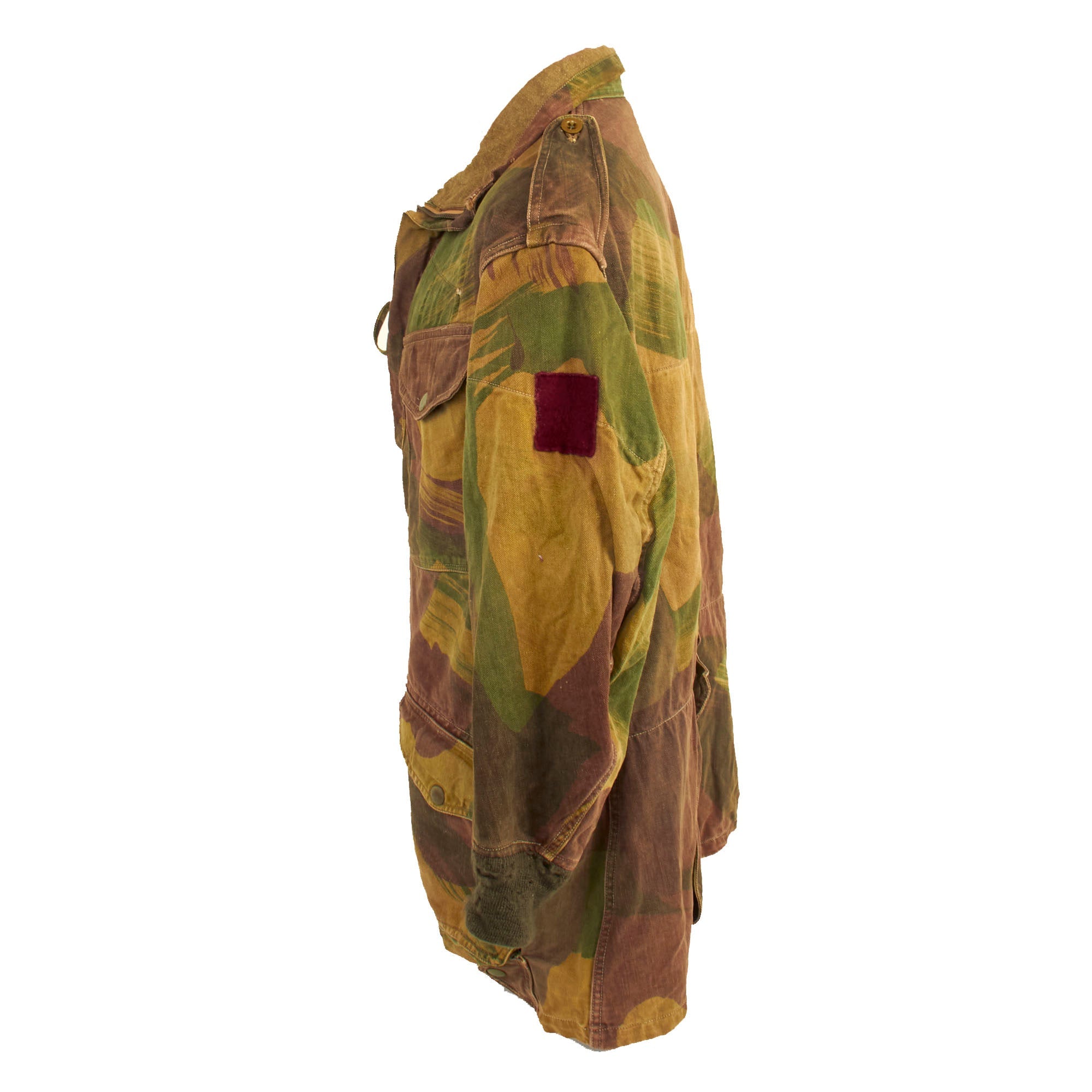 The smock was most commonly associated with British and Commonwealth airborne units, and the Special Air Service Regiment, after D-Day, but its initial use was by members of the Special Operations Executive (SOE), parachuted or landed into enemy territory between 1941 and 1944. In the early smocks the colours were meant to be impermanent and wash out, leaving the garment looking like a typical French artisan or labourer’s chemise, and thus, hopefully, aiding the wearer's Escape and Evasion chances. As the newly formed Airborne Forces expanded, so the need for smocks grew, meaning that they were by now screen printed for easier production.