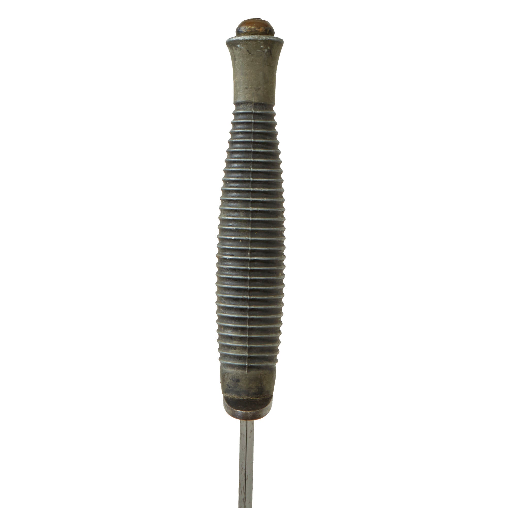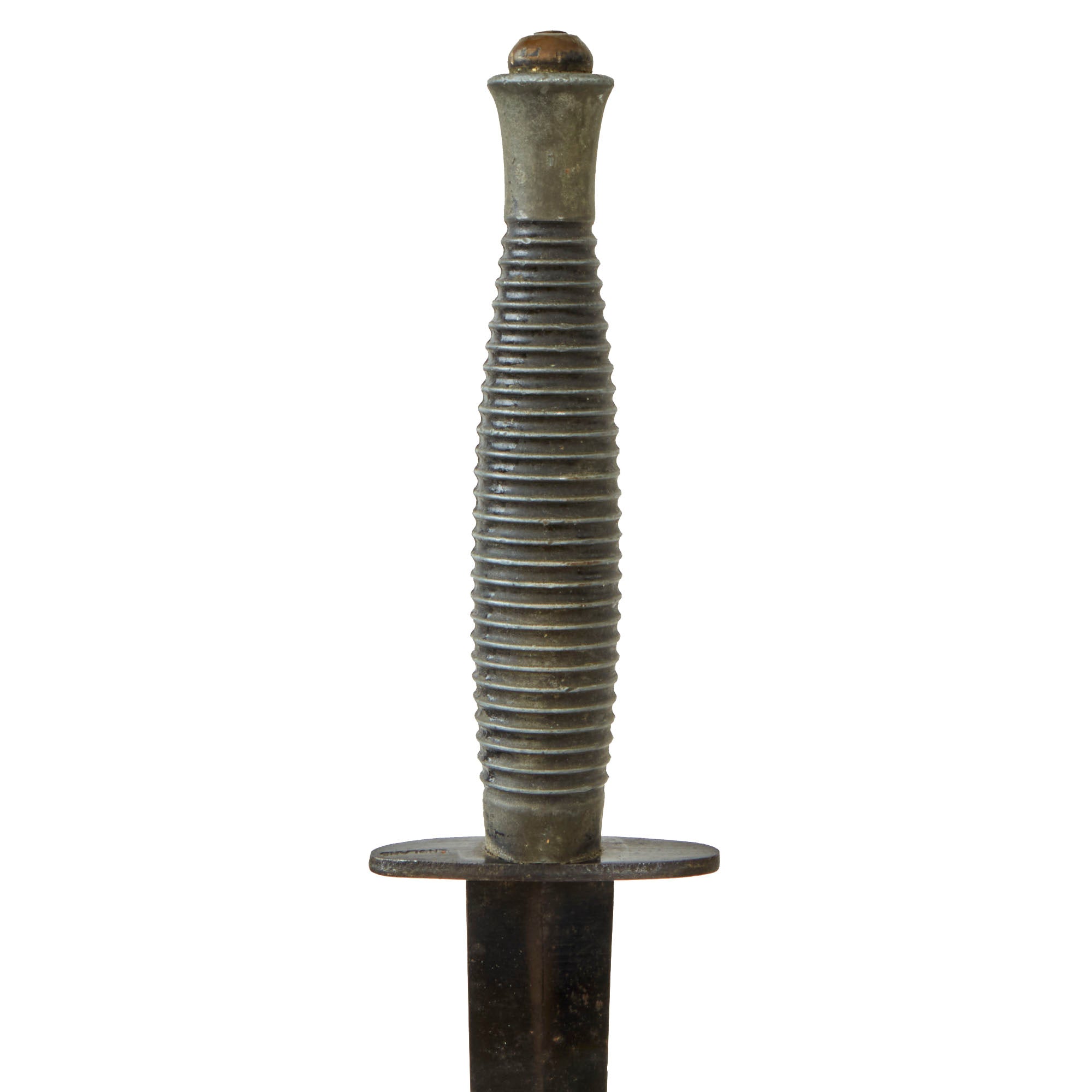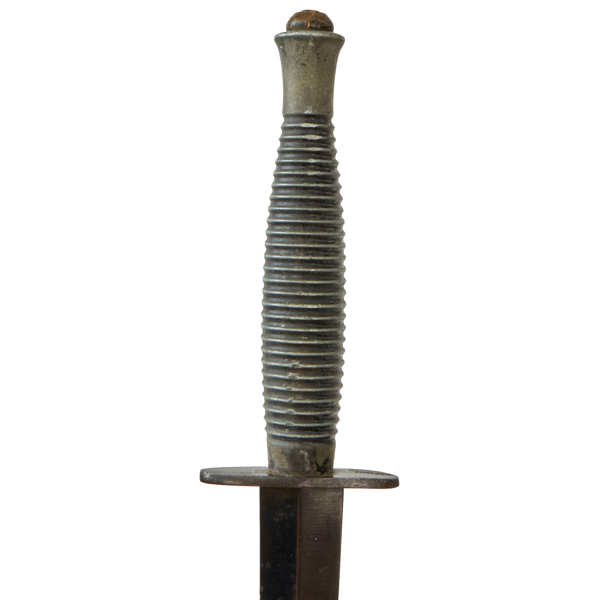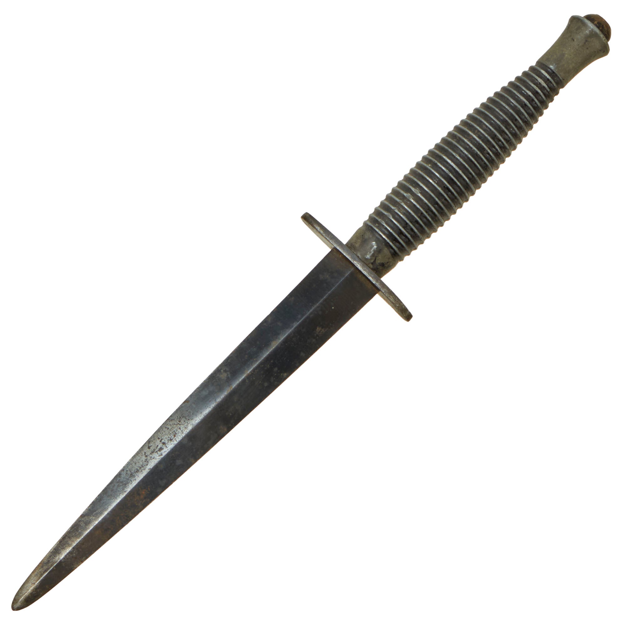 Original Item. Only One Available. This is a good worn example of the standard "Third Pattern" British Fairbairn-Sykes commando dagger, with the later type alloy handle. As brass was a "strategic material," only the early examples of the third pattern have brass handles, with later war produced models having alloy handles. The handle dates production somewhere between mid 1944 and the end of the war. The knives varied somewhat in size, and this example measures 11", with a 6 ⅜” blade. It has seen long service, the blade was once longer but its since worn down a bit.