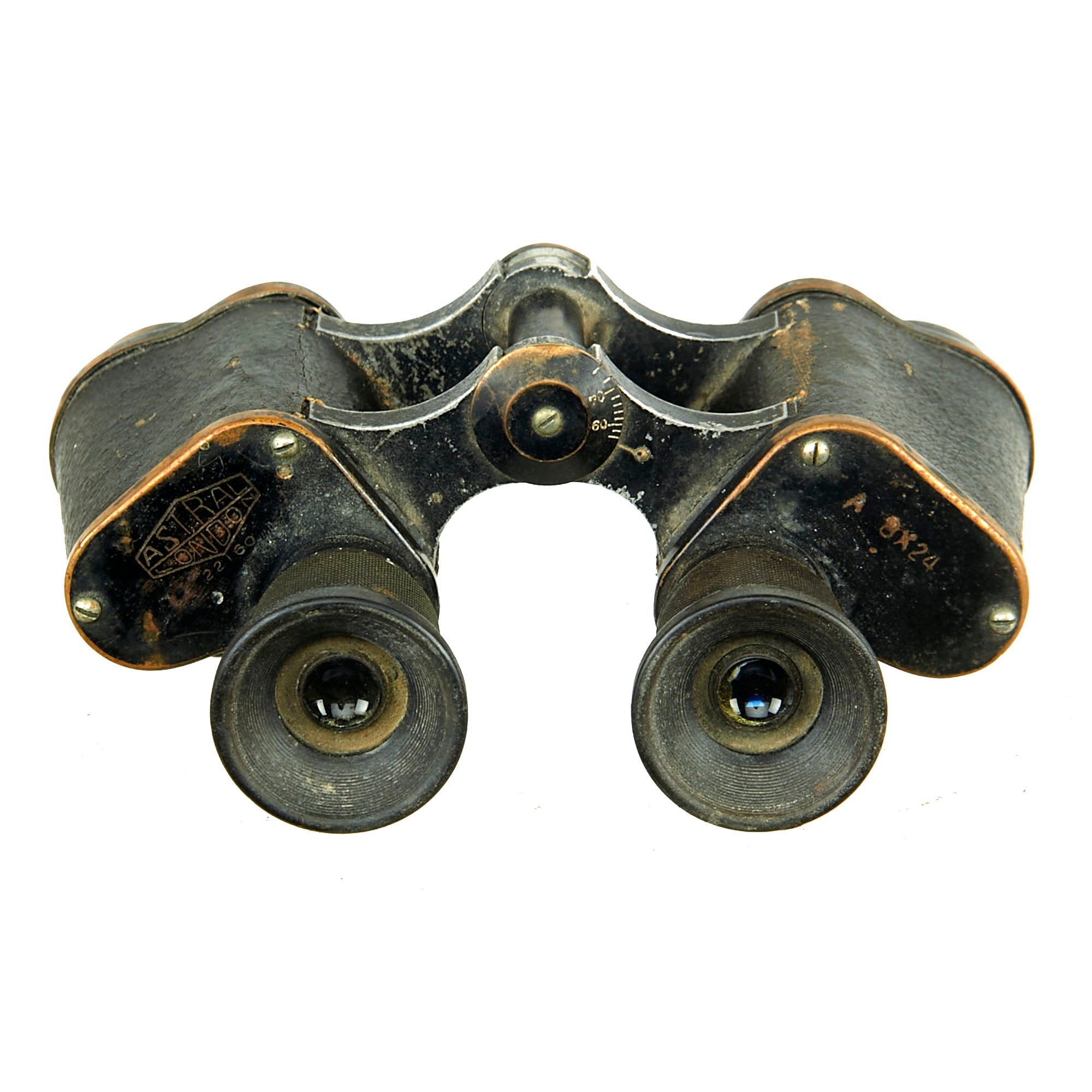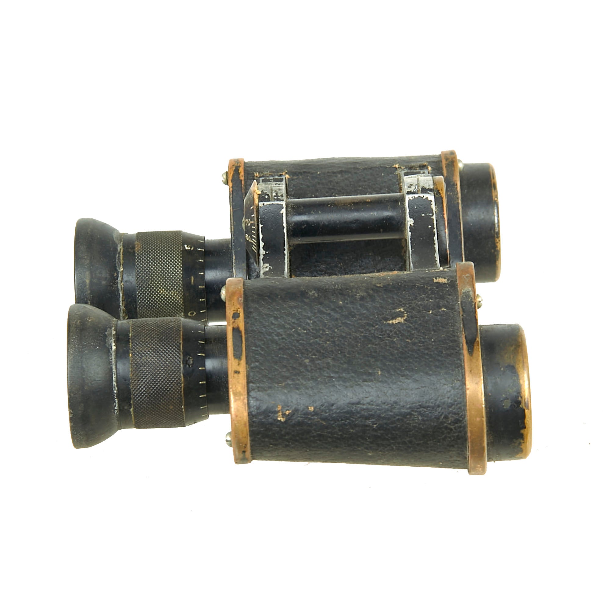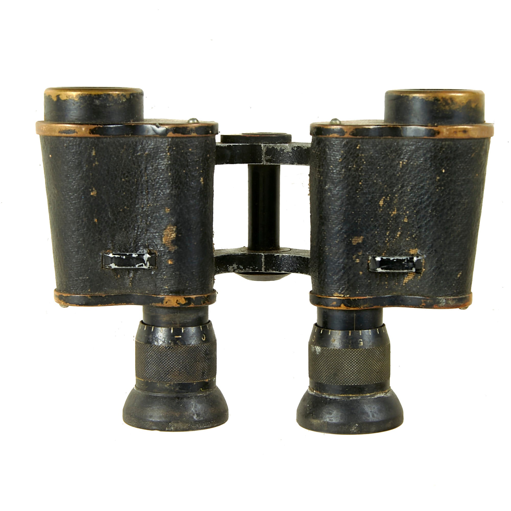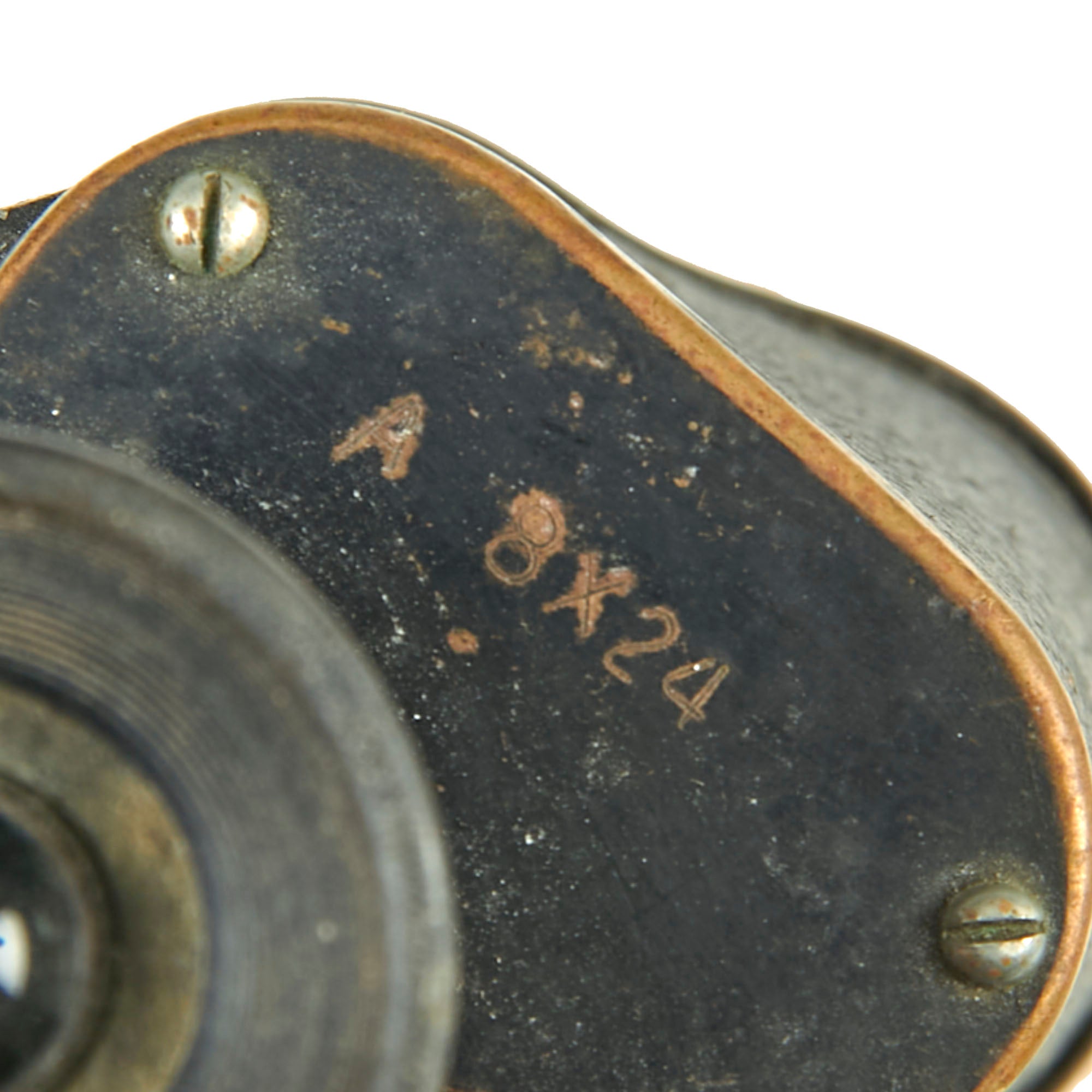 Original Item: Only One Available. In fair working order these are a pair of 8x24 binoculars, as often used by Officers while overseeing the soldiers under their command. These are in good condition, fully functional and with much of the black finish still intact. Both eyepiece cups are still present, though they are heavily worn. Optics are clear, though a little dirty.