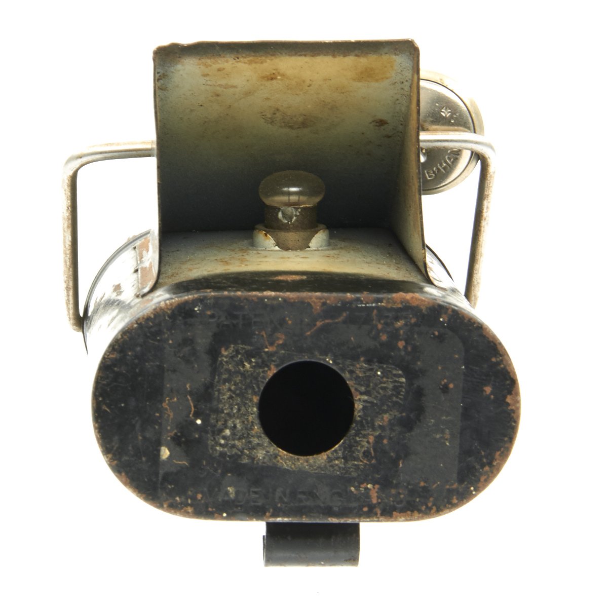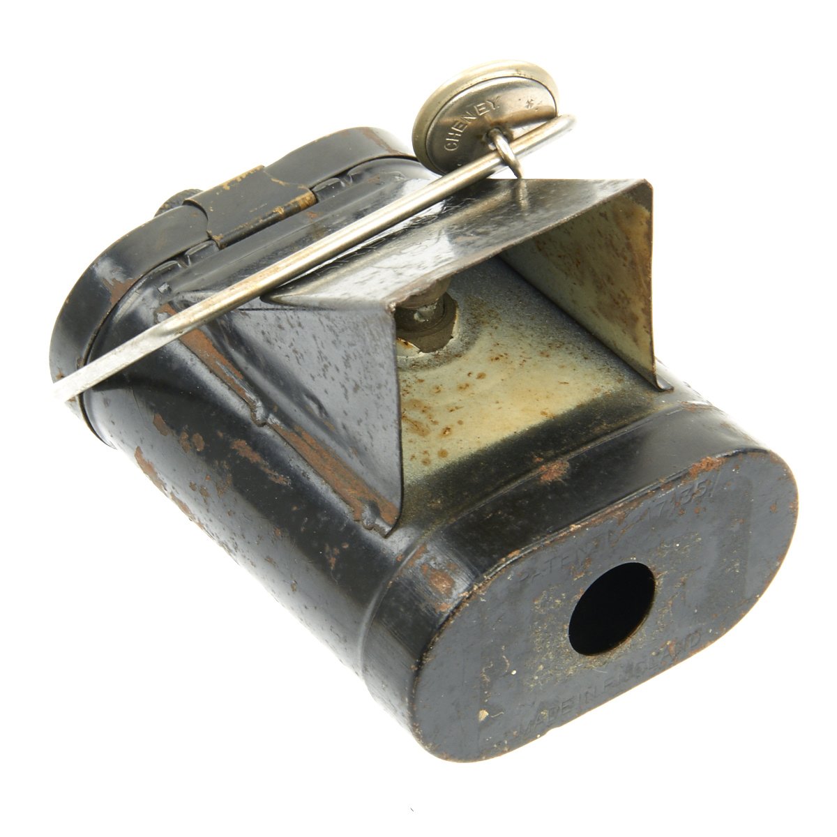 Original Item: Only One Available. This is a great example of an original British WWII "Blackout" Flash Light. These were used in London's Blitz Air Raids and were intended to reduce to a minimum the amount of light directed towards the sky. This would make it harder for the German Air Crews to locate inhabited areas. The substantial beam cover on the front of this light is marked:-