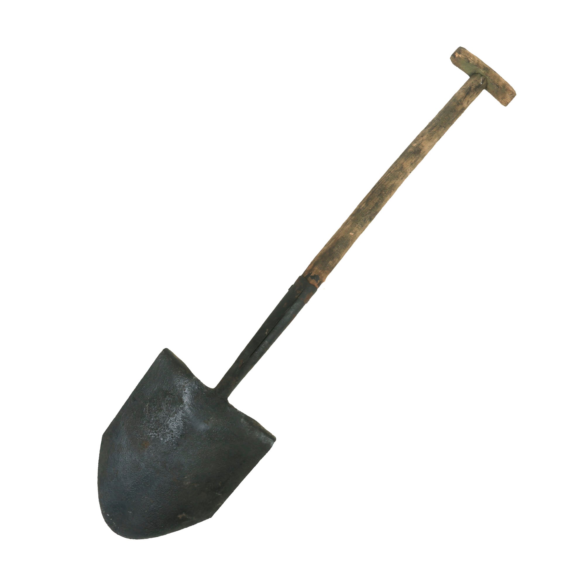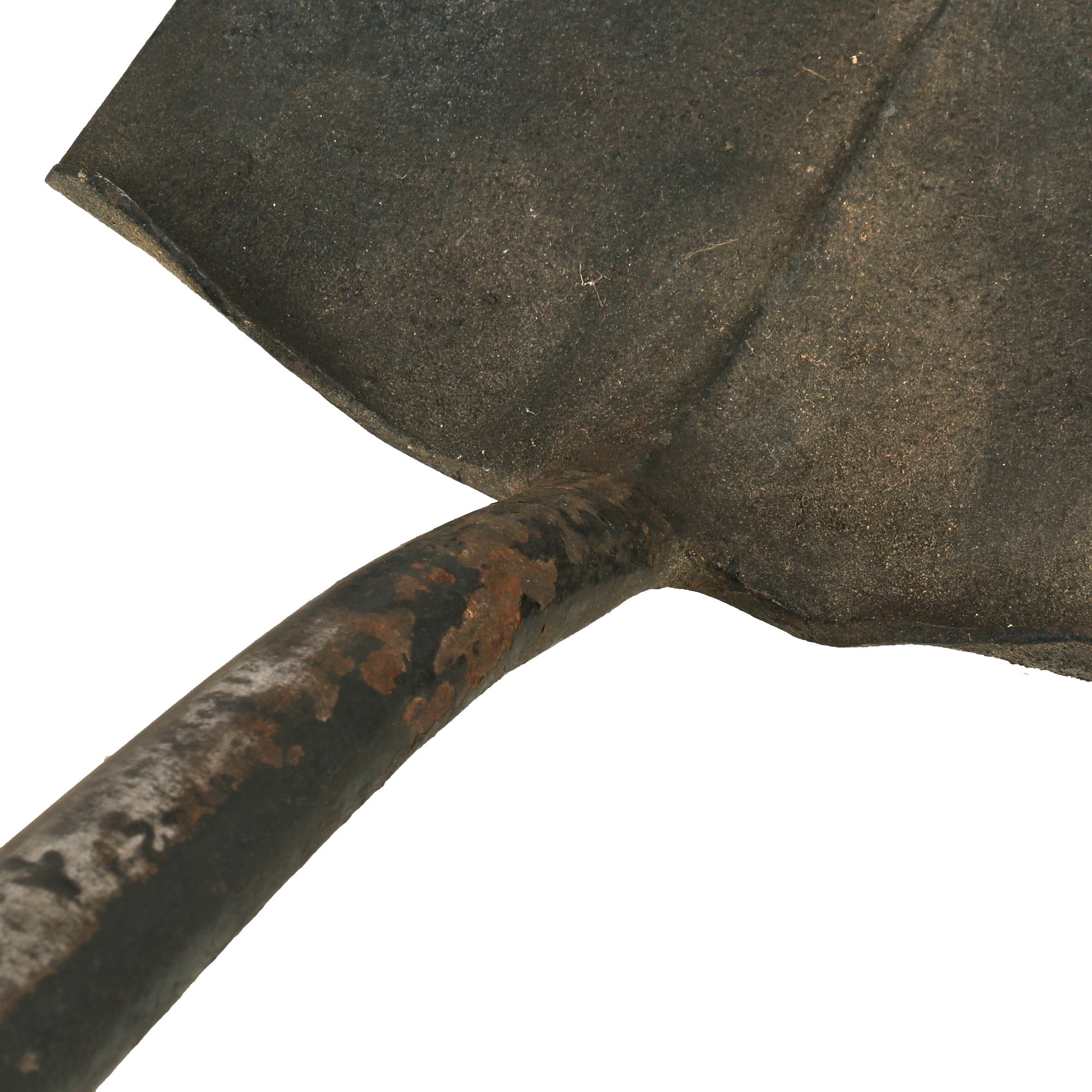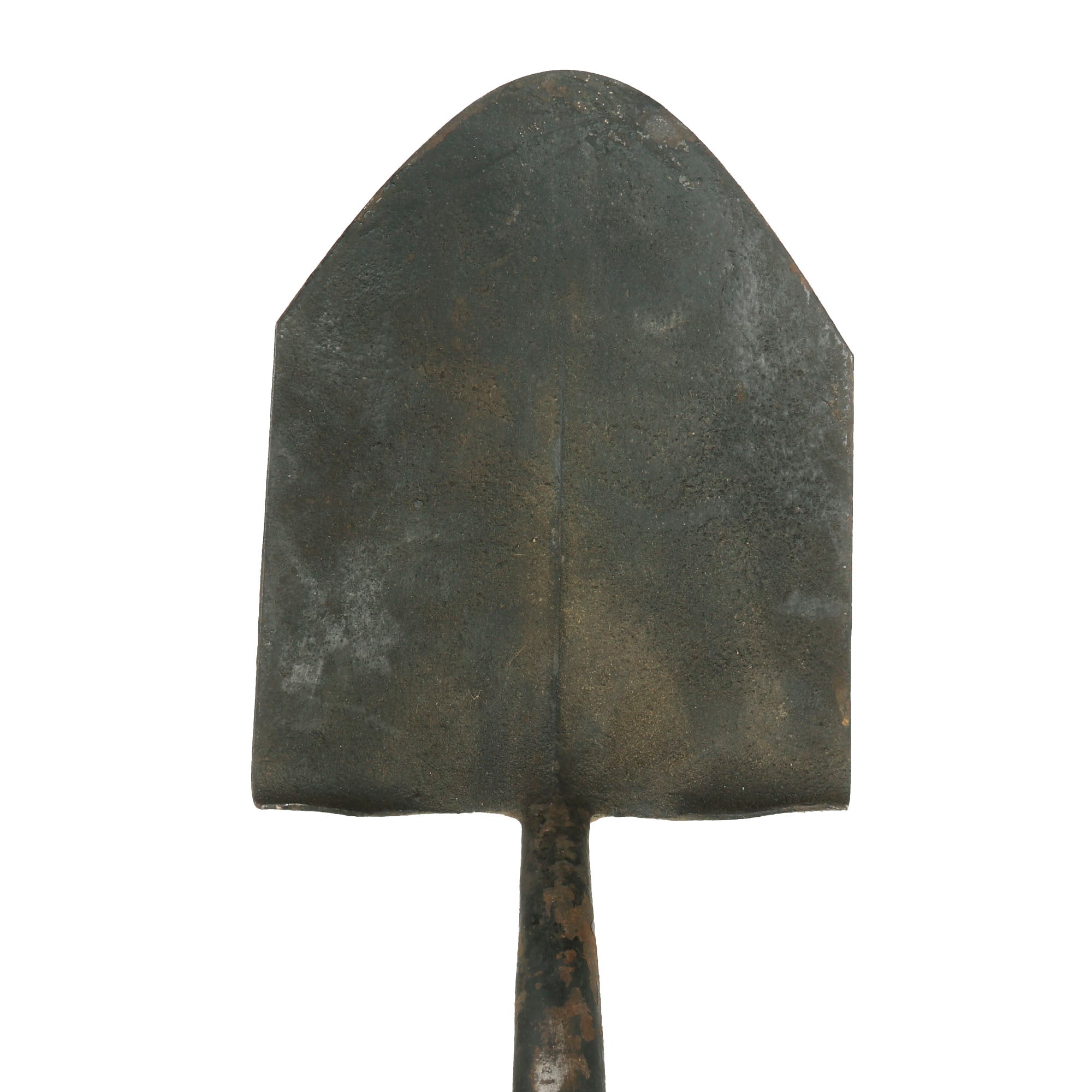 The shovel is roughly 37 inches long, with a shovel blade that is roughly 8 inches wide. A great piece for any WWII kit. Comes ready for further research and display.
