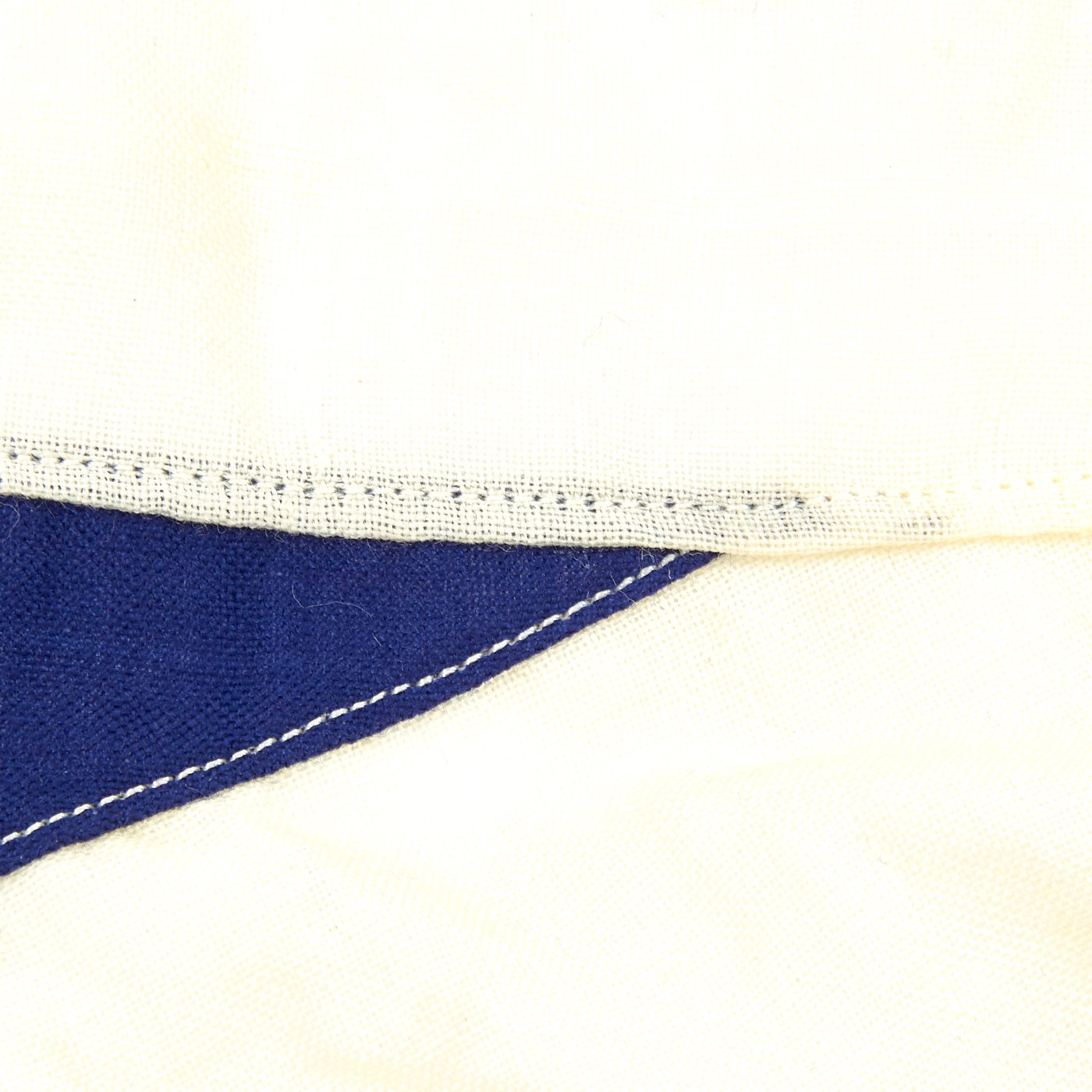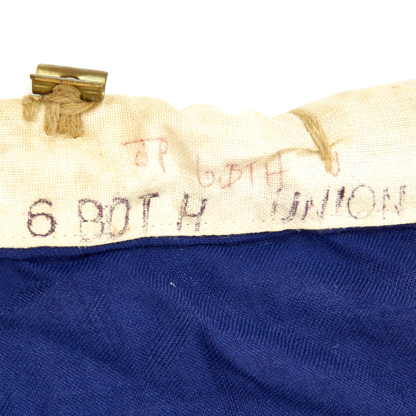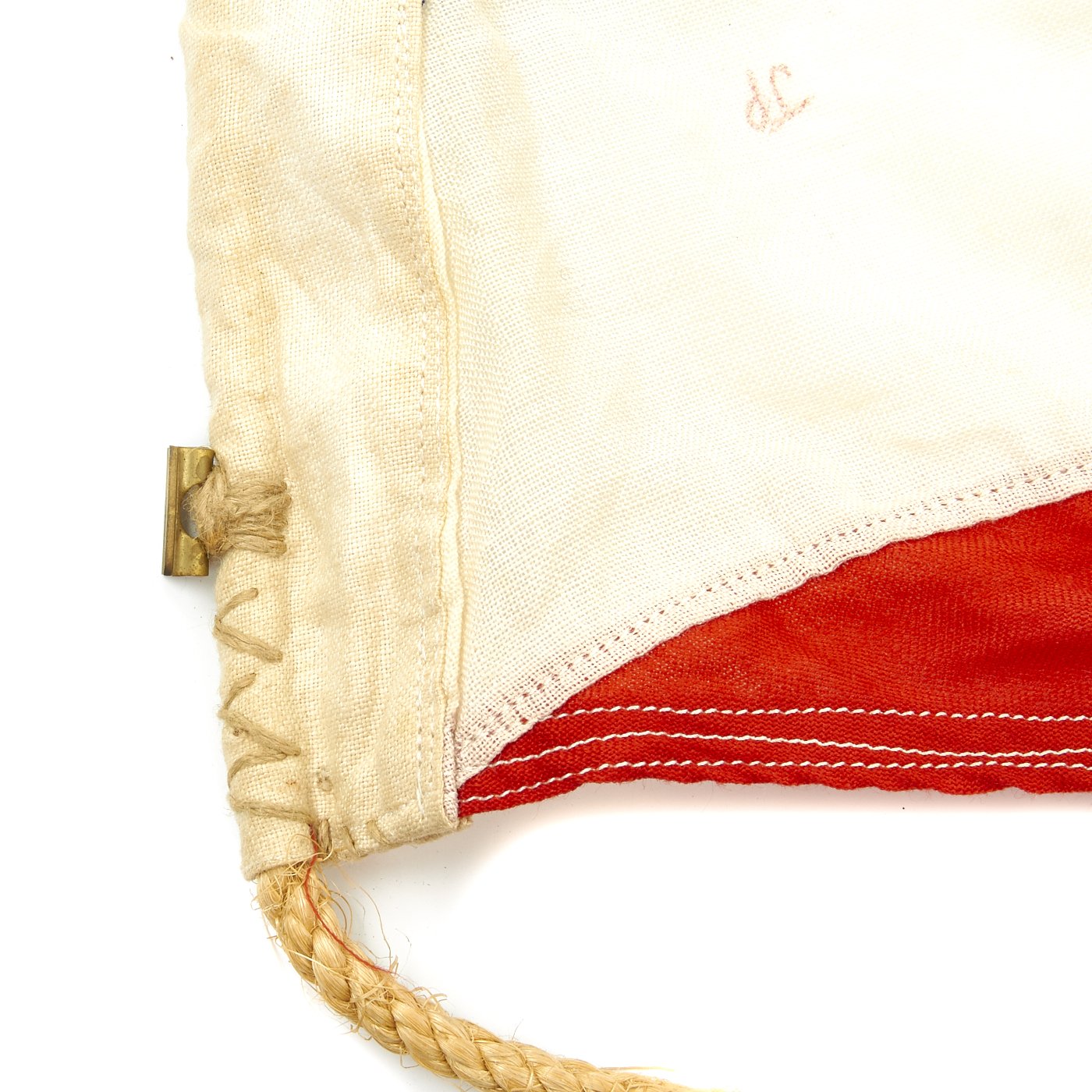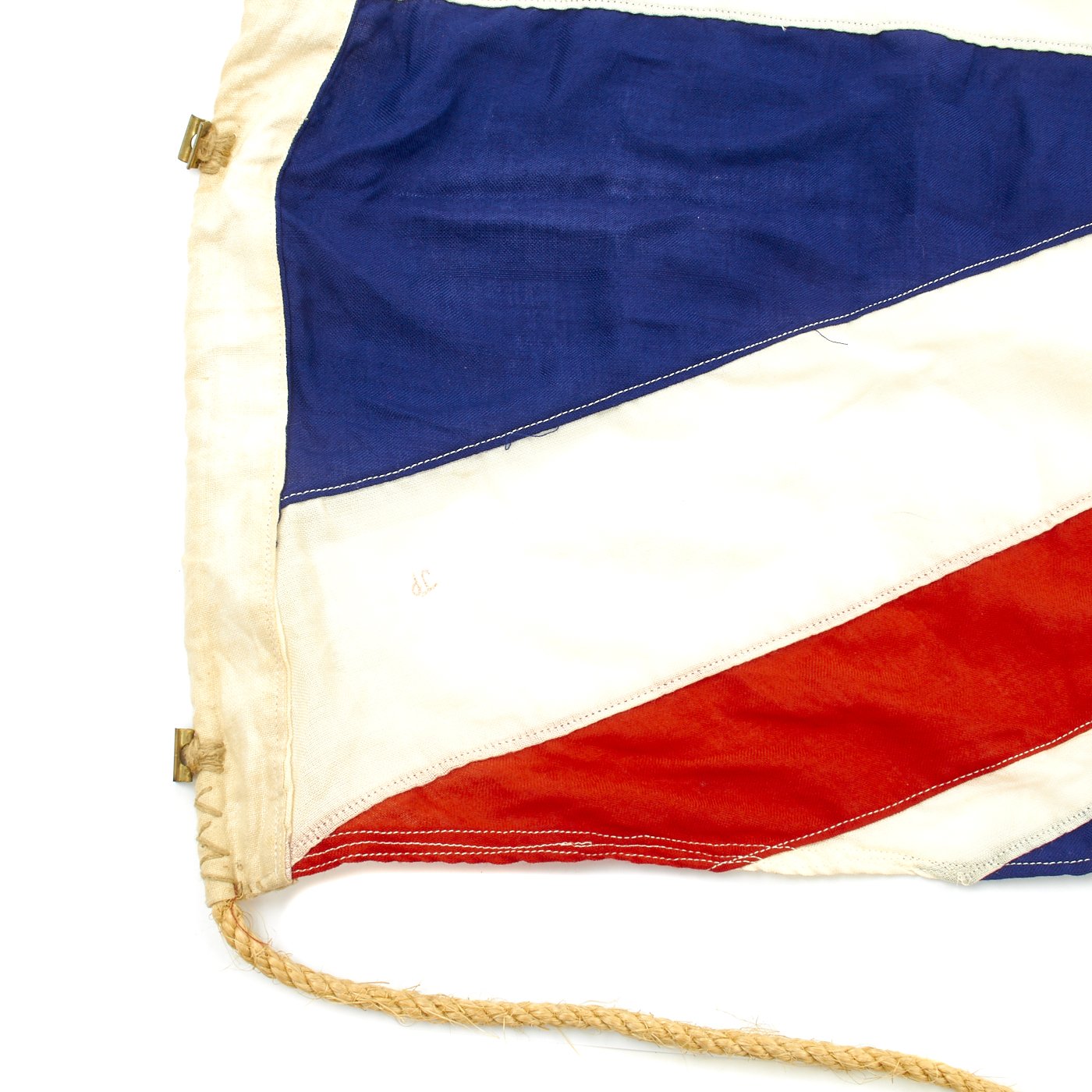 - Original Item: Only One Available. This is a very nice Original British World War Two or Post War Union Jack Flag, measuring approximately 52" x 108". The flag is free of moth and other damage thought it is flecked with some small nips and minor staining which is consistent with age and use. It is constructed of wool bunting. The wool flag in red, white, and blue, with brass clips up the luff, the luff stenciled Union 5714520 and 6 BOT H. The flag weighted at end of luff. A great display piece for an empty wall!