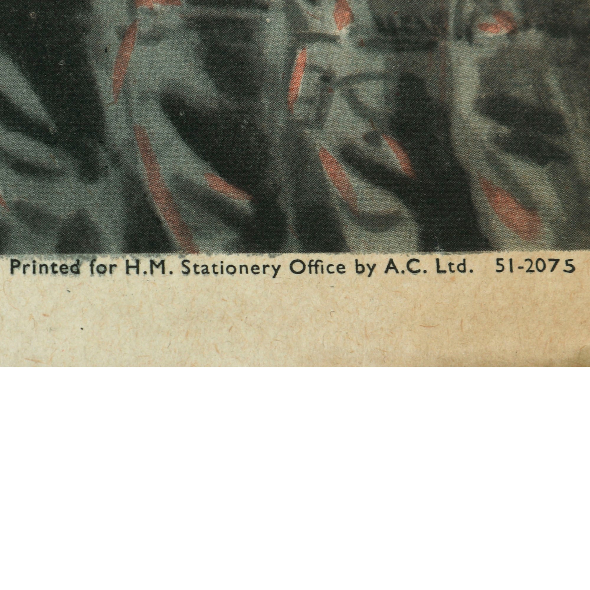 This is a very scarce example of a British WWII Enlistment poster for the ATS. The poster depicts a member in full uniform marching forward in front of a formation of British soldiers. It reads YOU are wanted too! Join the A.T.S. The poster measures 20 x 30” and is marked at the bottom with Printed for H.M. Stationary Office by A.C. Ltd. 51-2075.
