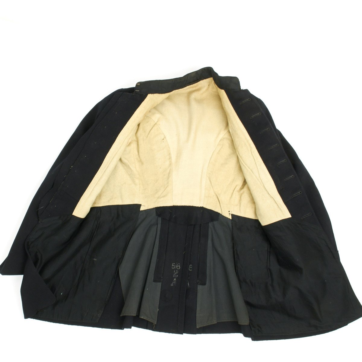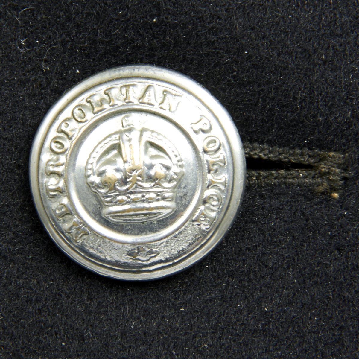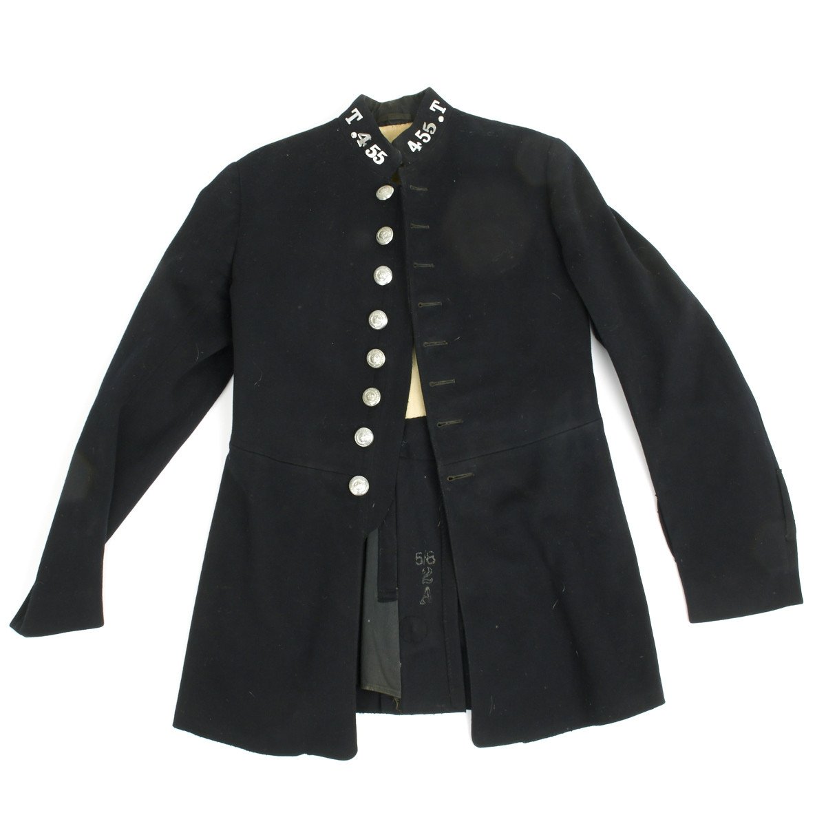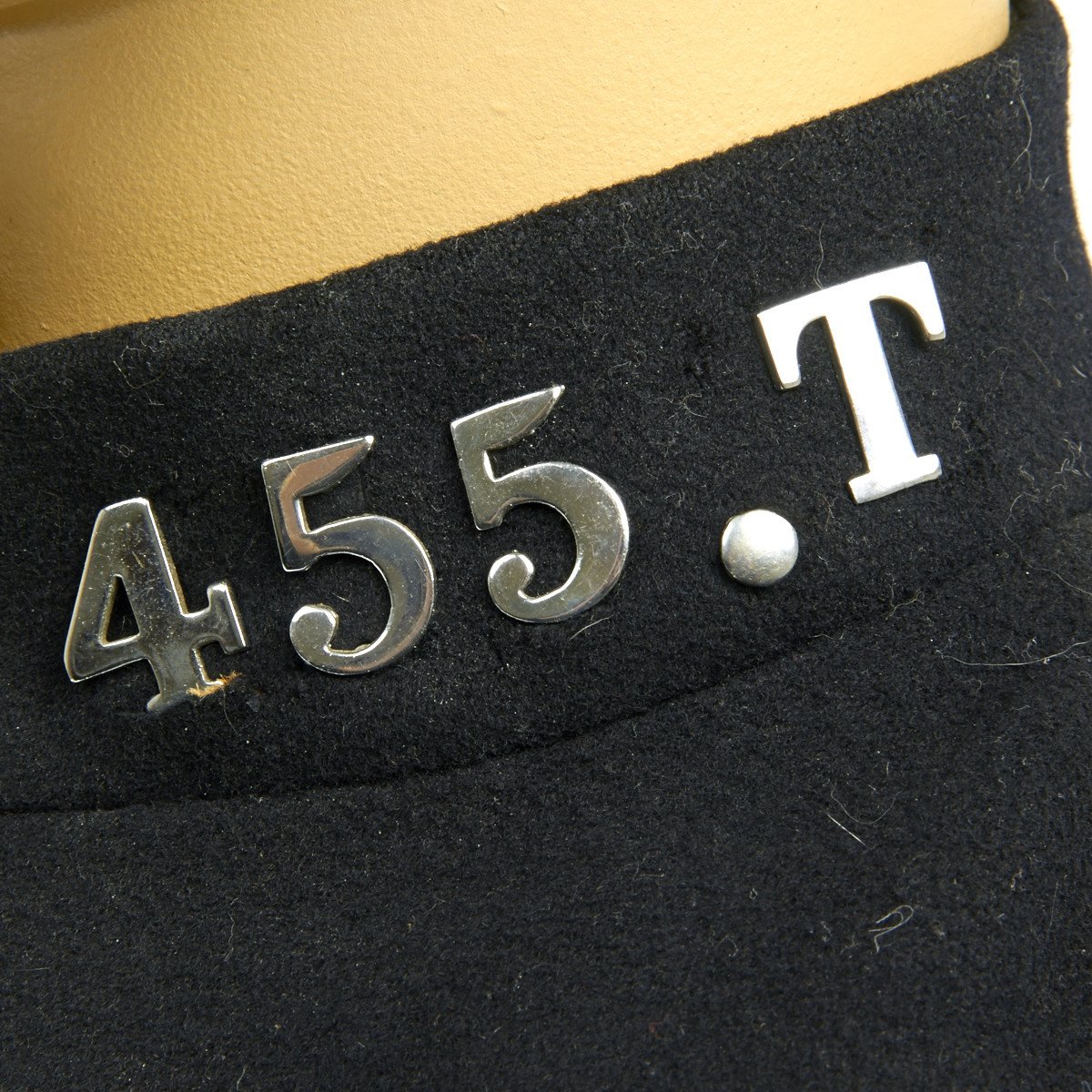 Original Items: Only One Set Available. As seen in all the BLITZ newsreel scenes this is an original British WW2 Police Bobby uniform set consisting of high collar, buttons to the throat, dark blue tunic with correct King's Crown buttons for King George VI marked "Metropolitan Police". The military high standing collar bearings the officer’s service number: T.455. Tunic comes complete with wide leather waist belt.