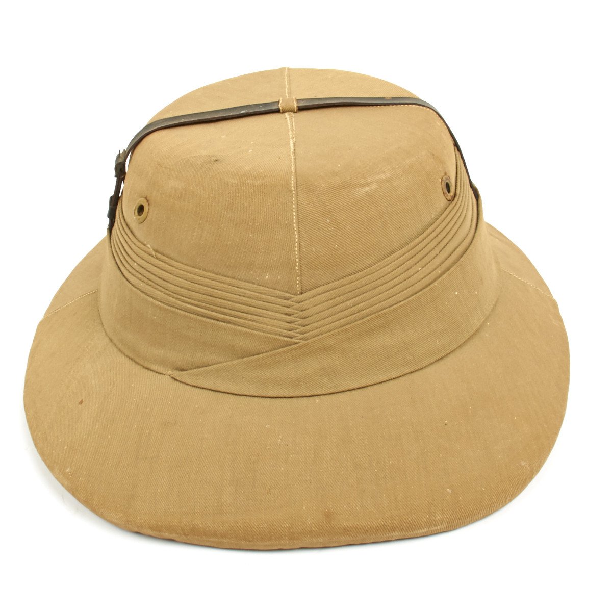 Original Item: Only One Available. Developed for WW2 this is a cork pith helmet with a most wonderful maker's label inside the crown that reads: