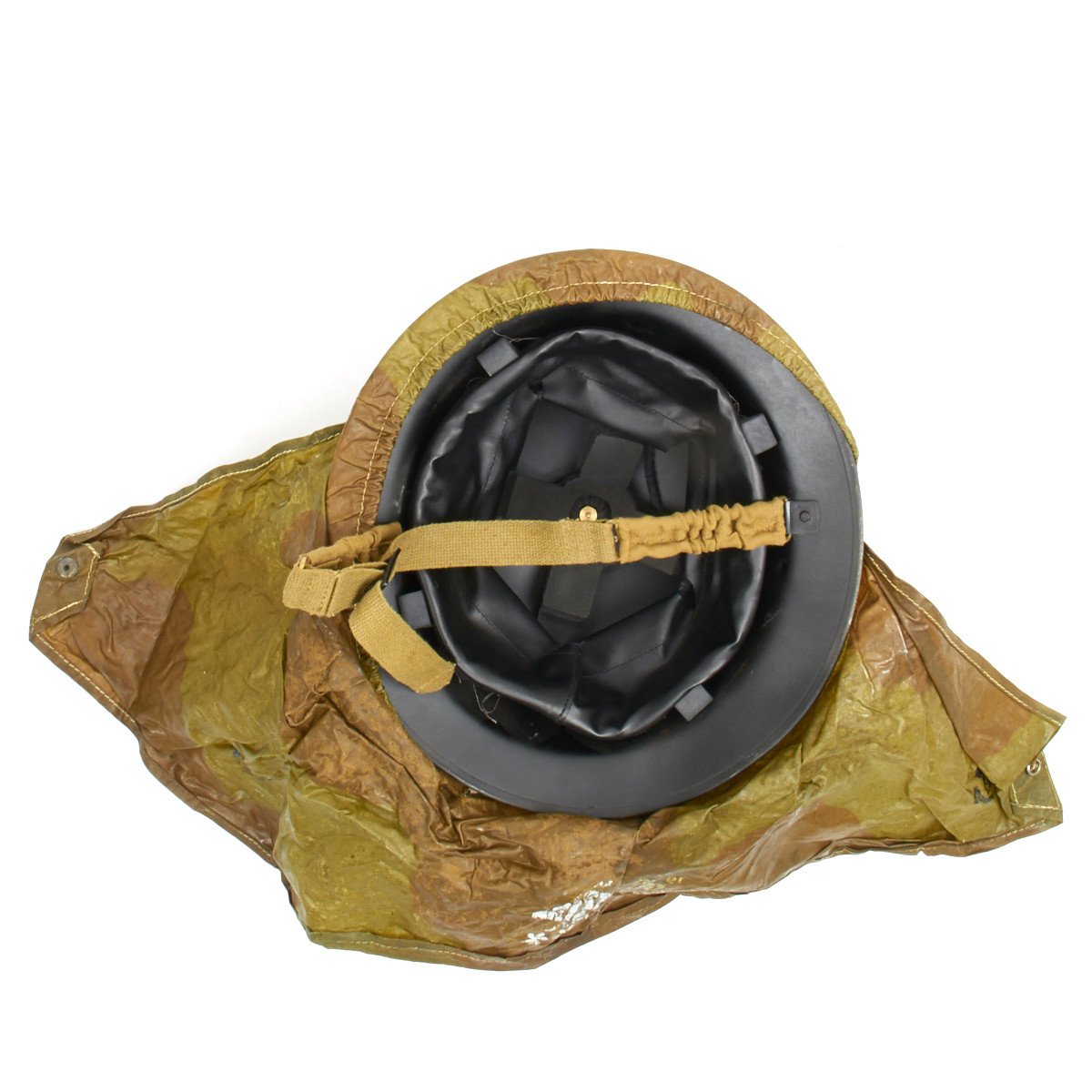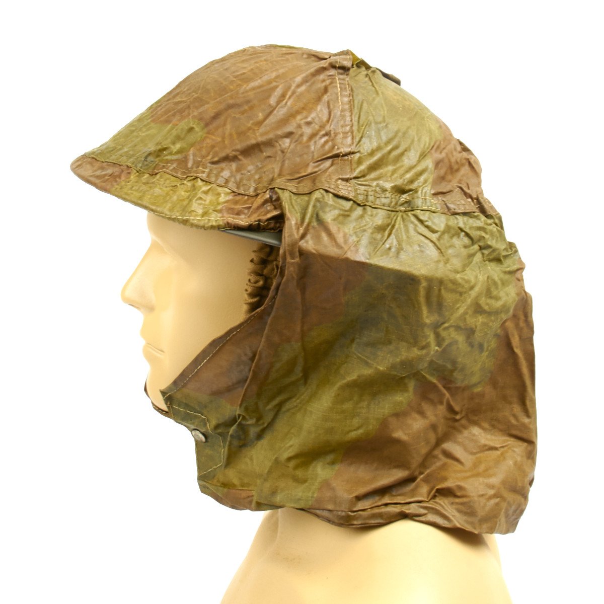 Original Item: Actually made in Canada during WW2, these Tommy Helmet covers are marked with Maker's name and date. Each is manufactured from, what would almost appear to be Oil Cloth, these are "elastic" edged helmet covers with Havelocks (Neck Guards).