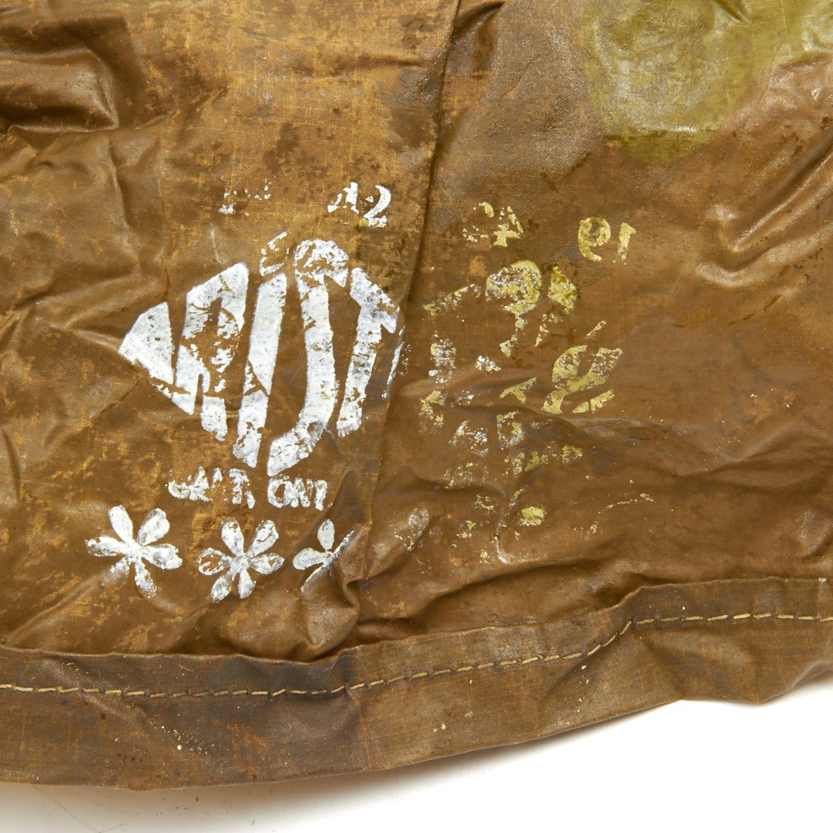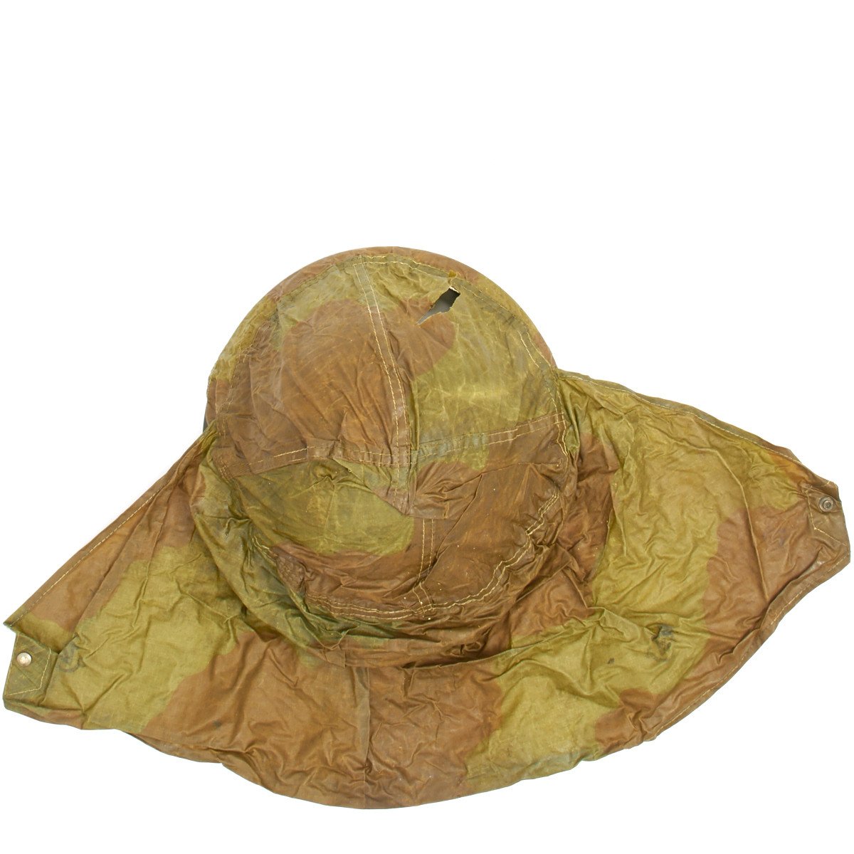 These are exceptionally rare and VERY FRAGILE after 65+ years of storage, as most were un-issued and are being unfolded by IMA for the very first time. Each Cover must be soaked in very warm water (below boiling) to soften to hardened finish prior to helmet installation. Water repellant so these were a welcome accessory in bad weather, sadly very few survived the war. IMA inspects every cover prior to shipment and will not knowingly ship and damaged cover, however, some very minor tears may still be present as they can be hard to detect.