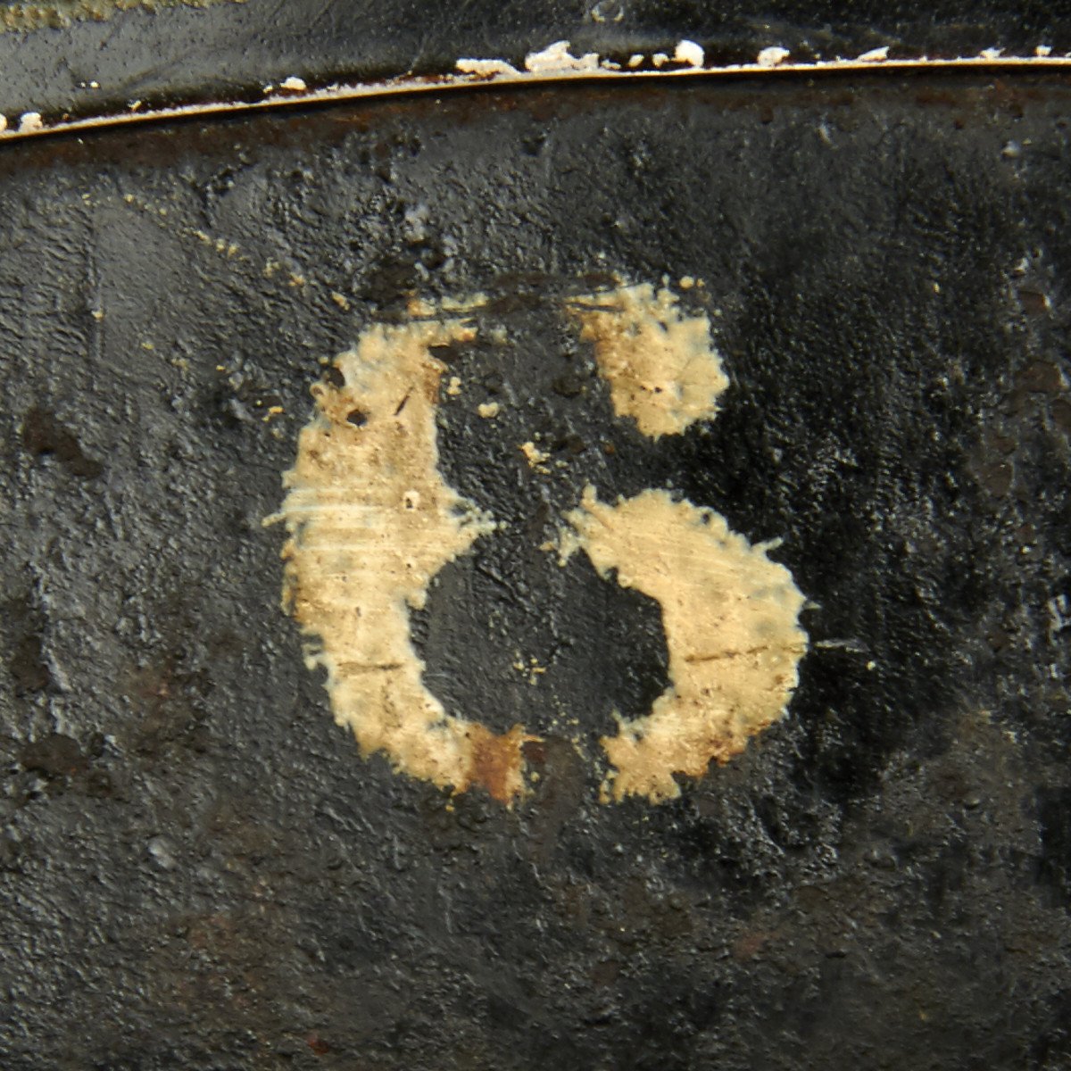 The paint is 100% original. This is an excellent condition, complete, original, WW2, painted steel 'Tommy' helmet. It has it's original black oil cloth liner with adjustment cord and sprung webbing chinstrap all of which are completely intact.
