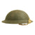 History of the MkI Brodie helmet: The Brodie helmet, called Helmet, steel, Mark I helmet in Britain and the M1917 Helmet in the U.S., is a steel combat helmet designed and patented in 1915 by Englishman John Leopold Brodie. Colloquially, it was called the shrapnel helmet, Tommy helmet, Tin Hat, and in the United States the doughboy helmet. Worn by Australians during WW2 and sometimes known as 'Panic Hat'. It was also known as the dishpan hat, tin pan hat, washbasin, battle bowler (when worn by officers), and Kelly helmet. The US version, the M1917, was copied from the British Mk 1 steel helmet of 1916. The German Army called it the Salatschüssel (salad bowl).
