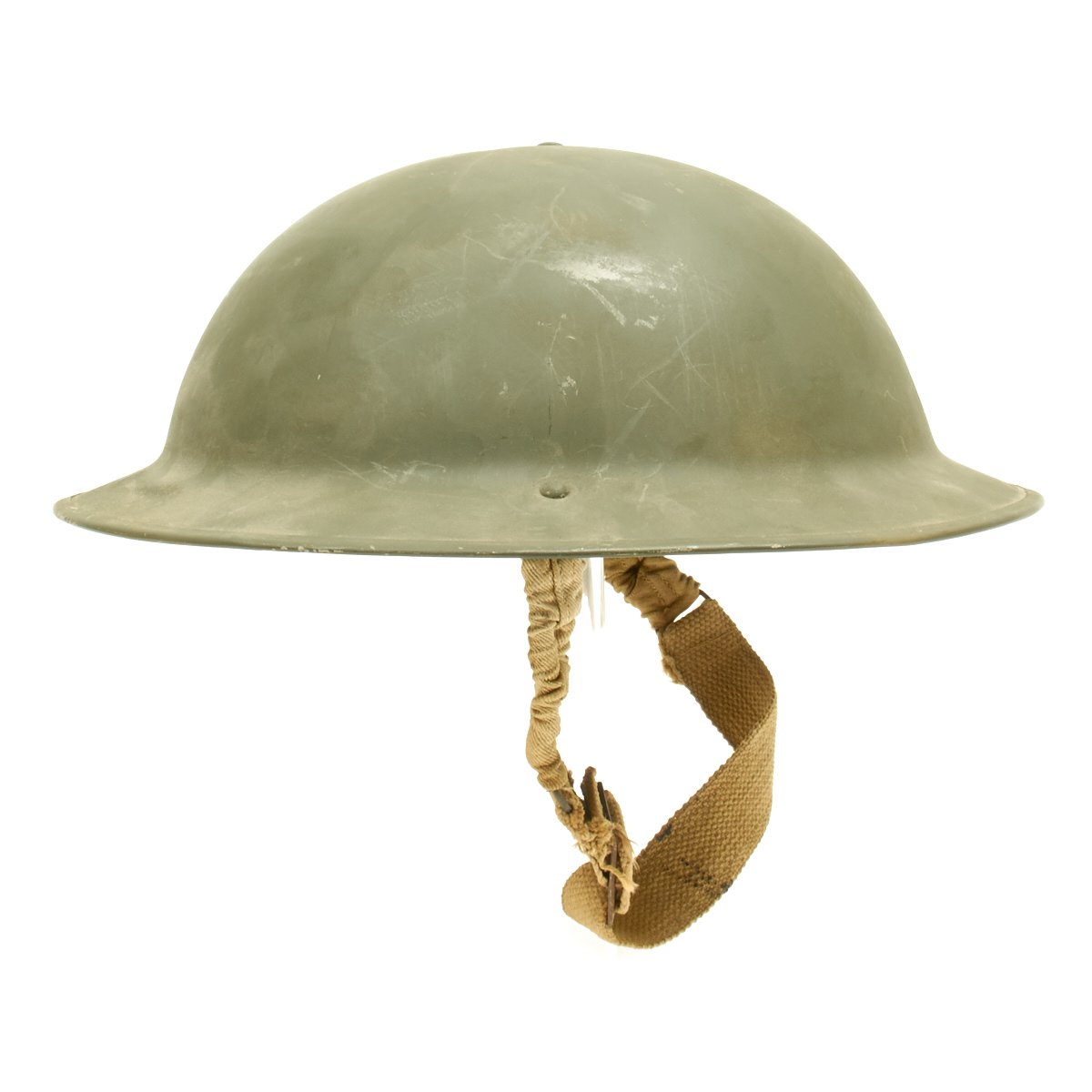 Original Item: Only One Available. This is an exceptional example of a genuine British - "Brodie" Mark II steel helmet that is dated 1942 on the shell, and 1943 on the liner. The stamping on the underside of the rim reads: