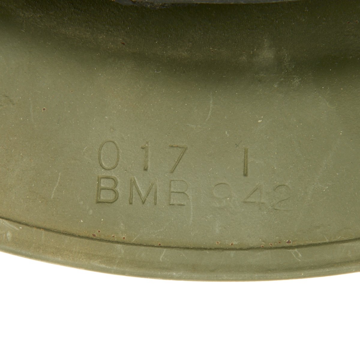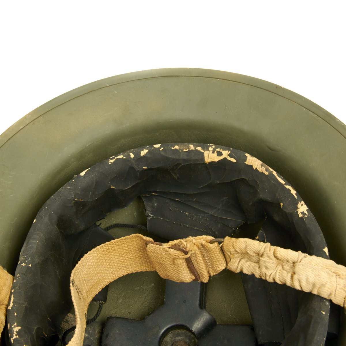 B.M.B. stands for Briggs Motor Bodies Ltd., who produced Brodie helmets during the war from 1939 to 1943. The paint appears to be in very good condition, though it does look to have been field repainted once. Shell is overall in great shape with no major issues. The original liner is in good condition and is marked on one of the main supports: