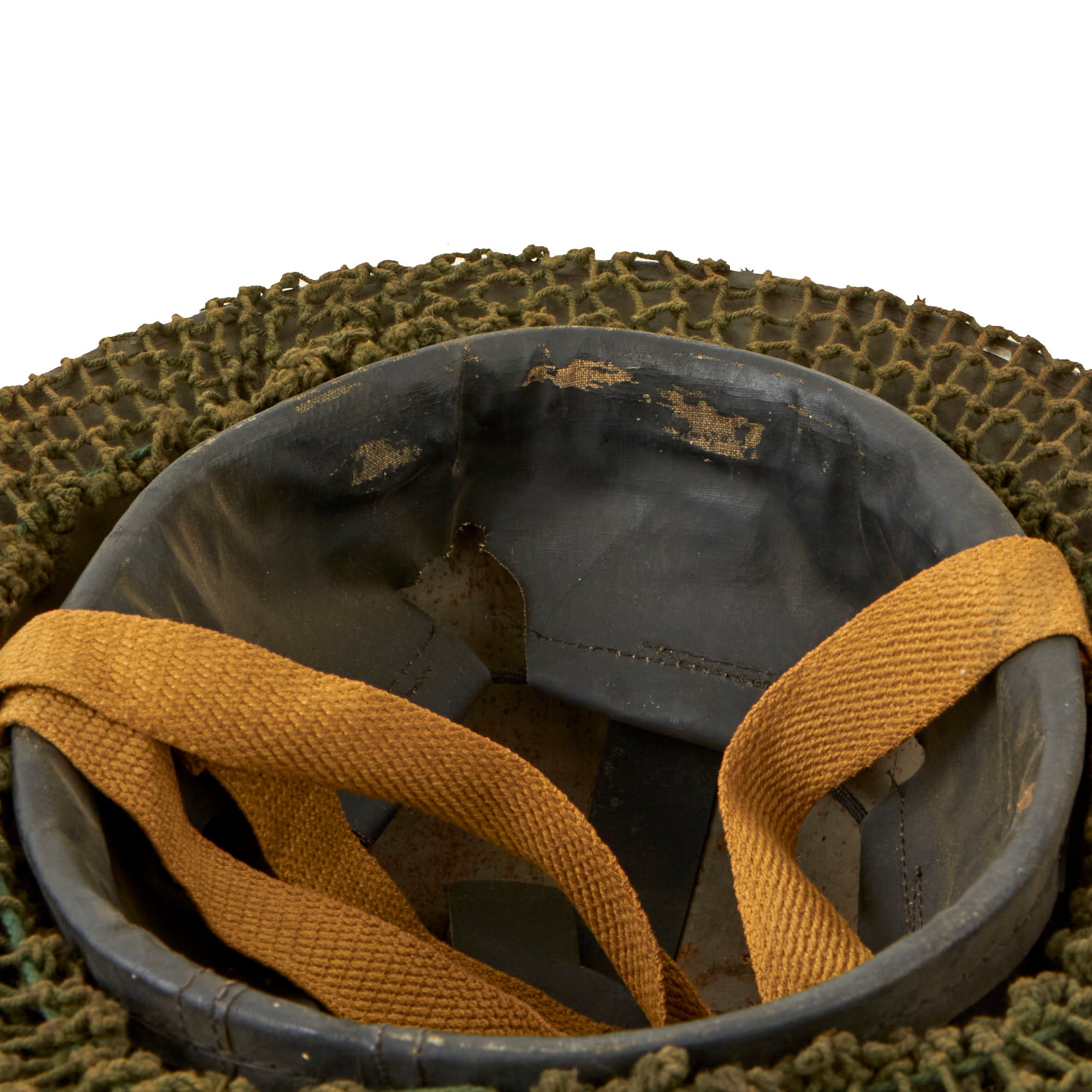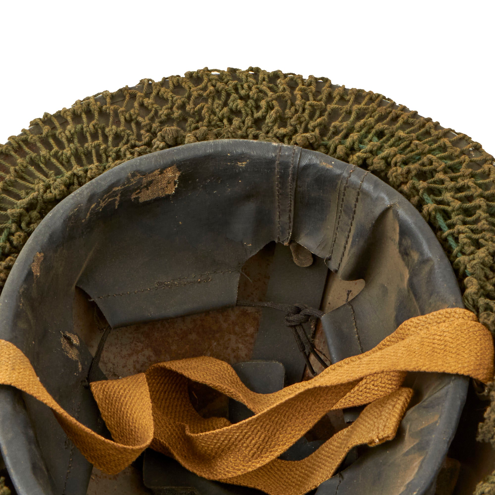 The original liner is in very good used condition, with nice oil cloth, and only light wear from service. The oil cloth has however become a bit delicate over the decades, which is common. We were not able to find a maker mark or date, but it has a clear 7 ¼ size marking on one of the support straps