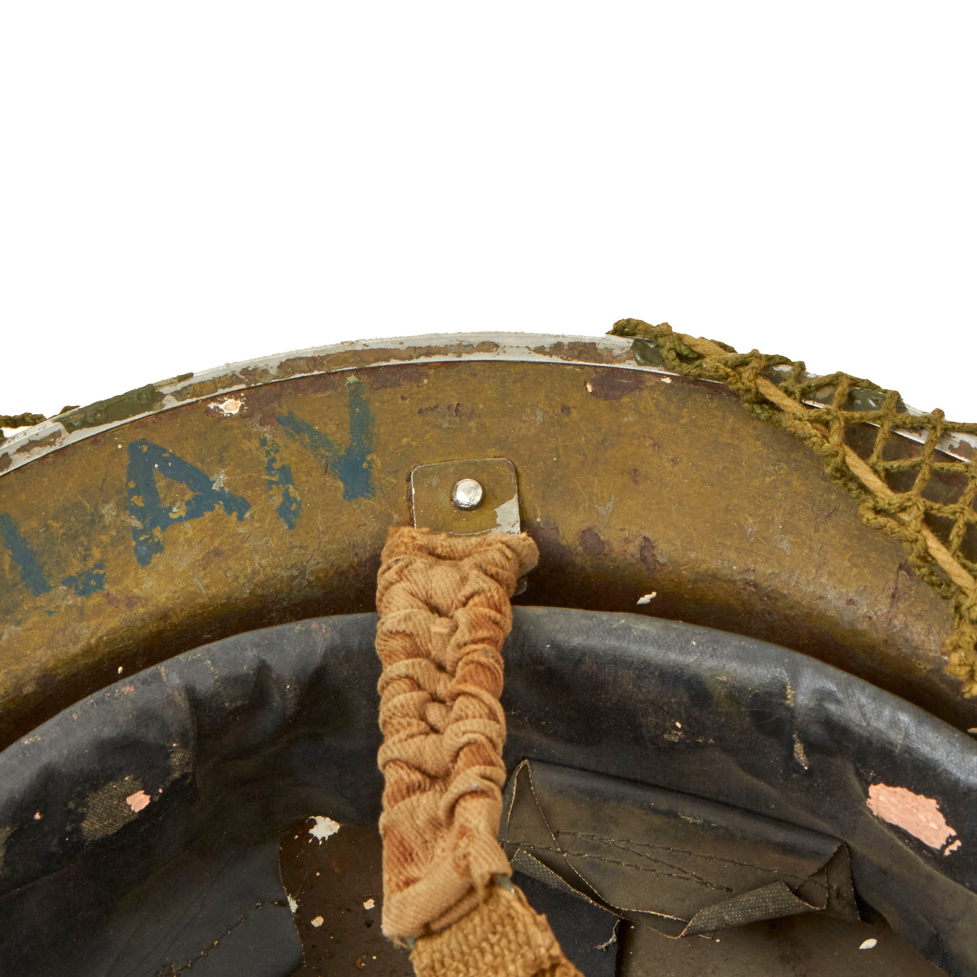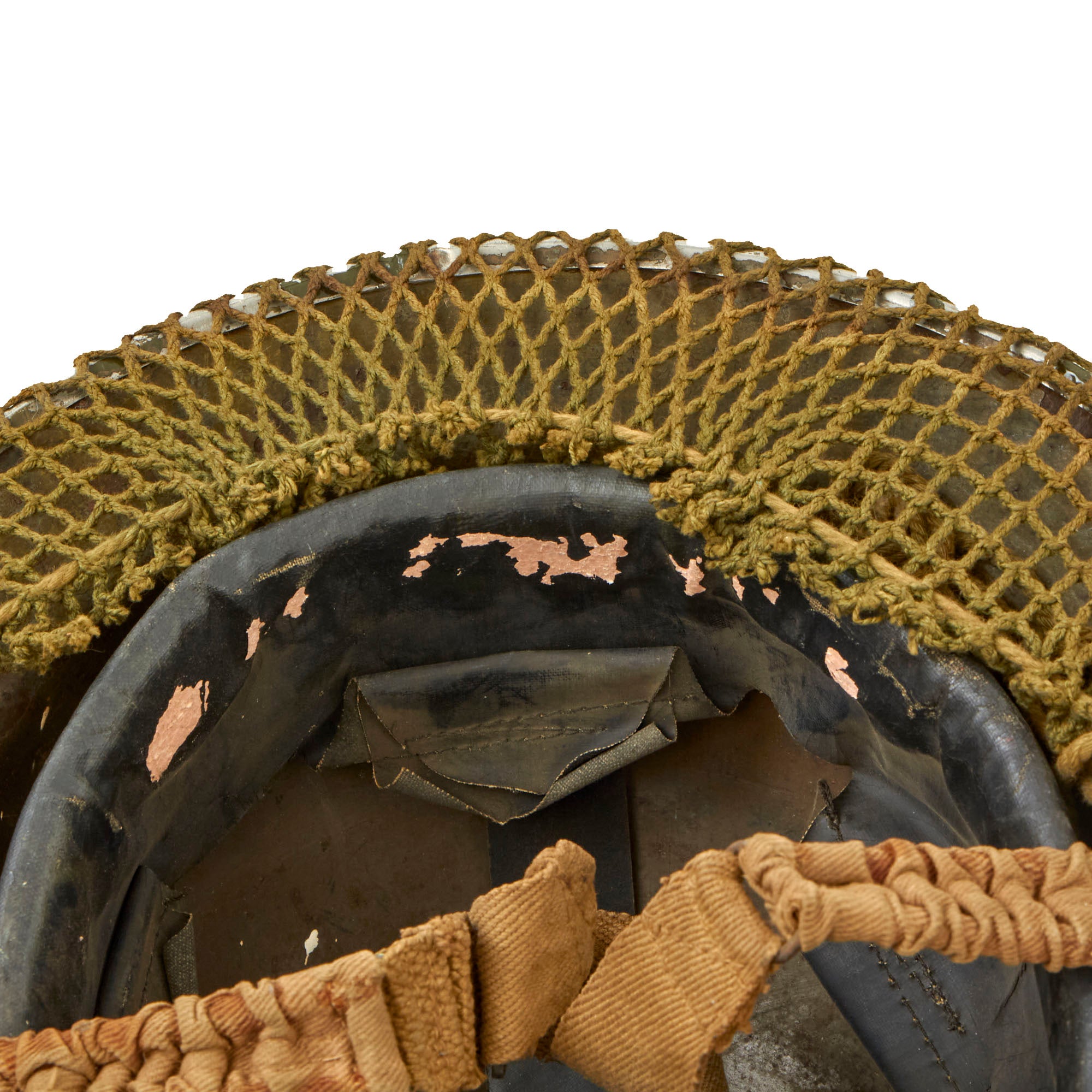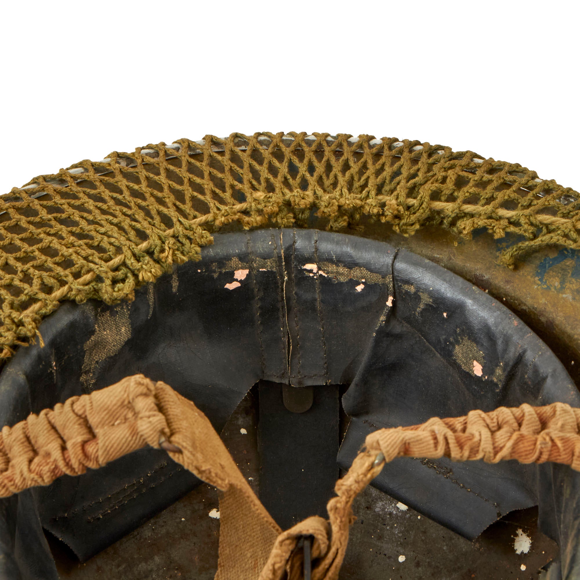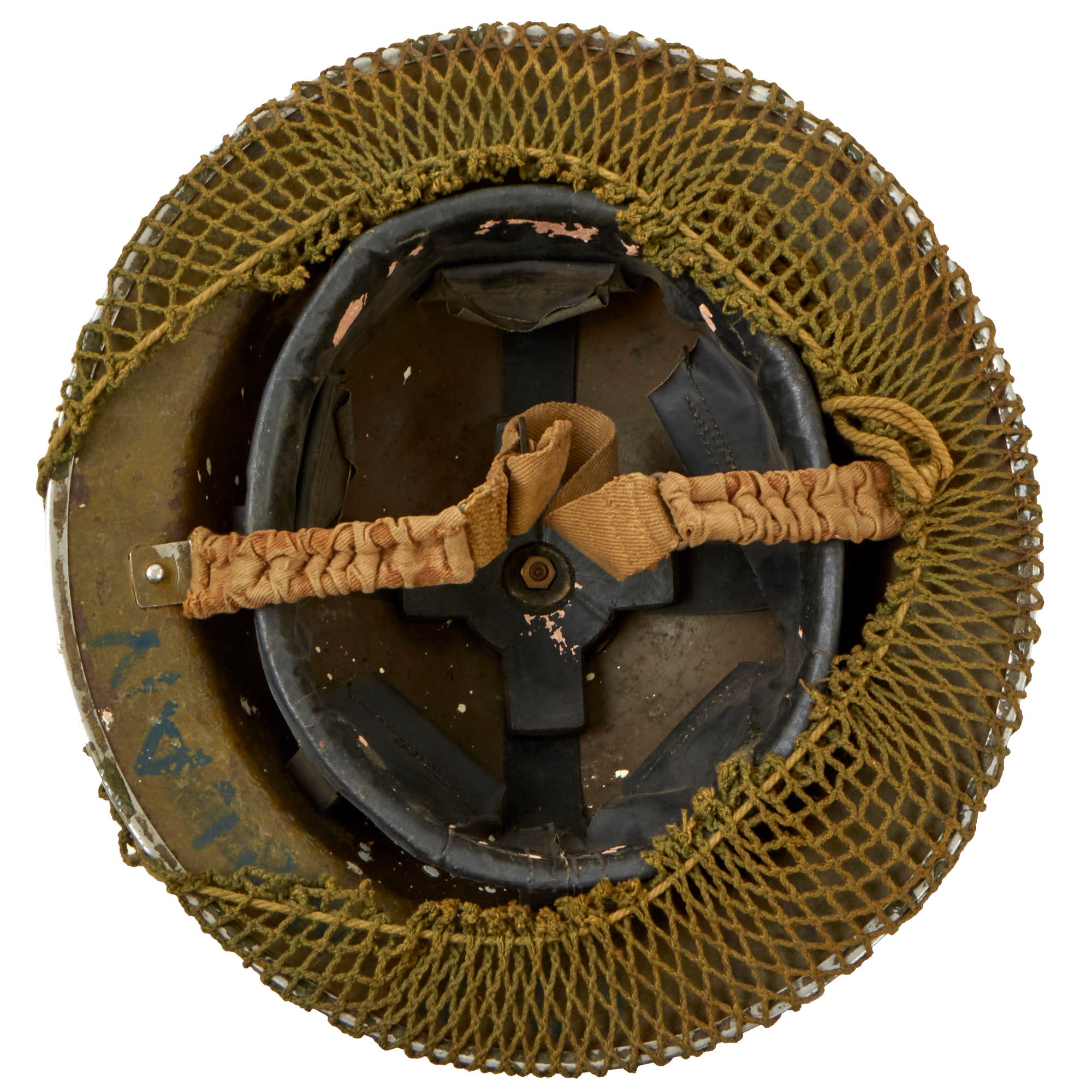 The original liner is in very good used condition, with nice oil cloth, and only light wear from service. We could not find any visible markings on the liner or the helmet.