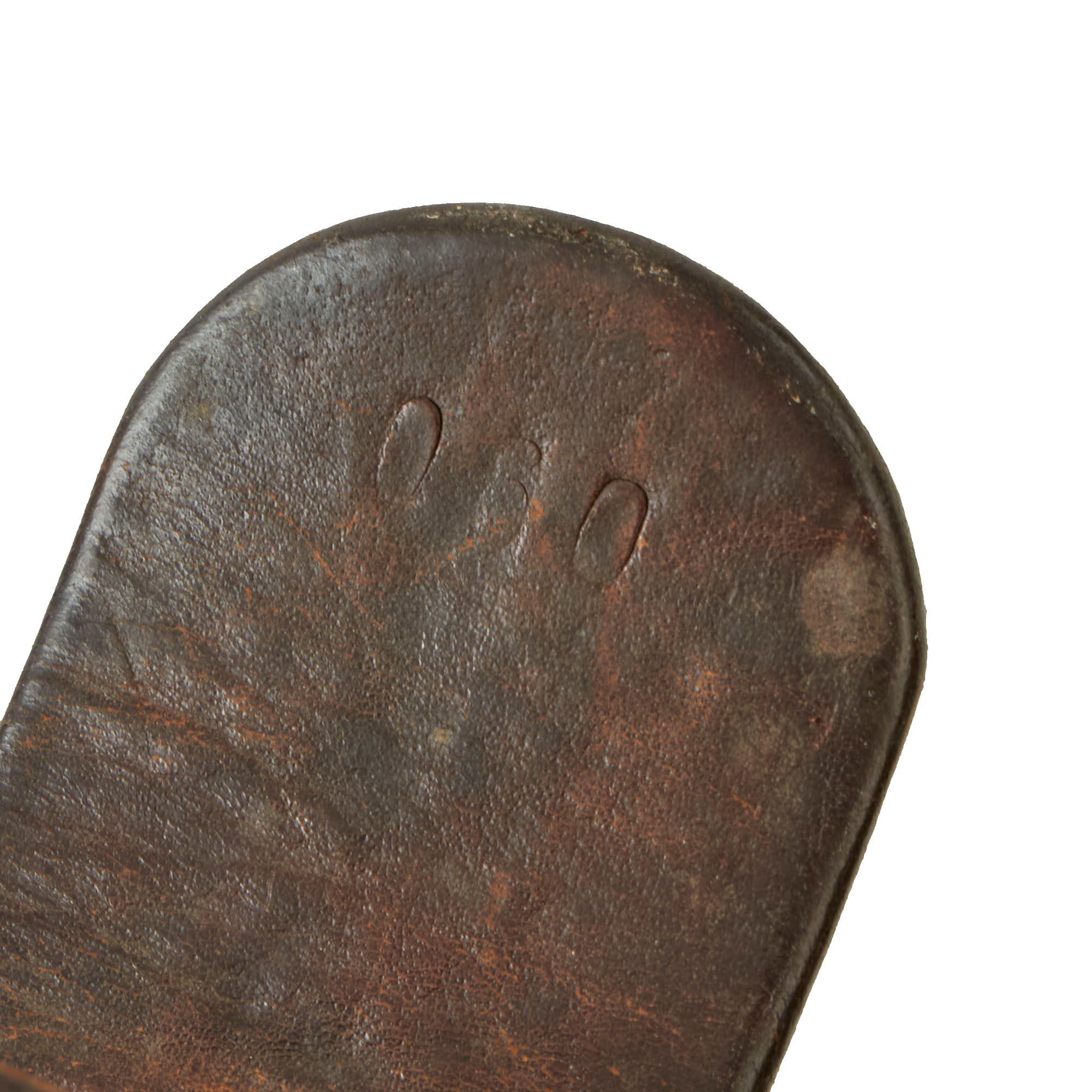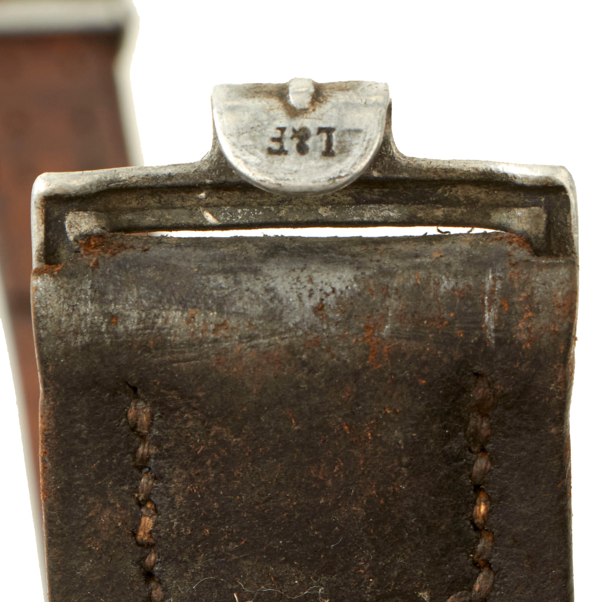 The buckle is a German pebbled Army buckle with the motto, eagle, and swas worn away, with the soldier’s number replacing the motto, and a Union Jack replacing the eagle and swas. The buckle is maker-marked C.T.D. for the firm of Christian Theodor Dicke of Lüdenscheid.