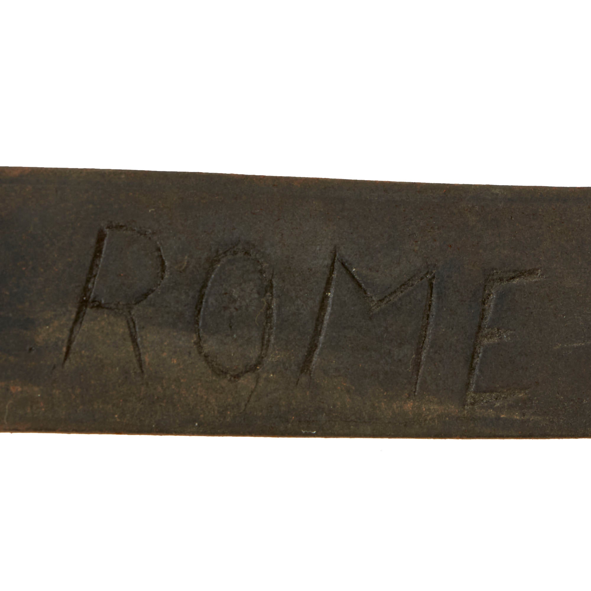 Original Item. Only One Available. This is a fantastic research project for someone - a German belt which has been captured by a British Soldier and carved with a travel journal, with the buckle being modified with a Union Jack and the soldier’s service number, 898798.