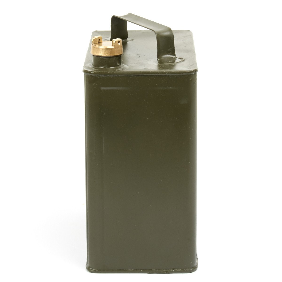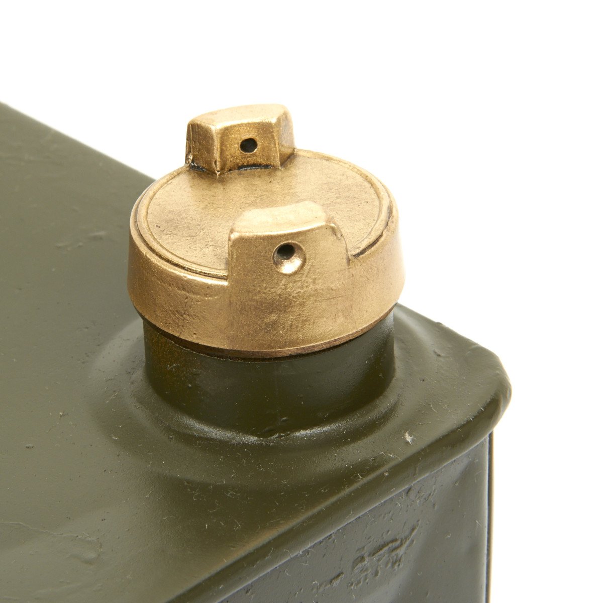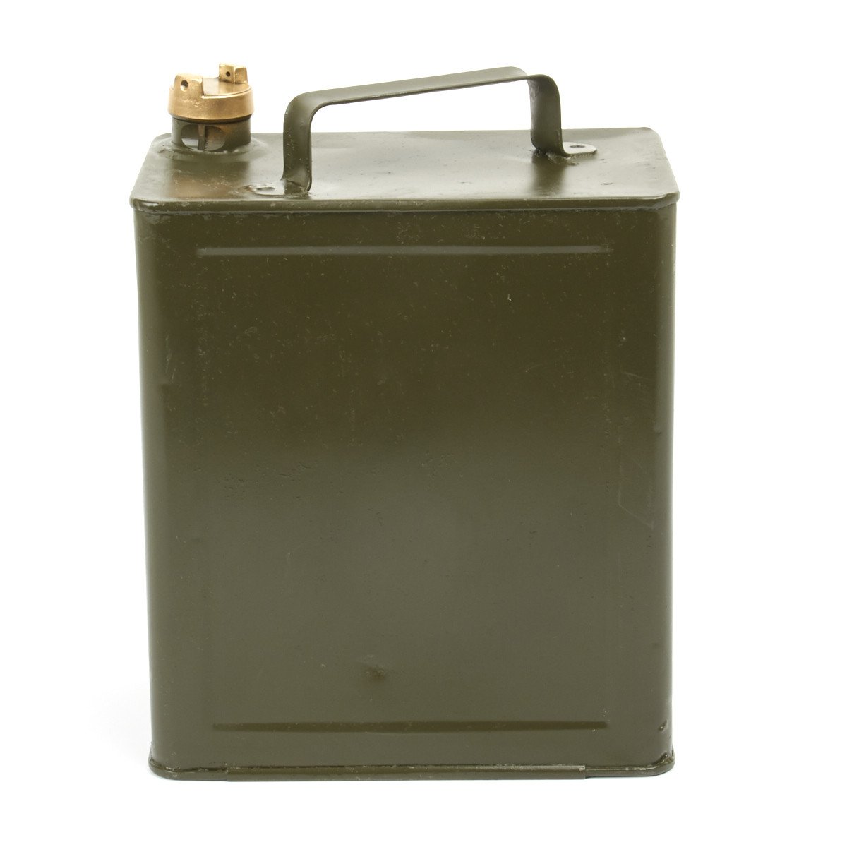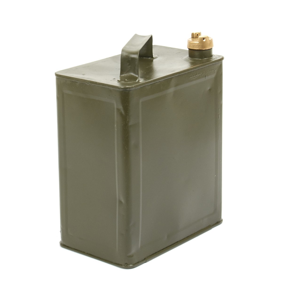 We have only a very few and each has a WW2 date, and are really quite rare as after the war everybody had a good use for another gas can. Each can is equipped with a heavy brass screw cap and a steel carry handle.