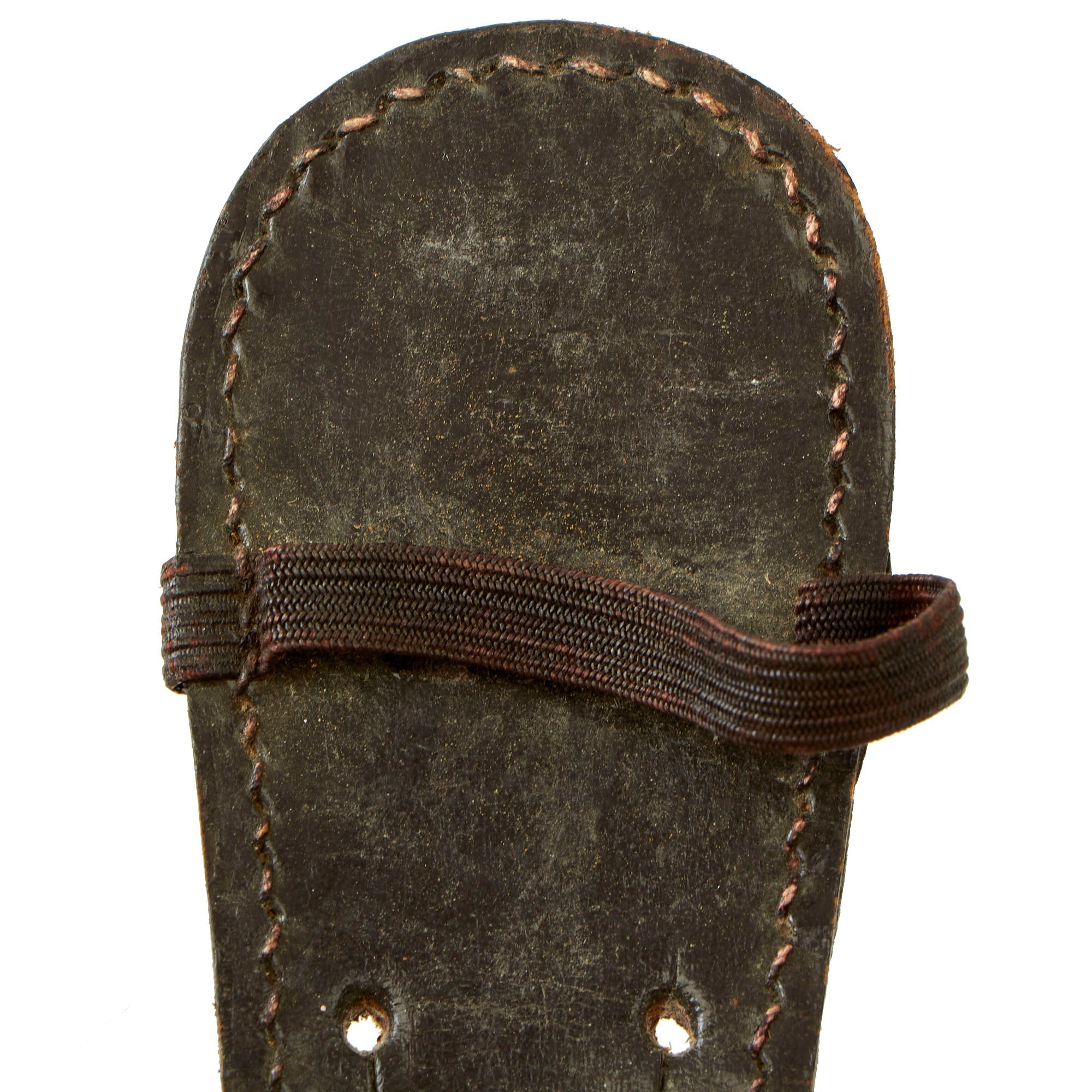 The scabbard is nice, but does show signs of age to the leather, although it is still pliable. From the looks of it, this knife spent most of its life in a scabbard, and saw minimal, if any, use during WWII.