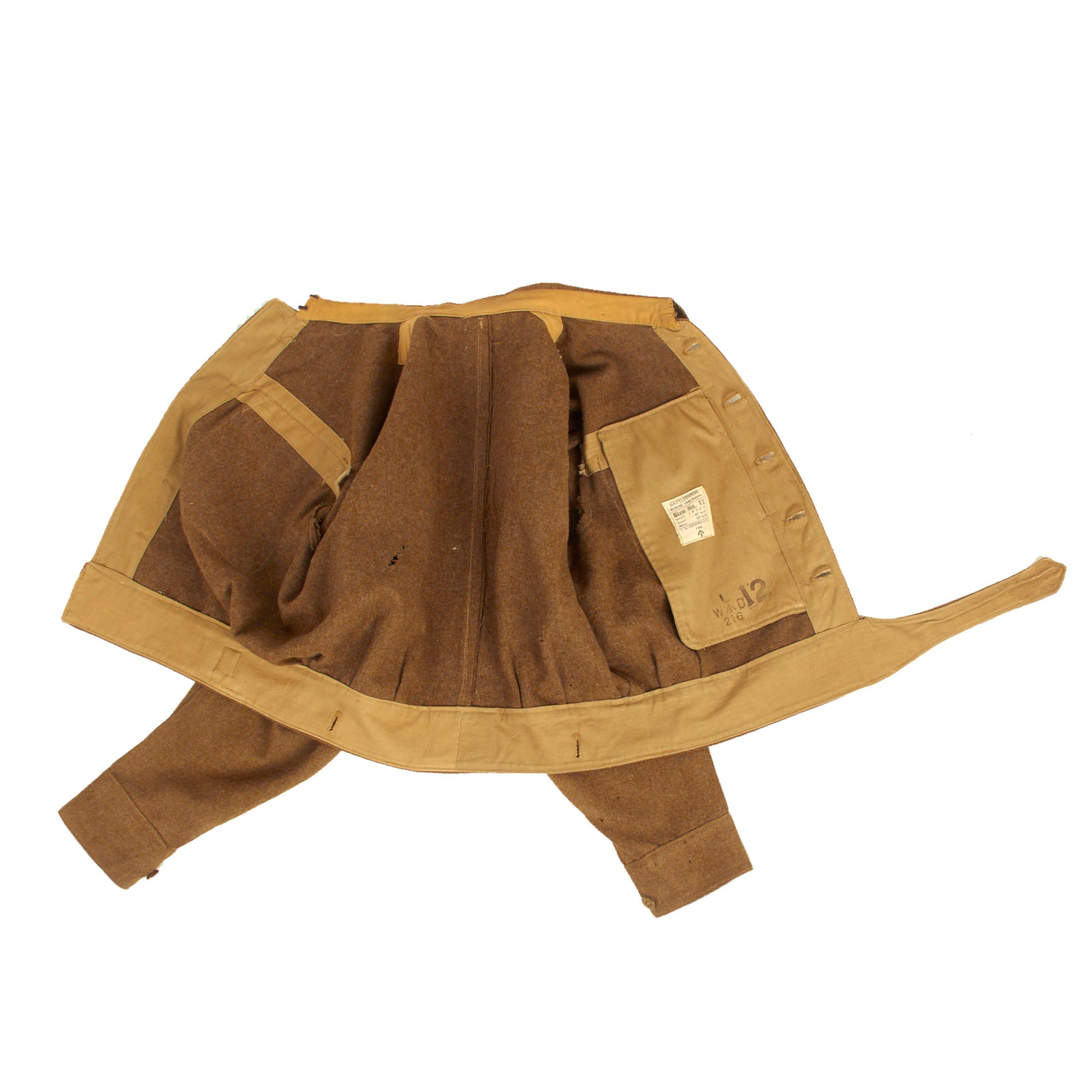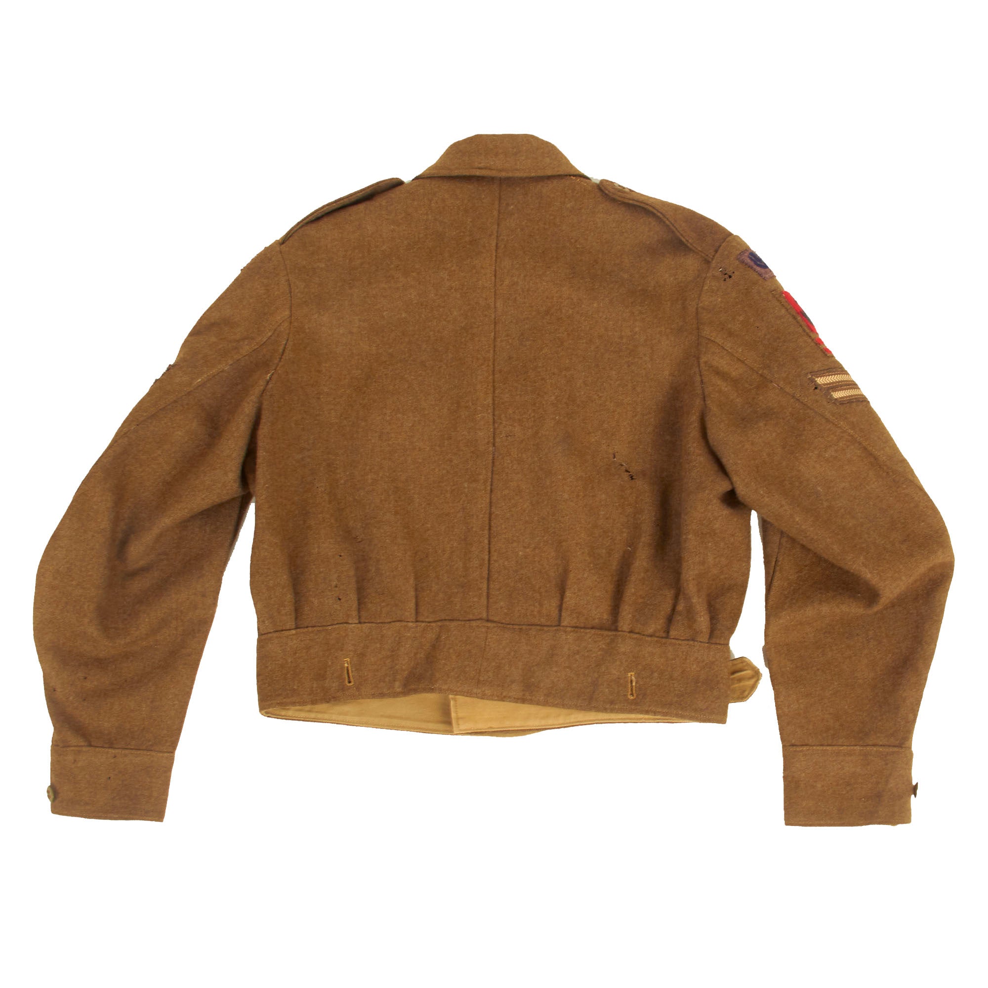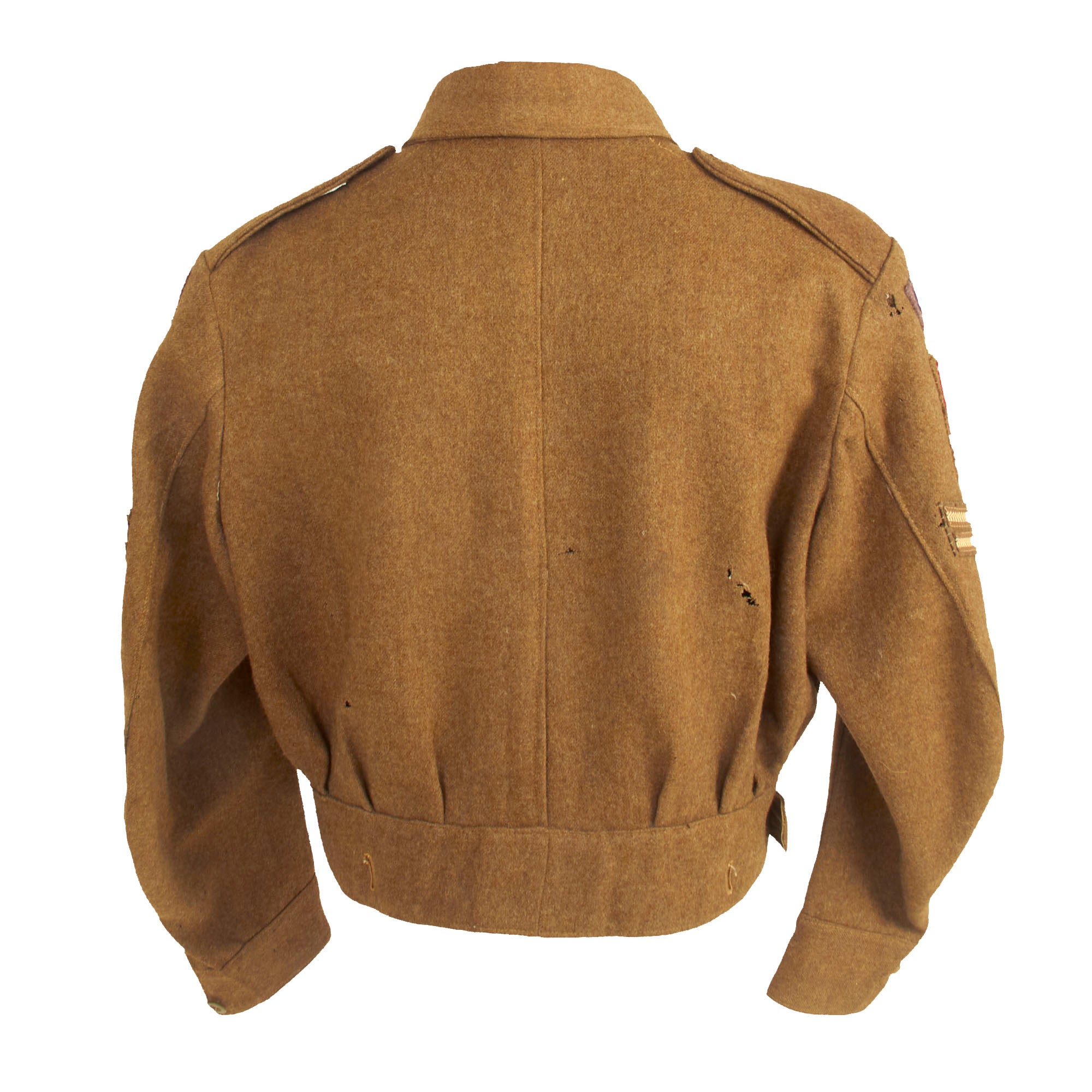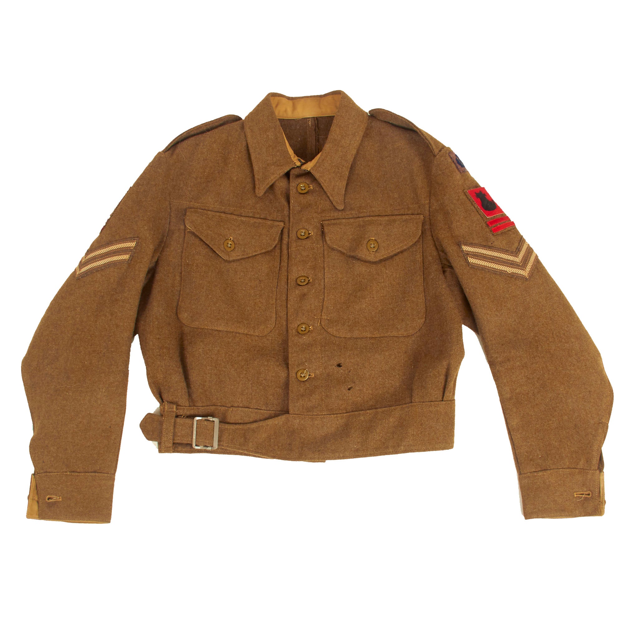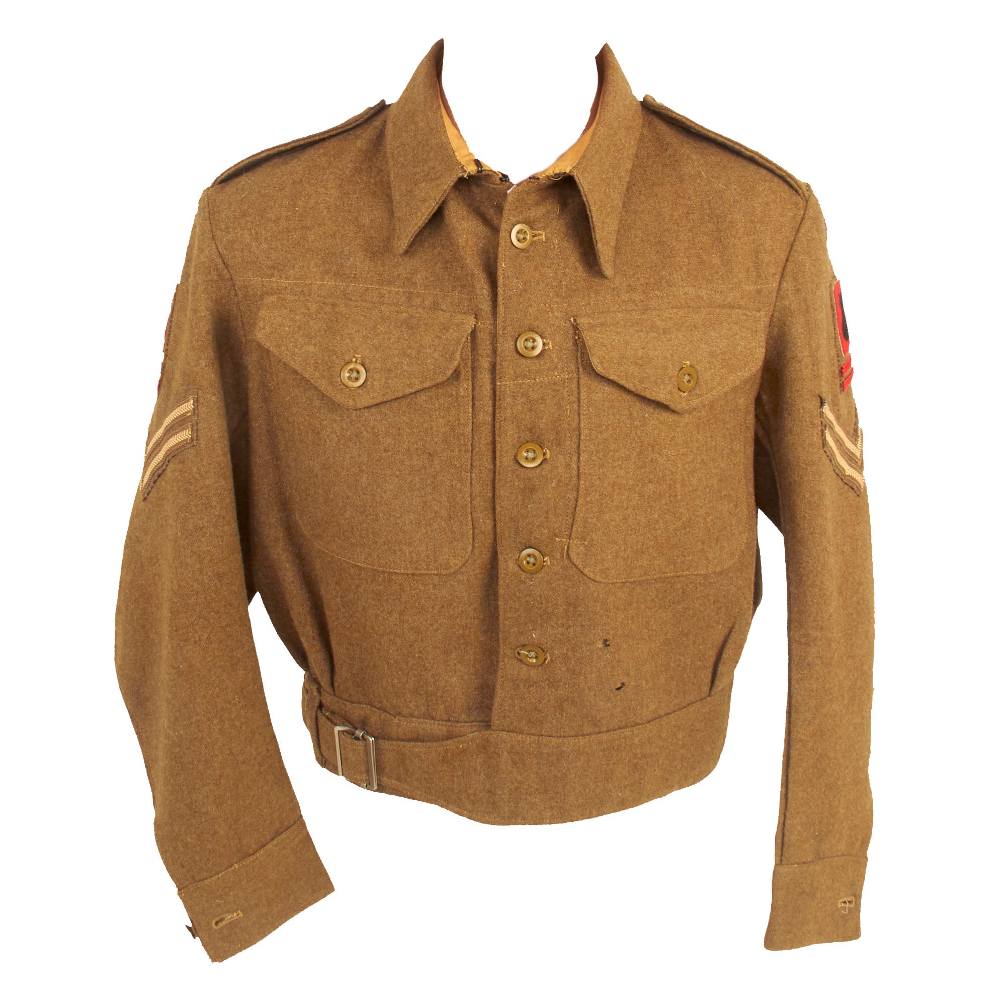 Original Item: Only One Available. Now this is a lovely, near unissued condition example of a British Battledress uniform top. The uniform itself bears lovely, period applied insignia for the 56th London Division. Battledress (BD), later named the No. 5 Uniform, was the combat uniform worn by British Commonwealth and Imperial forces through the Second World War. This jacket is dated 1946.