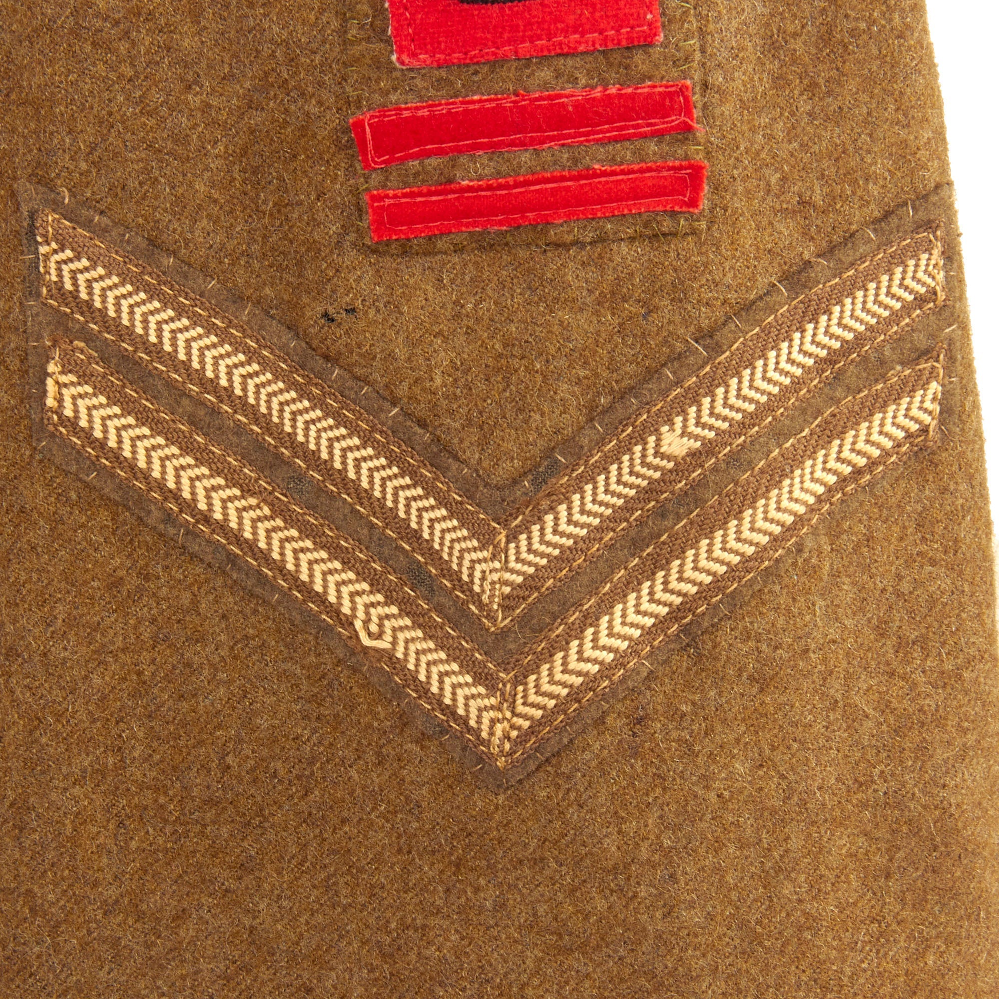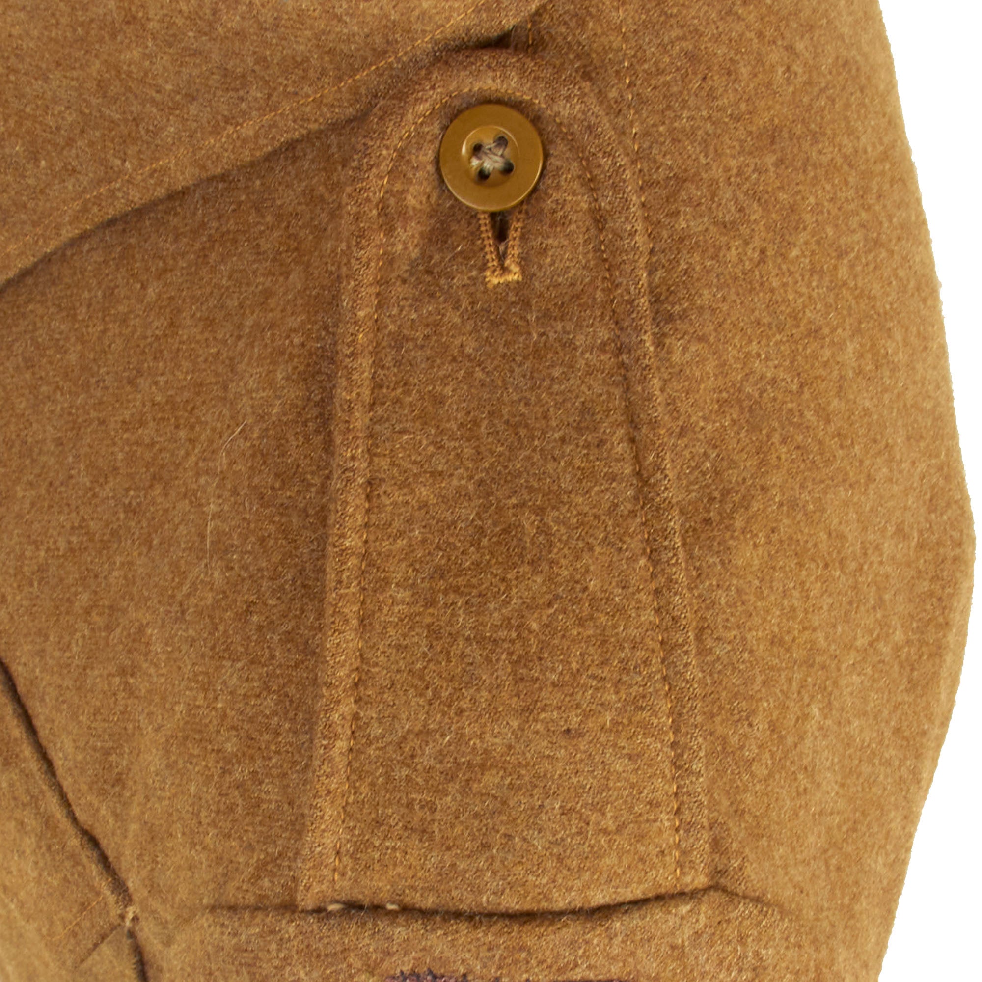 The uniform itself is dated 1946 and still has a complete label on the interior. The uniform, though dated 1946, is identical to the earlier wartime uniform and would fit into your WWII displays without fault.
