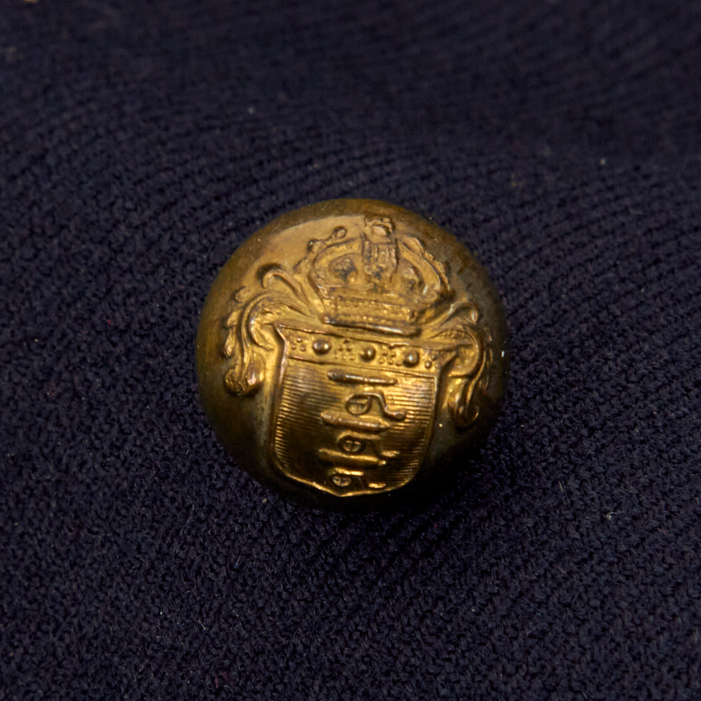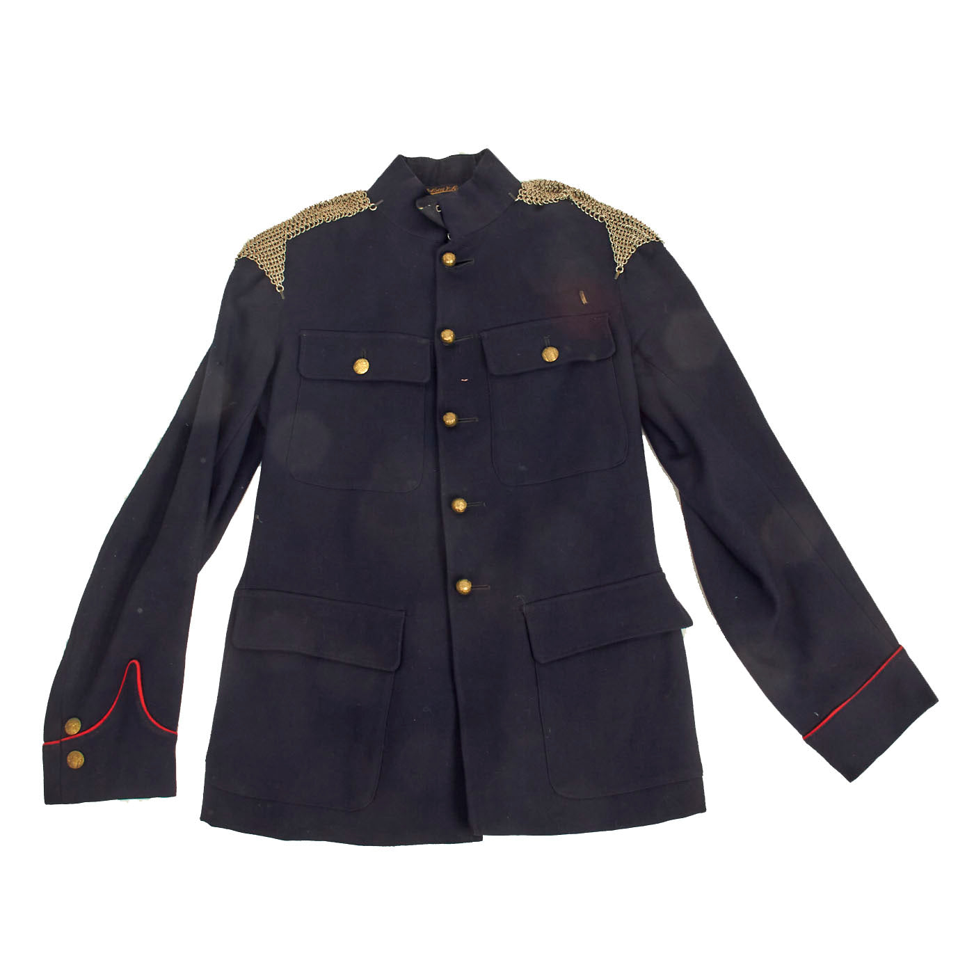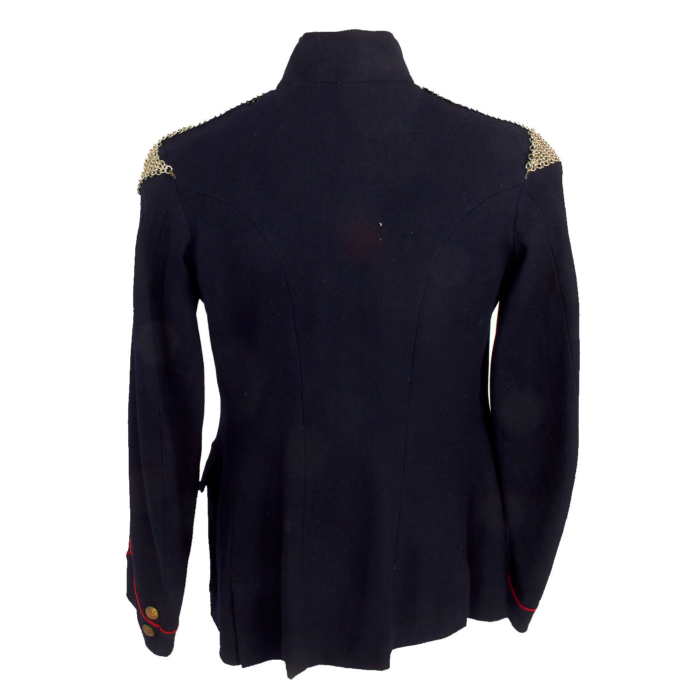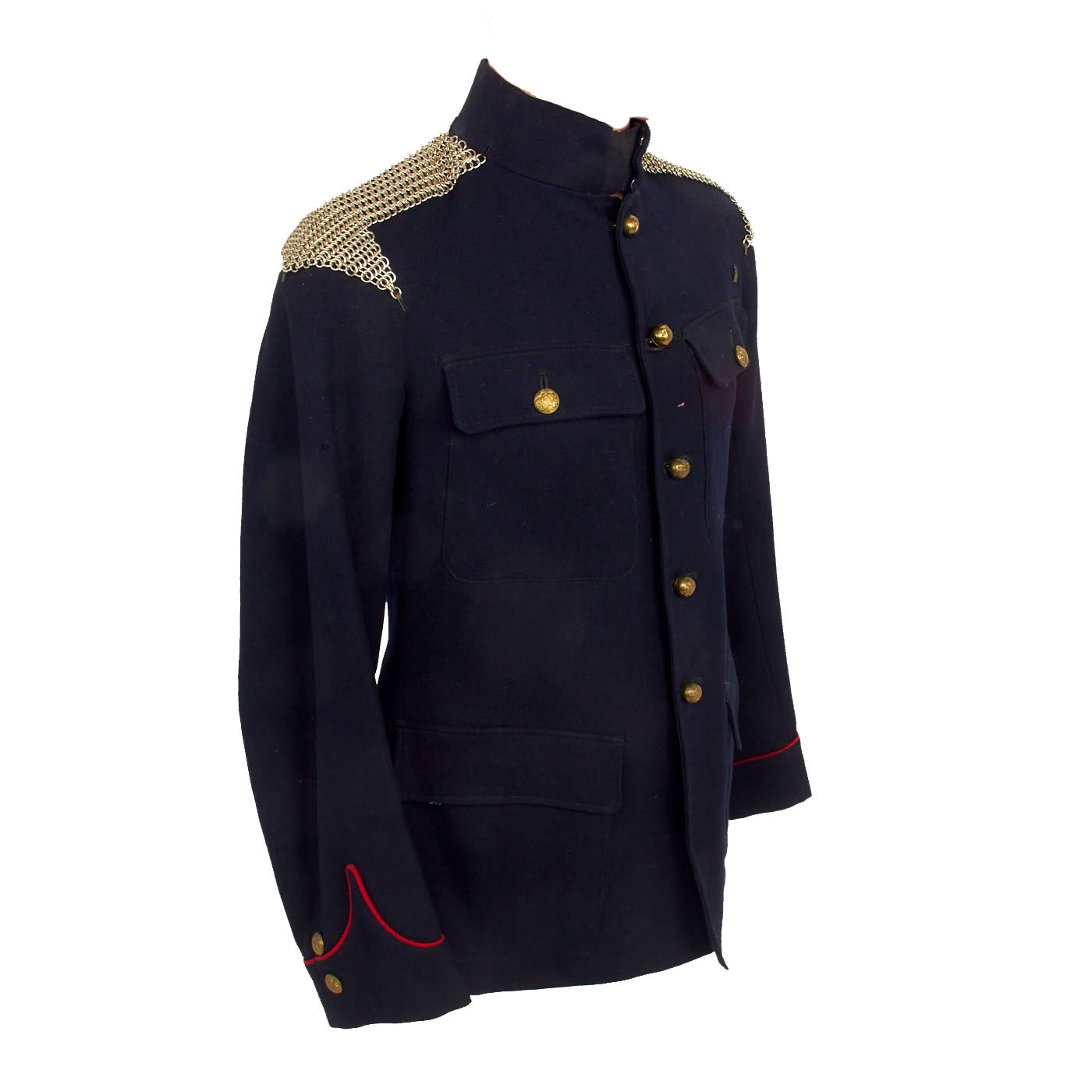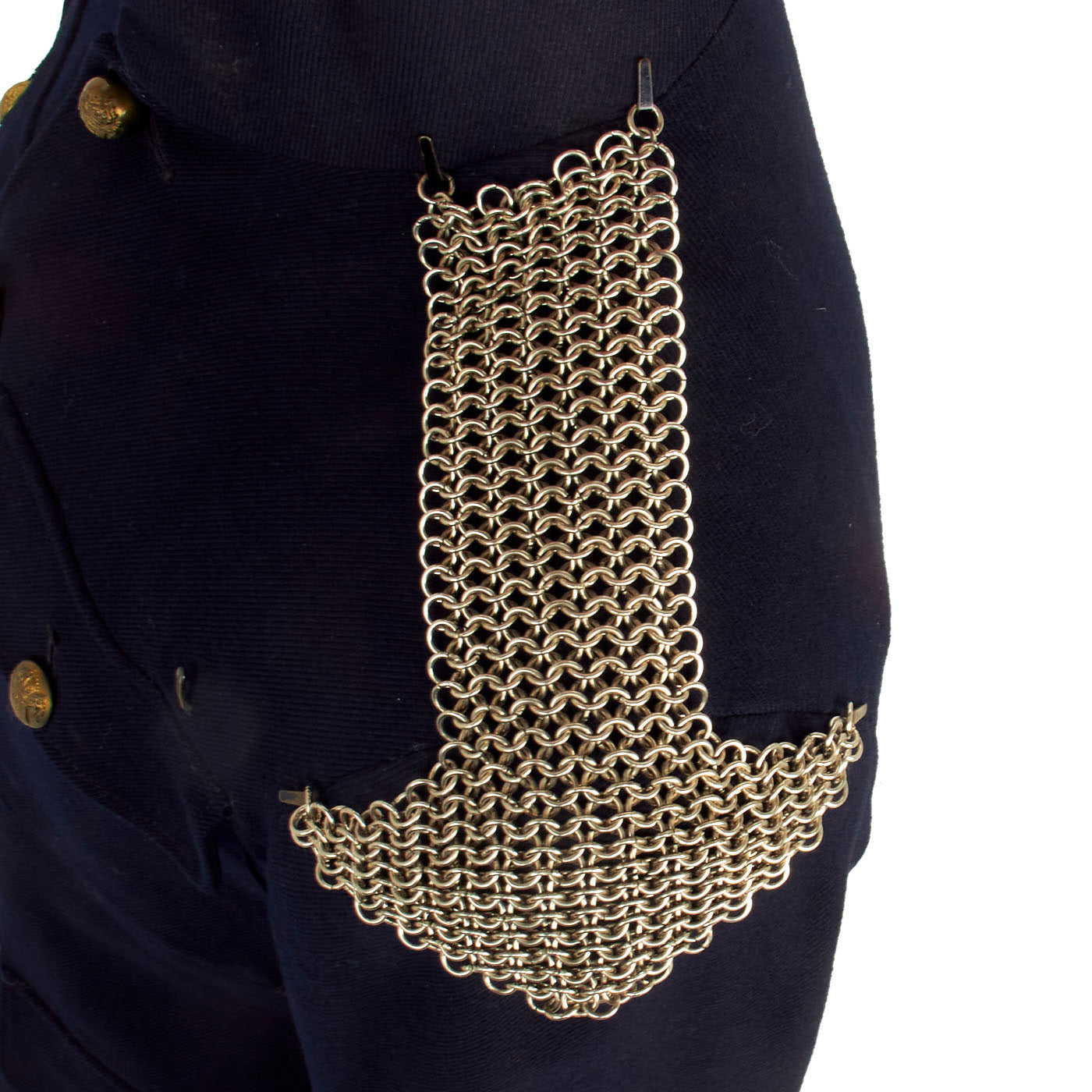 This lovely WWII era dress blue coat is in wonderful condition and features the lovely chainmail epaulets! Mail was frequently used for the epaulets of military uniforms and it is still used today by the British Territorial Army, and the Royal Canadian Armored Corps of the Canadian Army.