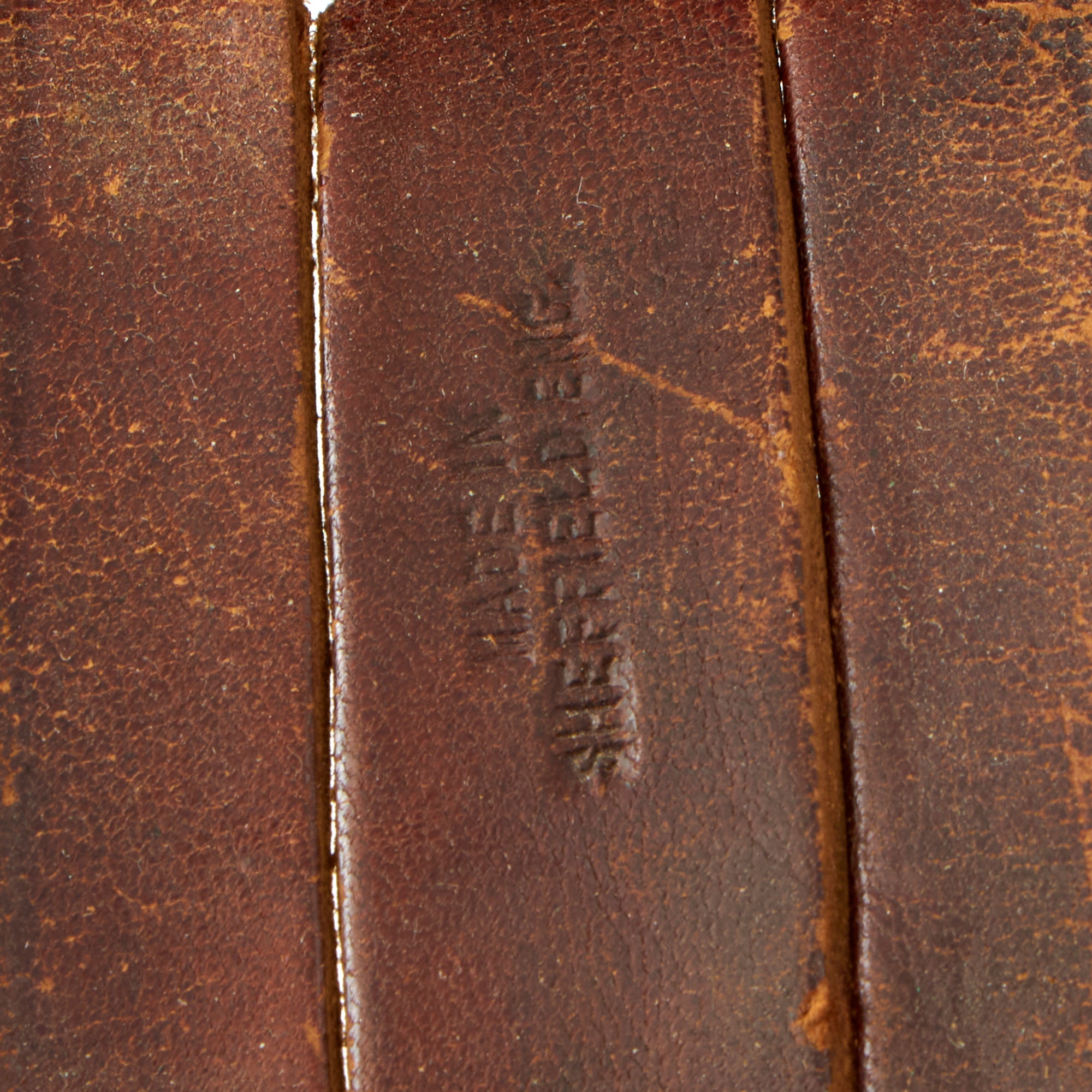 Original Item. Only One Available. This is a gorgeous private purchase example of the famous Fairbairn-Sykes commando style dagger, which appears to be a niche example with a similar color across the knife. The hilt appears to be German silver, and the leather sheath is marked MADE IN SHEFFIELD ENG.