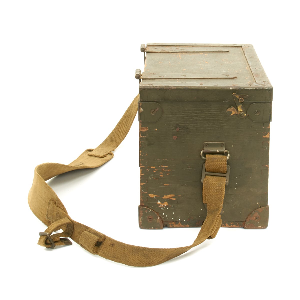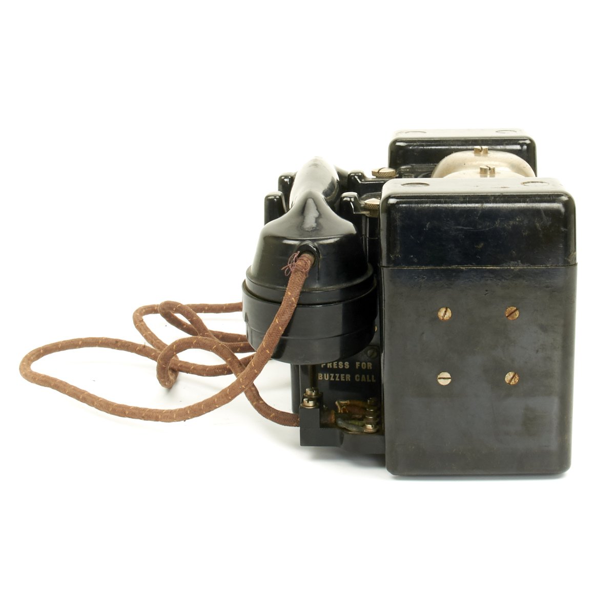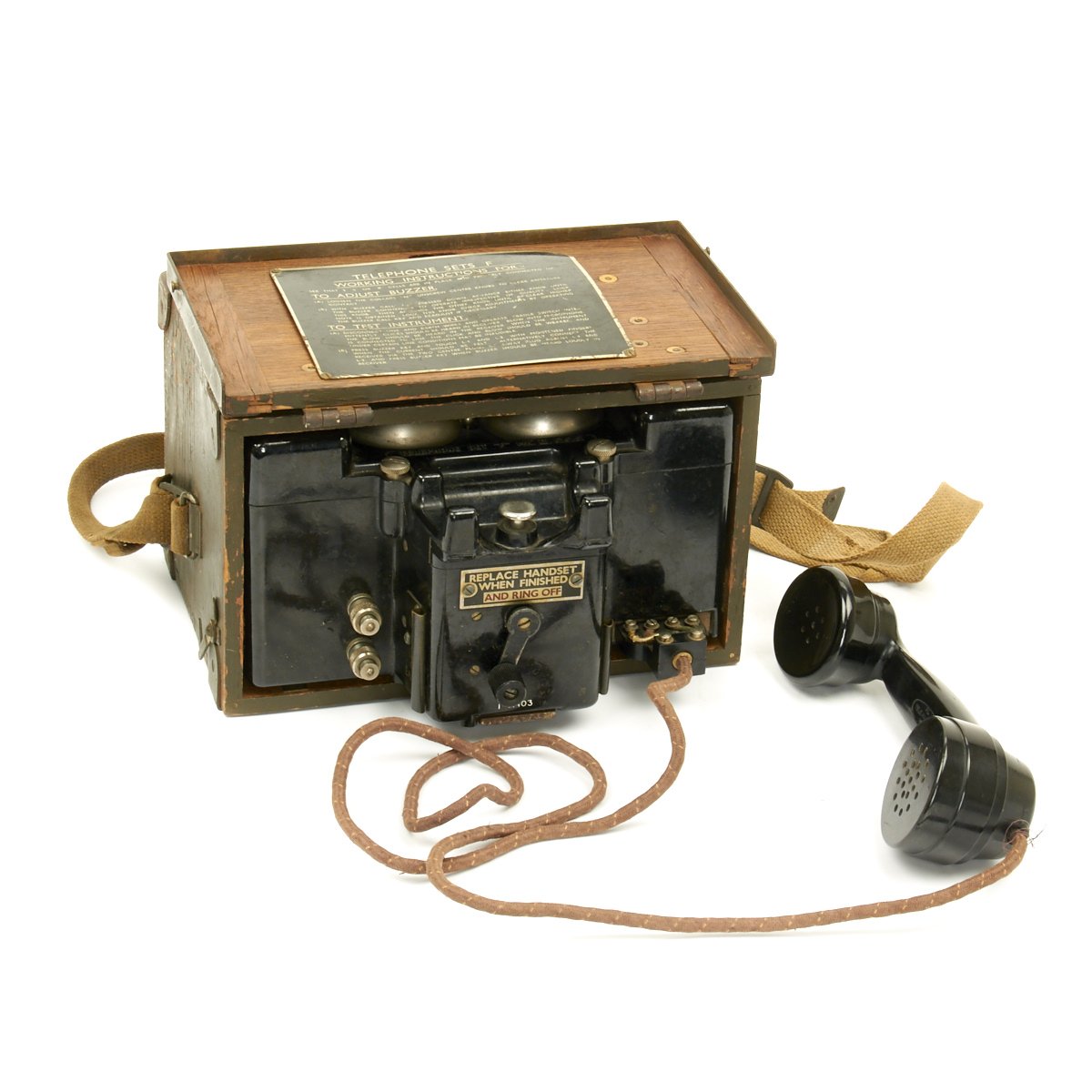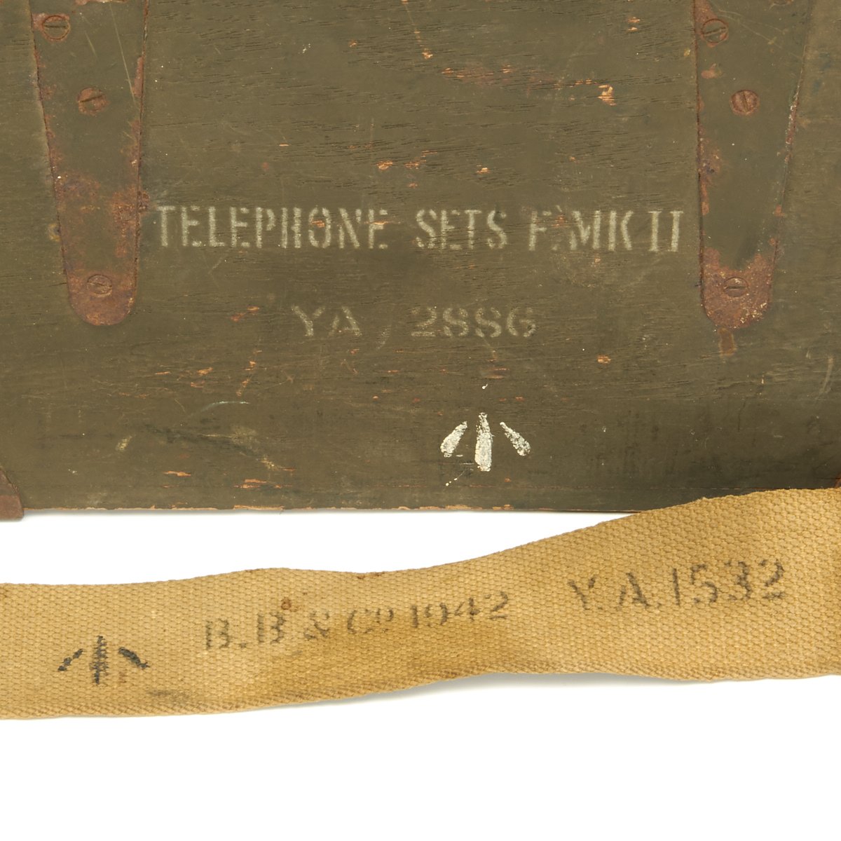 Original Items: Only One Available. This is a genuine fully functional Type F British World War Two field telephone, constructed of bakelite and housed in its original wooden transit case with khaki canvas carry strap. These were Constructed in the early 1940s during WW2 by various contractors. The case is nicely marked: